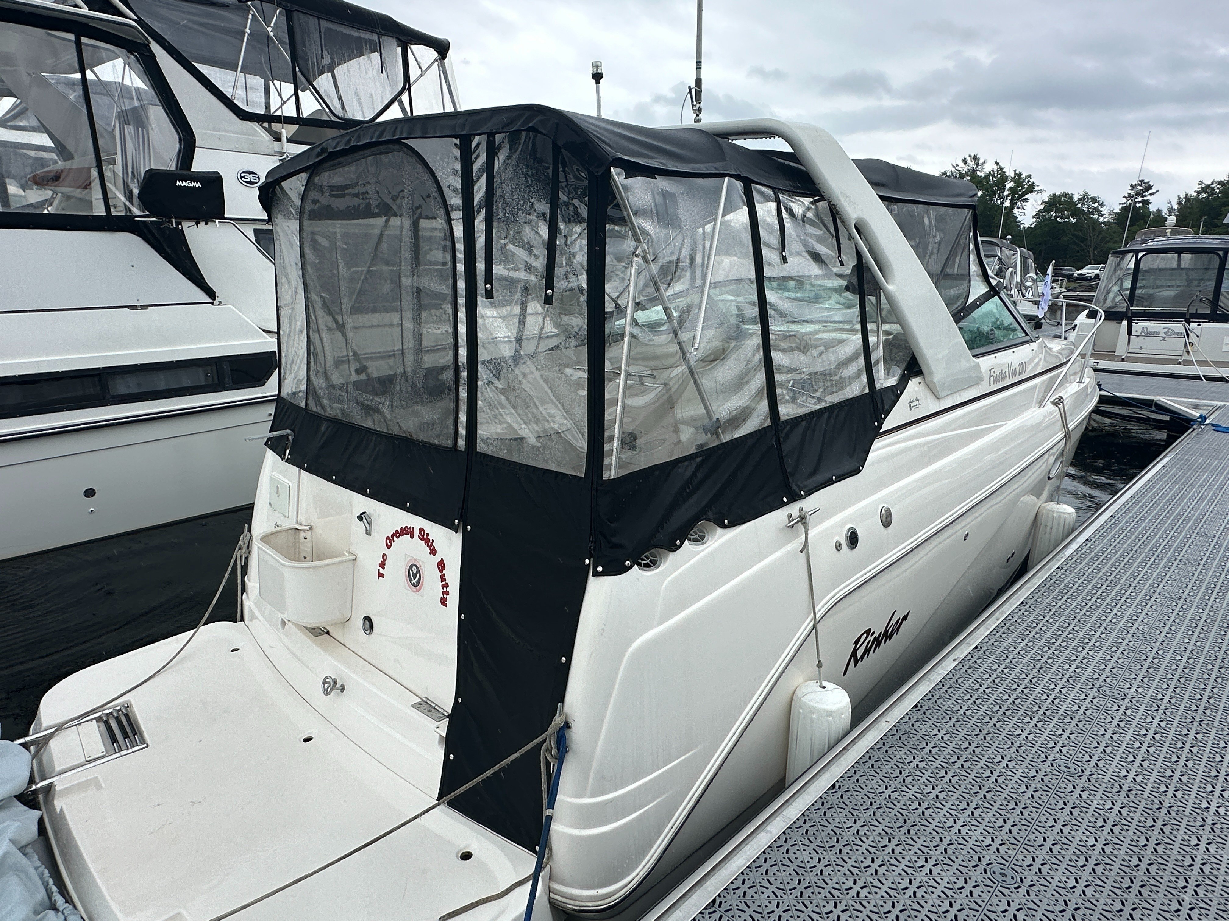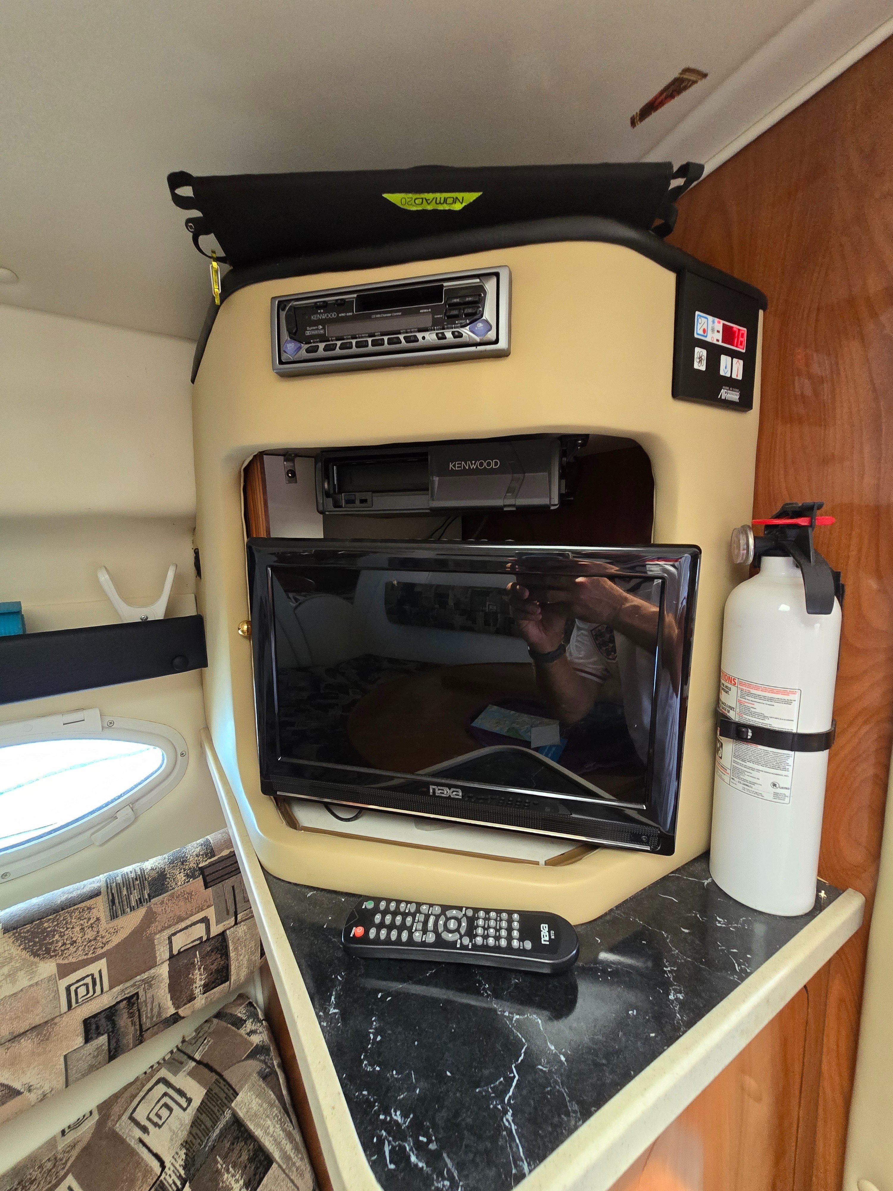 -Kenwood marine stereo with 6 new speakers and remotes mounted to helm and the oversized swim platform