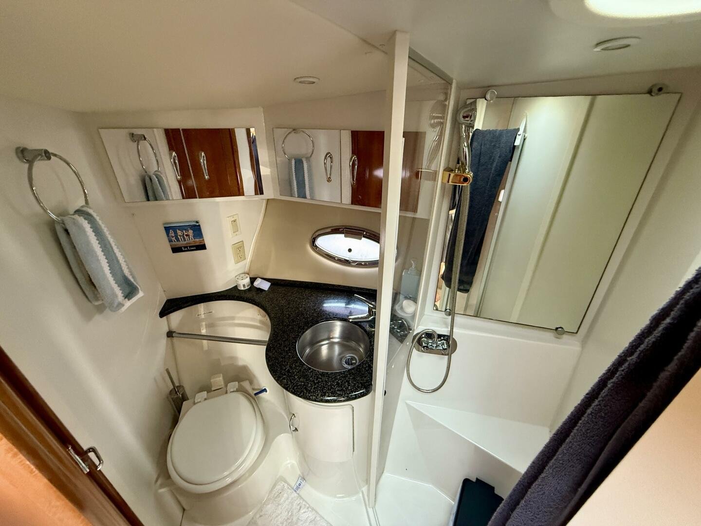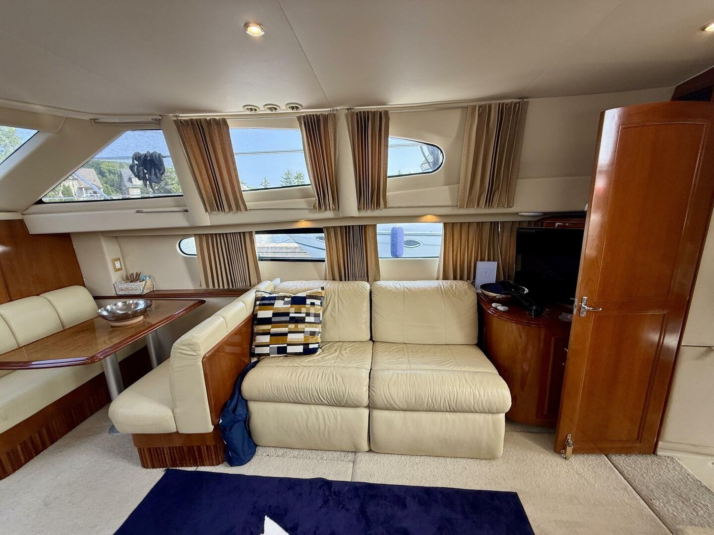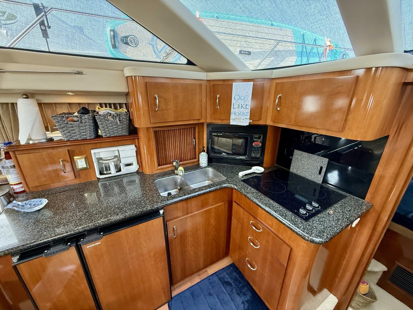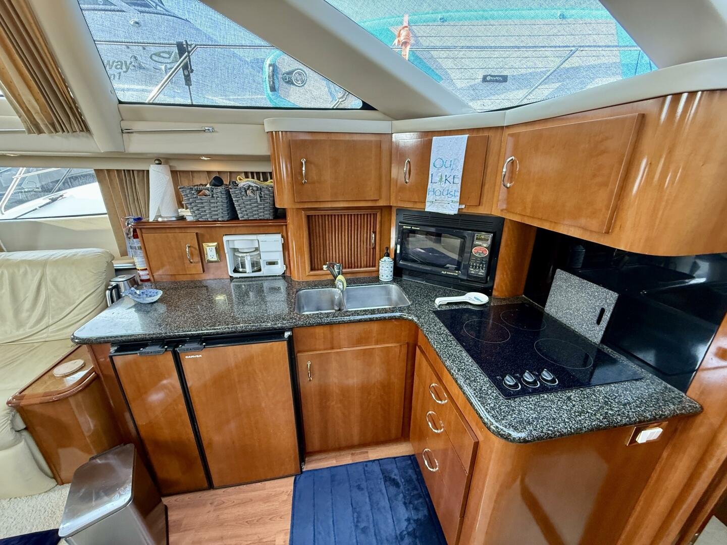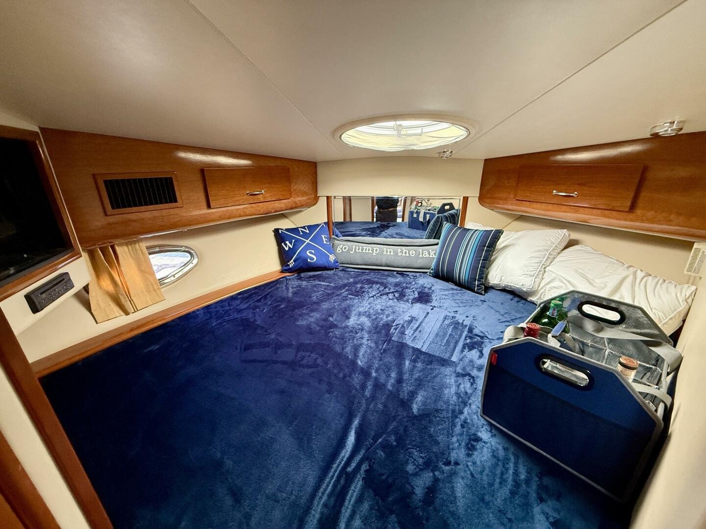 A 2004 Carver 444 CPMY featuring a hardtop and Volvo Penta power. The 444 has a great layout with plenty and makes an excellent floating cottage. The vessel has three different levels for easy boarding for various dock heights. The large platform and cockpit give plenty of outdoor space, with molded steps to bridge and a sliding door entrance to the main cabin. A fully enclosed bridge cockpit, and bridge with a hardtop provide plenty of seating. The salon is expansive with plenty of natural light, the galley and dinette blend in to give you a truly grand feel. Forward is the guest cabin with en-suite head. To aft you have a large stateroom with walk-around queen bed, and en-suite head with separate shower. This boat has been set up for cruising the Great Lakes with dinghy caddy, solar, lithium, and an inverter.