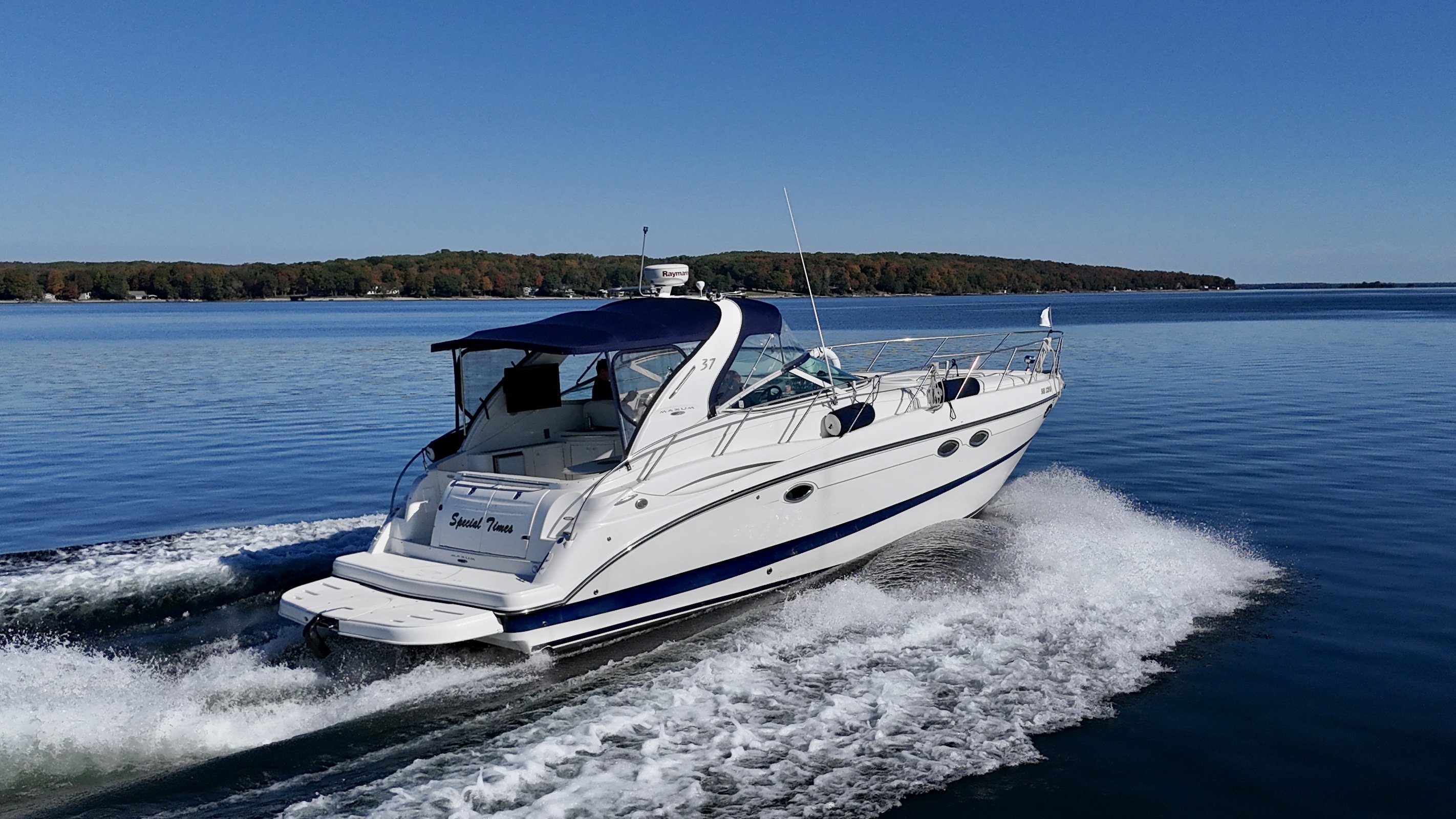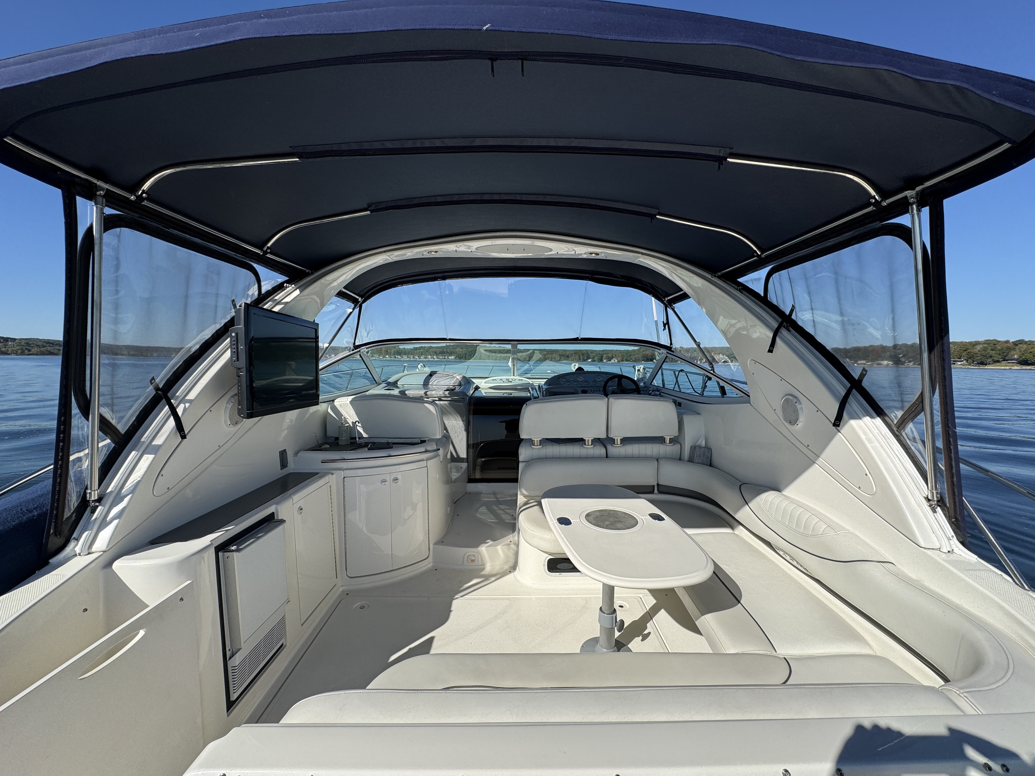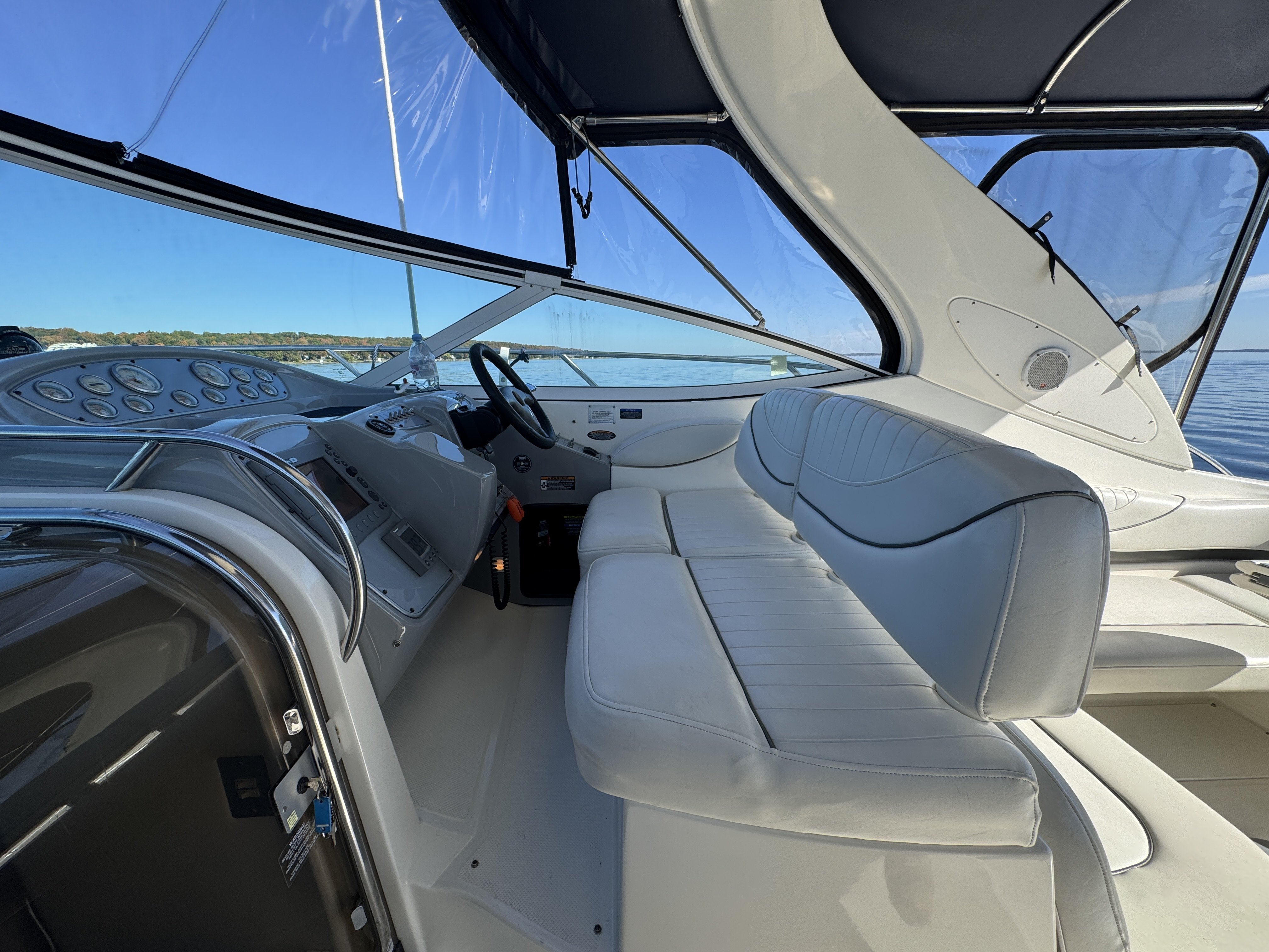 This Maxum 3700 SY is an excellent example of a clean, well-maintained sports cruiser, offering impressive space and comfort in the sub-40-foot category. Powered by twin 8.1L engines with just 614 hours, and a generator showing 466 hours, this vessel promises many seasons of confident, worry-free cruising. ZF electronic shift controls provide precise, effortless handling at the dock. A brand-new full canvas enclosure installed in 2023, along with consistent annual servicing and regular buffing and waxing, ensures this boat presents exceptionally well throughout.
