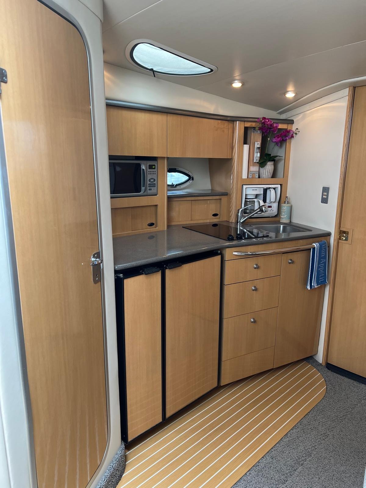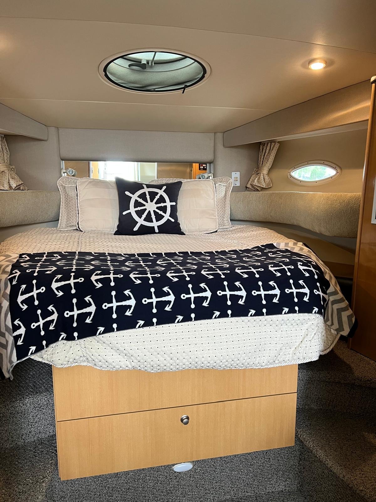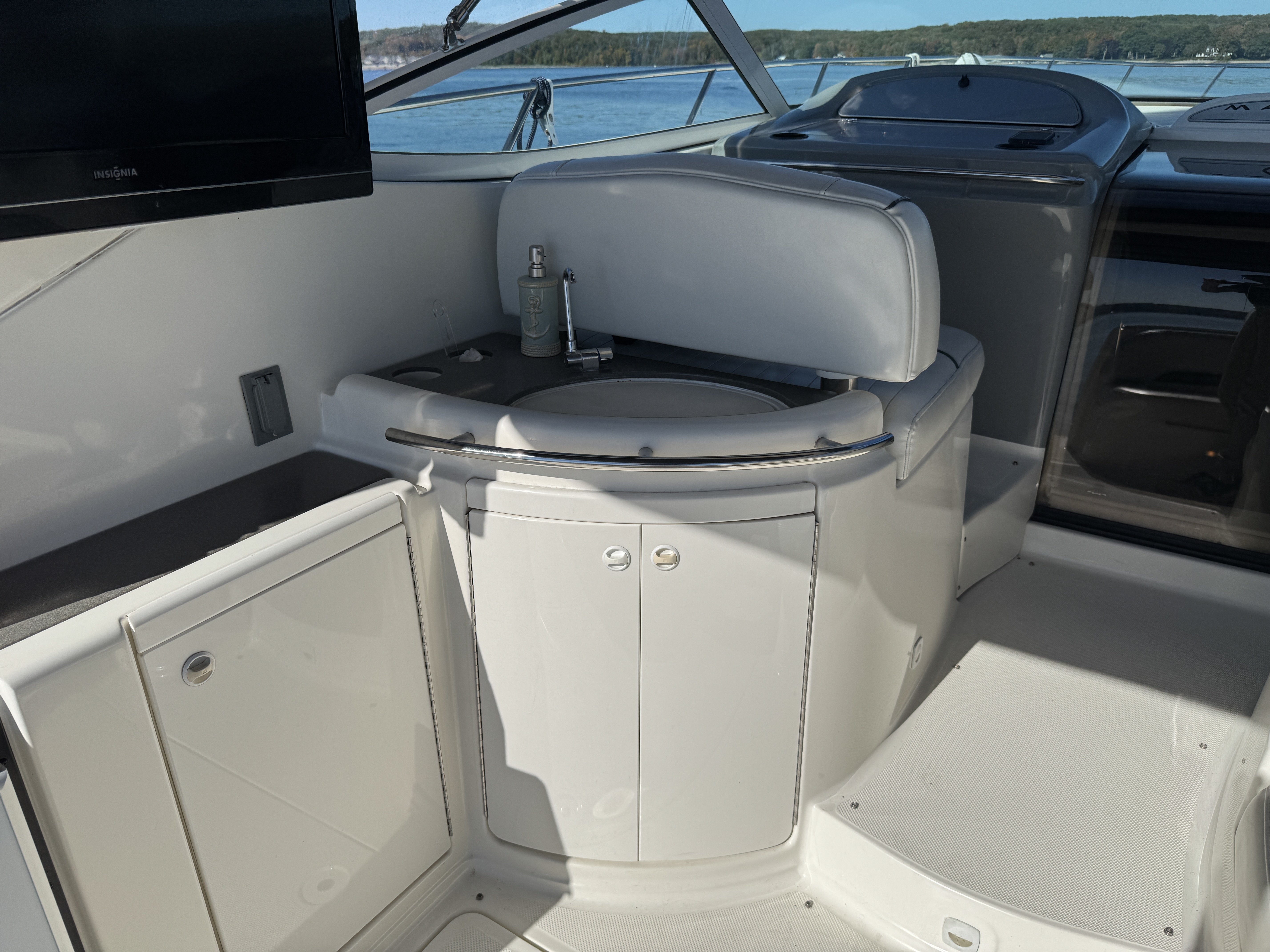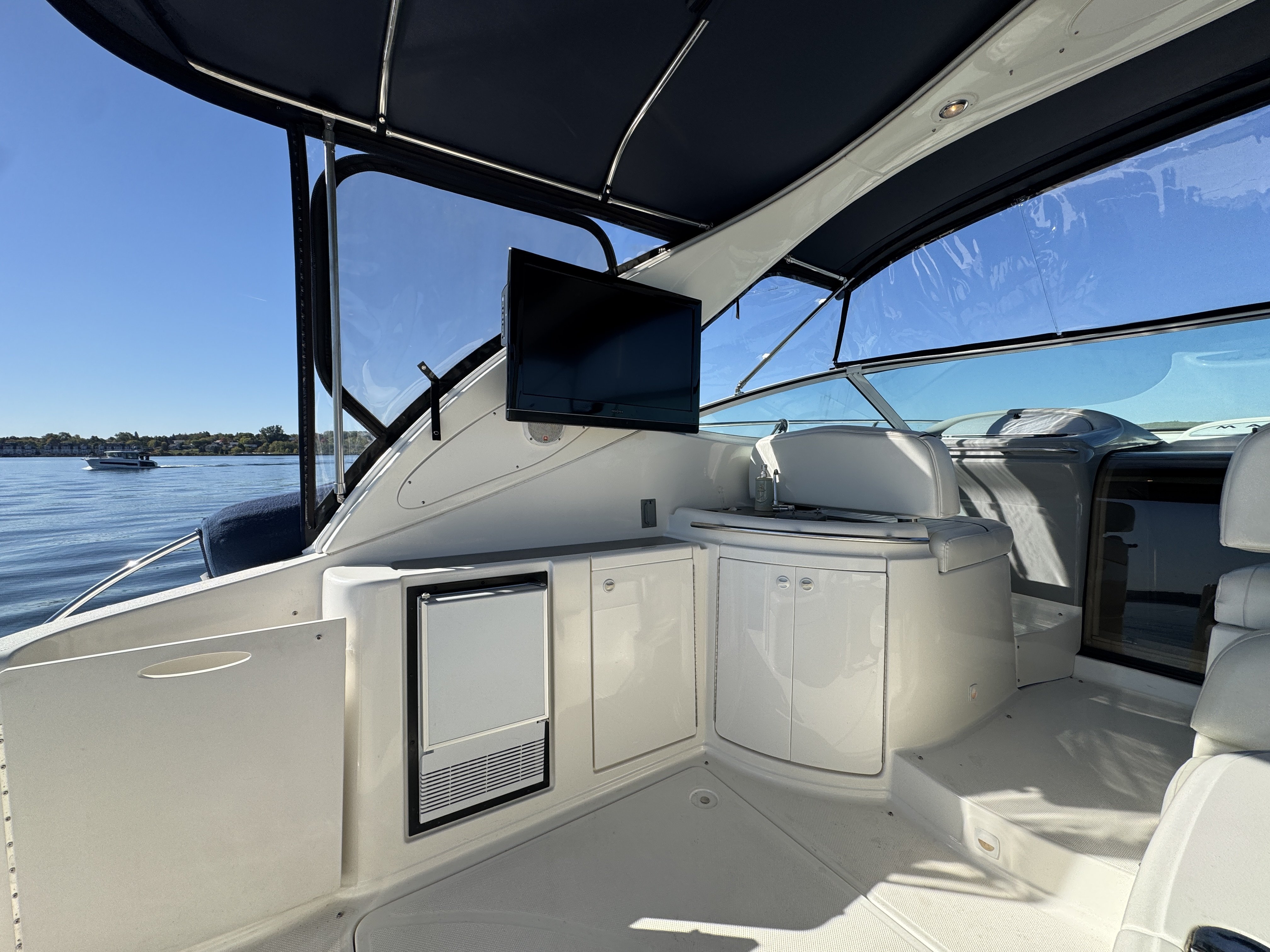 This Maxum 3700 SY is an excellent example of a clean, well-maintained sports cruiser, offering impressive space and comfort in the sub-40-foot category. Powered by twin 8.1L engines with just 614 hours, and a generator showing 466 hours, this vessel promises many seasons of confident, worry-free cruising. ZF electronic shift controls provide precise, effortless handling at the dock. A brand-new full canvas enclosure installed in 2023, along with consistent annual servicing and regular buffing and waxing, ensures this boat presents exceptionally well throughout.