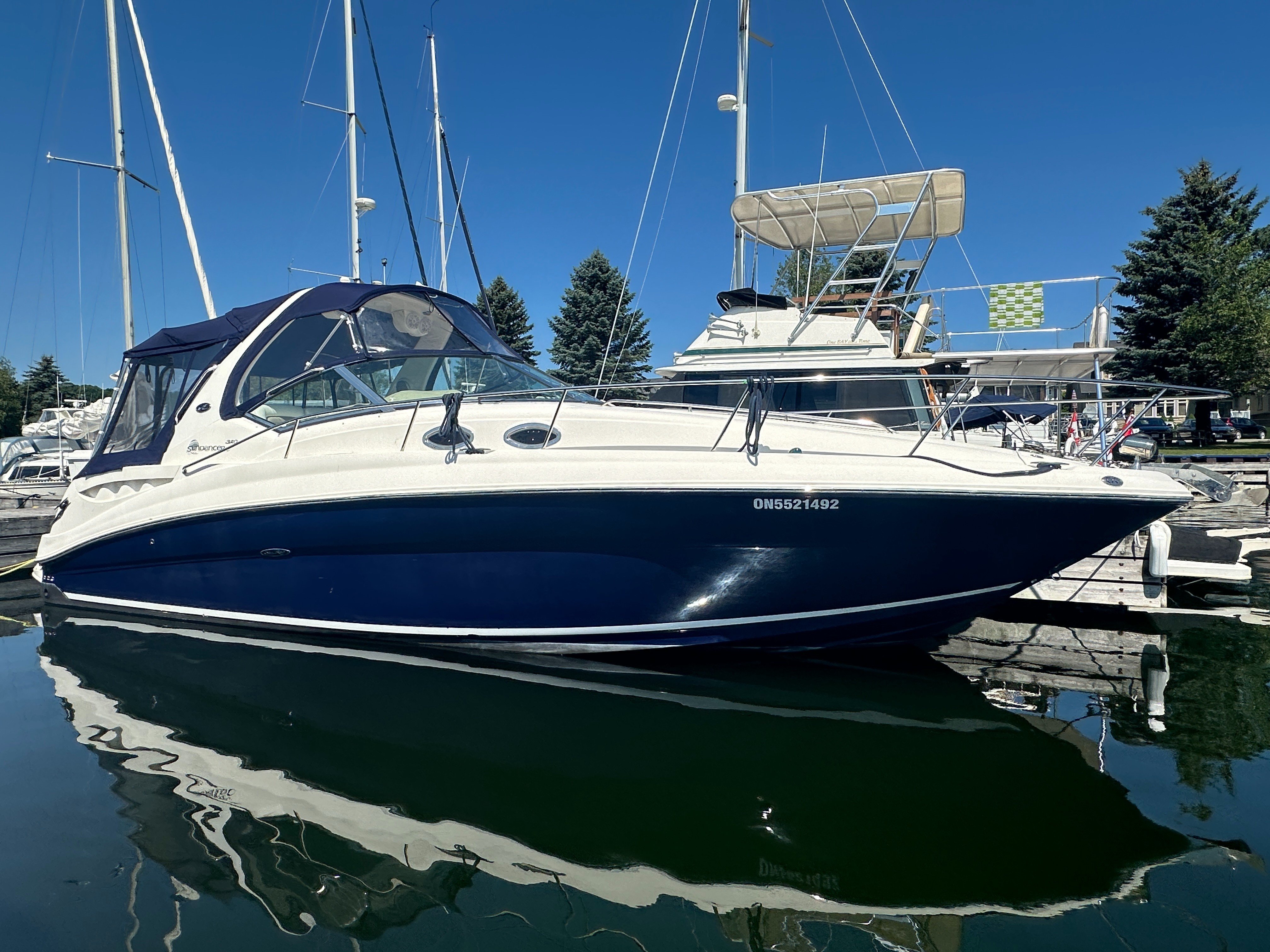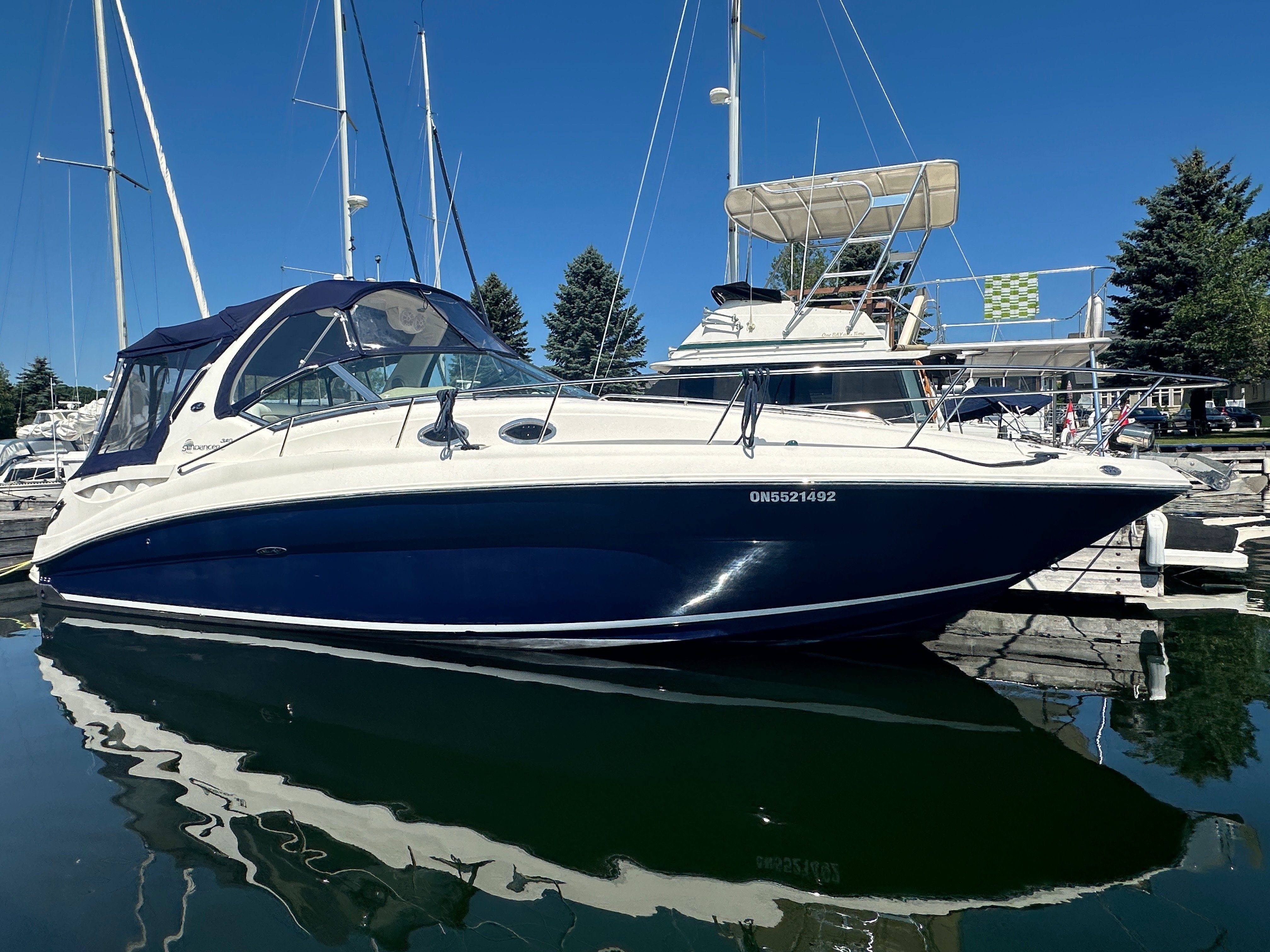 CURRENTLY INDOOR HEATED STORED - MIDNIGHT BLUE HULL - 6.2L V-DRIVES - NEW CANVAS 2024 - 2025 SURVEY - 875 HOURS - GENERATOR - AC/HEAT - FRESHWATER