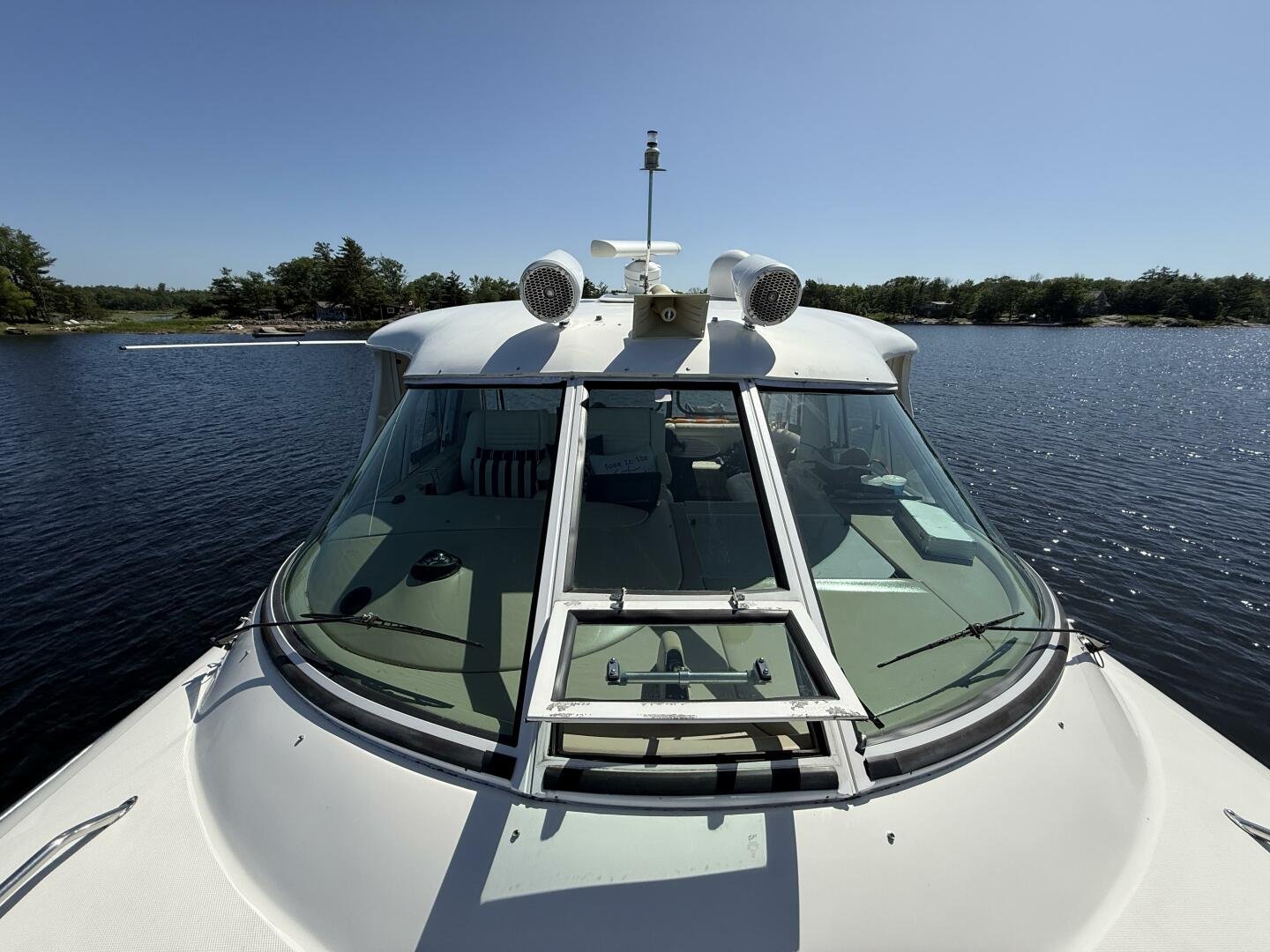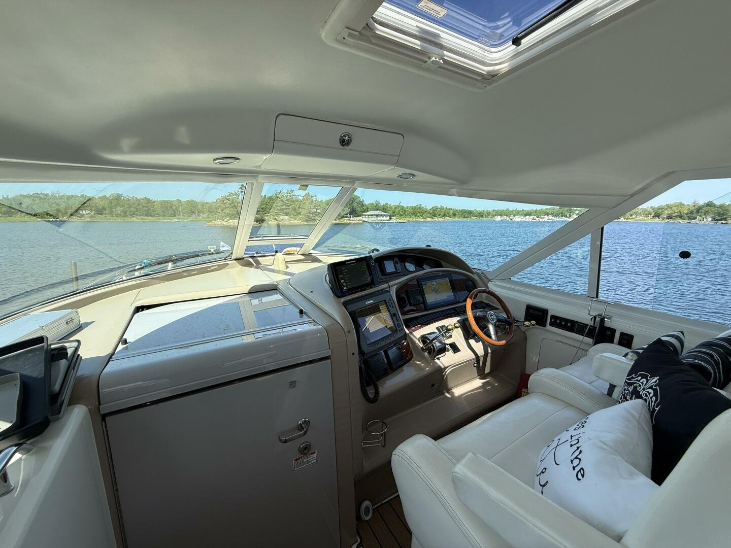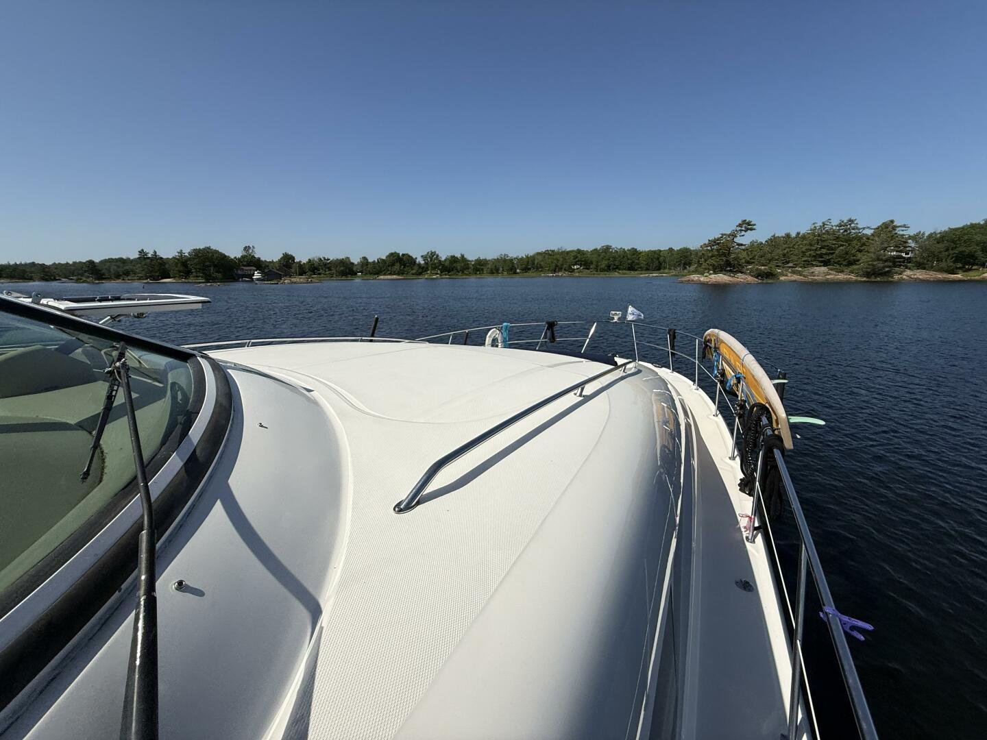 Check out this 2004 Sea Ray 480 MY sitting in the beautiful Freshwaters of Georgian Bay. This is a rare find that's loaded with Standard and Optional Features. Very clean and marina maintained. The 480 MY encompasses all that you expect from Sea Ray DNA, quality, performance, and a 3 stateroom layout that is second to none. Reliable Cummins QSM-11 Diesel motors are a perfect fit propelling this yacht like a runabout. The Optional Bow Thruster will make docking this yacht a breeze. The Optional Hydraulic Swim Platform will allow you to bring your favorite water toy. Keep comfortable in the enclosed cockpit and helm area with Optional Air Conditioning and Heat.