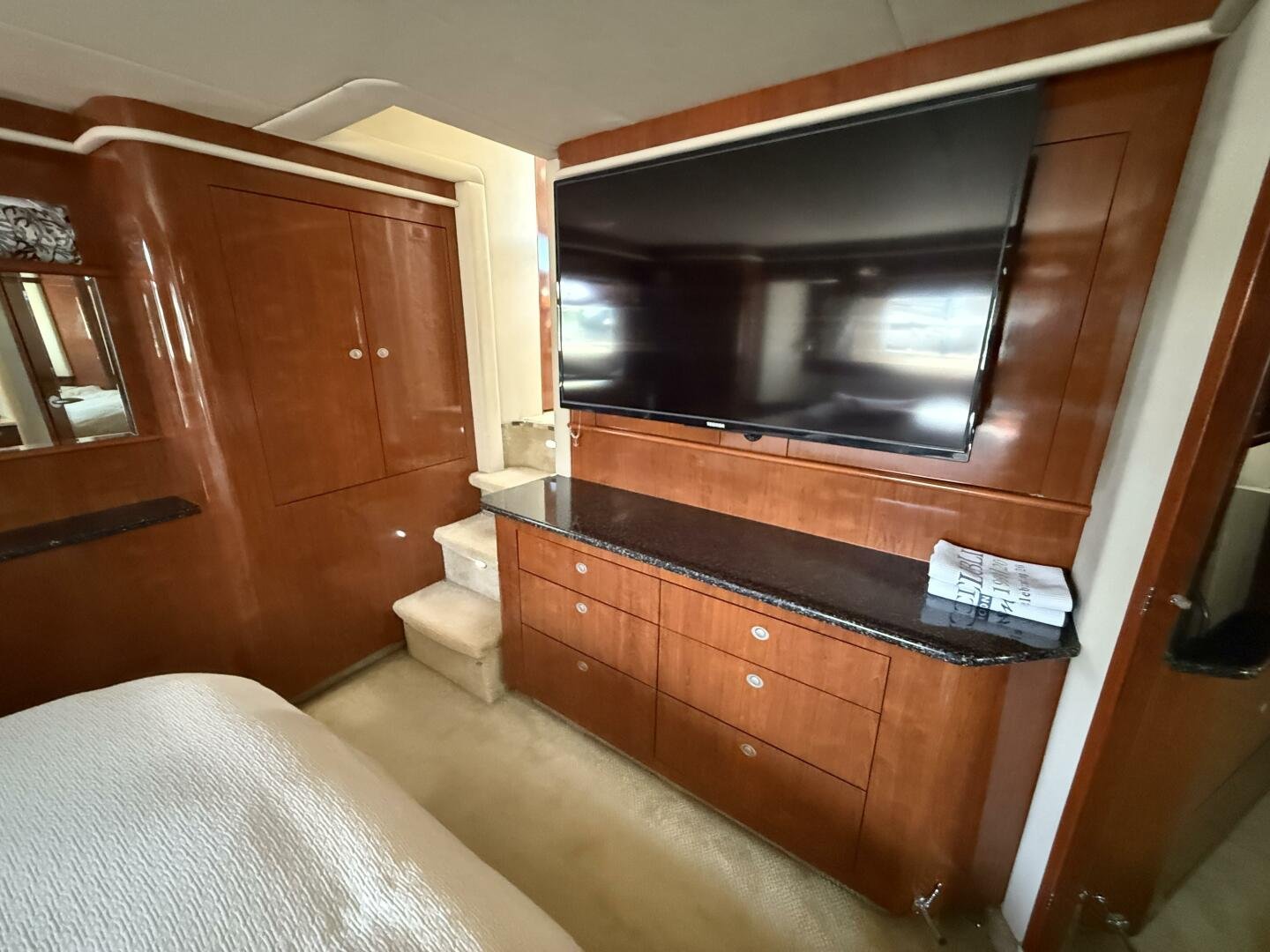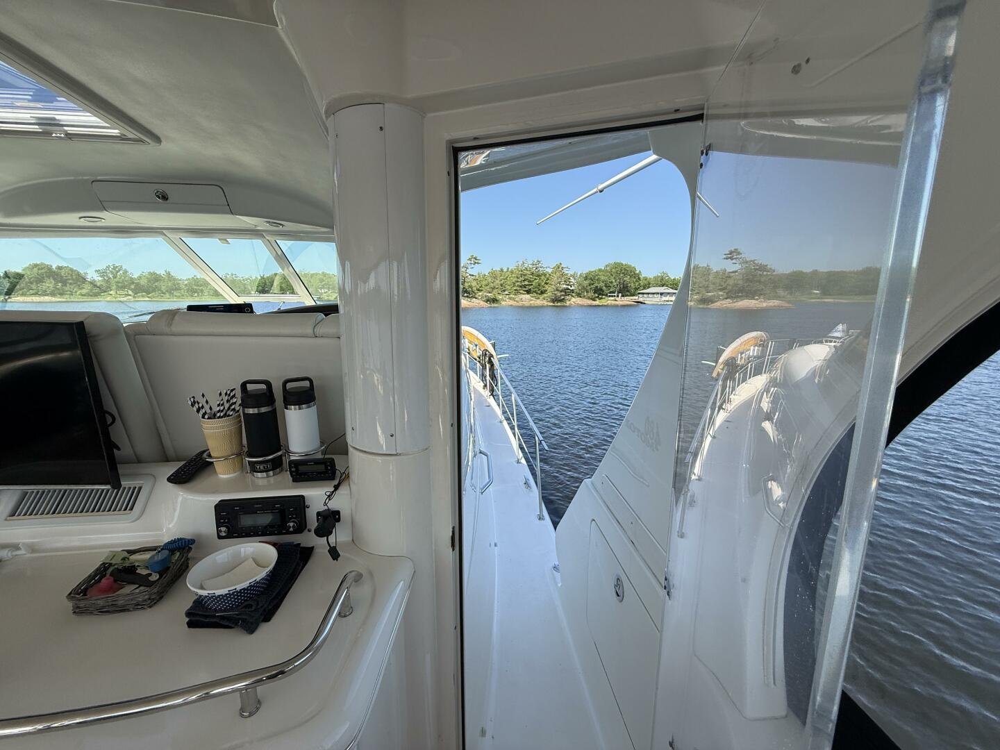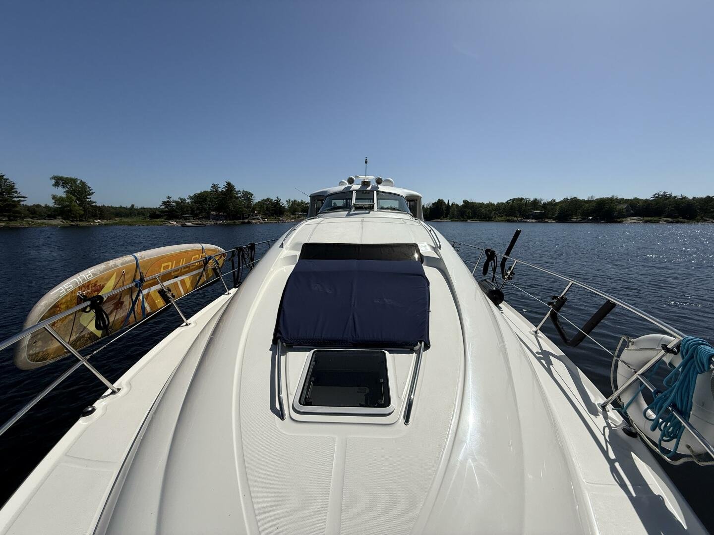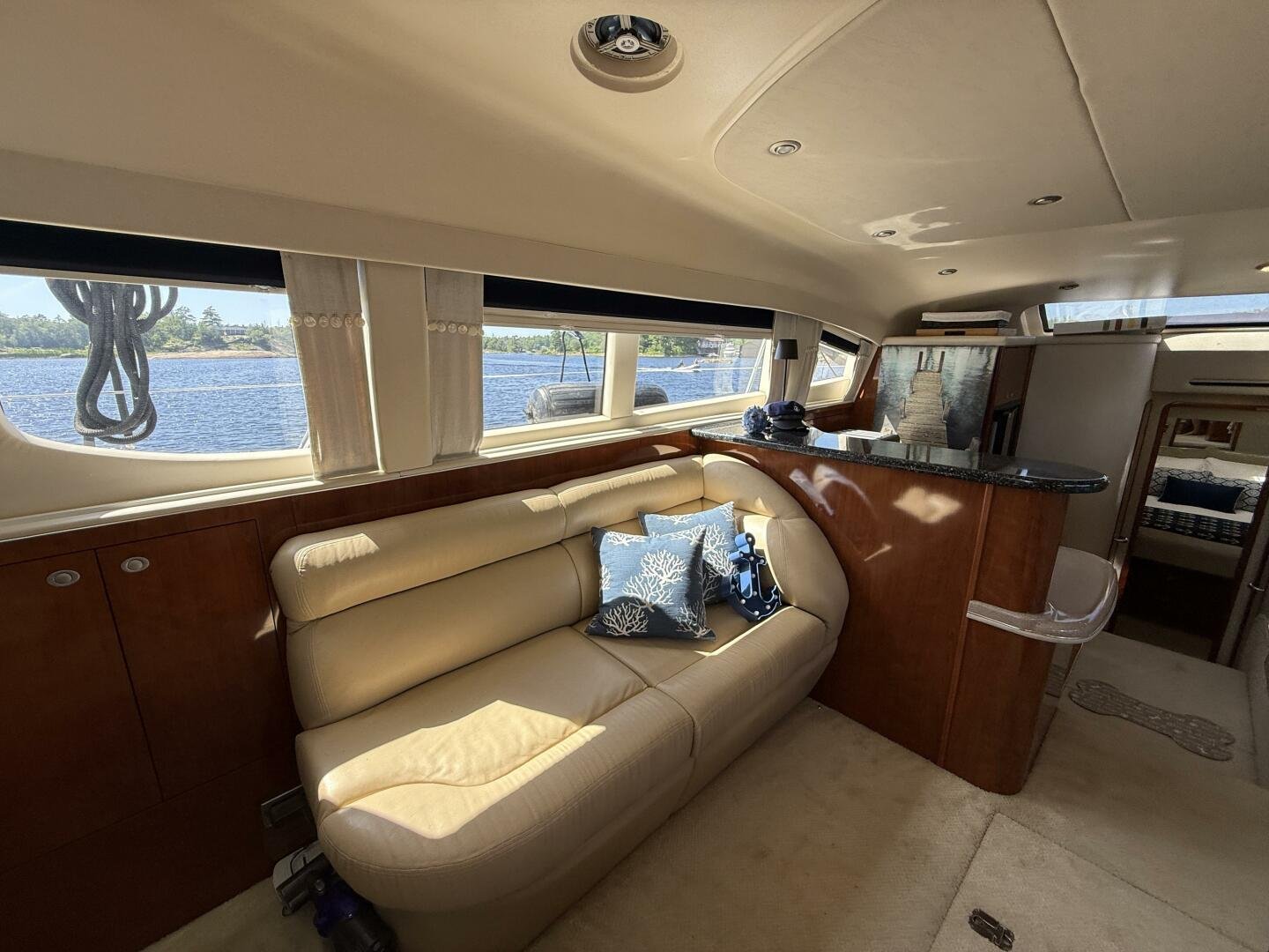 Check out this 2004 Sea Ray 480 MY sitting in the beautiful Freshwaters of Georgian Bay. This is a rare find that's loaded with Standard and Optional Features. Very clean and marina maintained. The 480 MY encompasses all that you expect from Sea Ray DNA, quality, performance, and a 3 stateroom layout that is second to none. Reliable Cummins QSM-11 Diesel motors are a perfect fit propelling this yacht like a runabout. The Optional Bow Thruster will make docking this yacht a breeze. The Optional Hydraulic Swim Platform will allow you to bring your favorite water toy. Keep comfortable in the enclosed cockpit and helm area with Optional Air Conditioning and Heat.