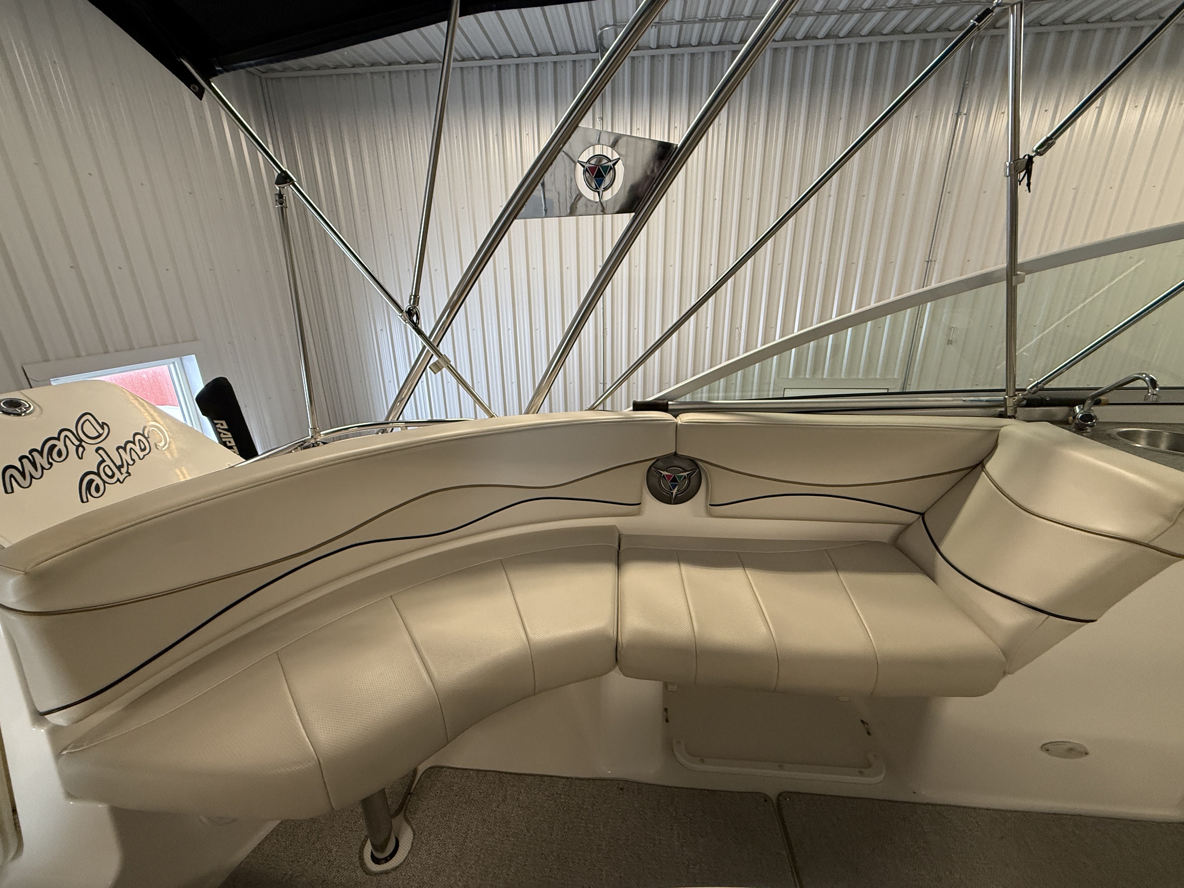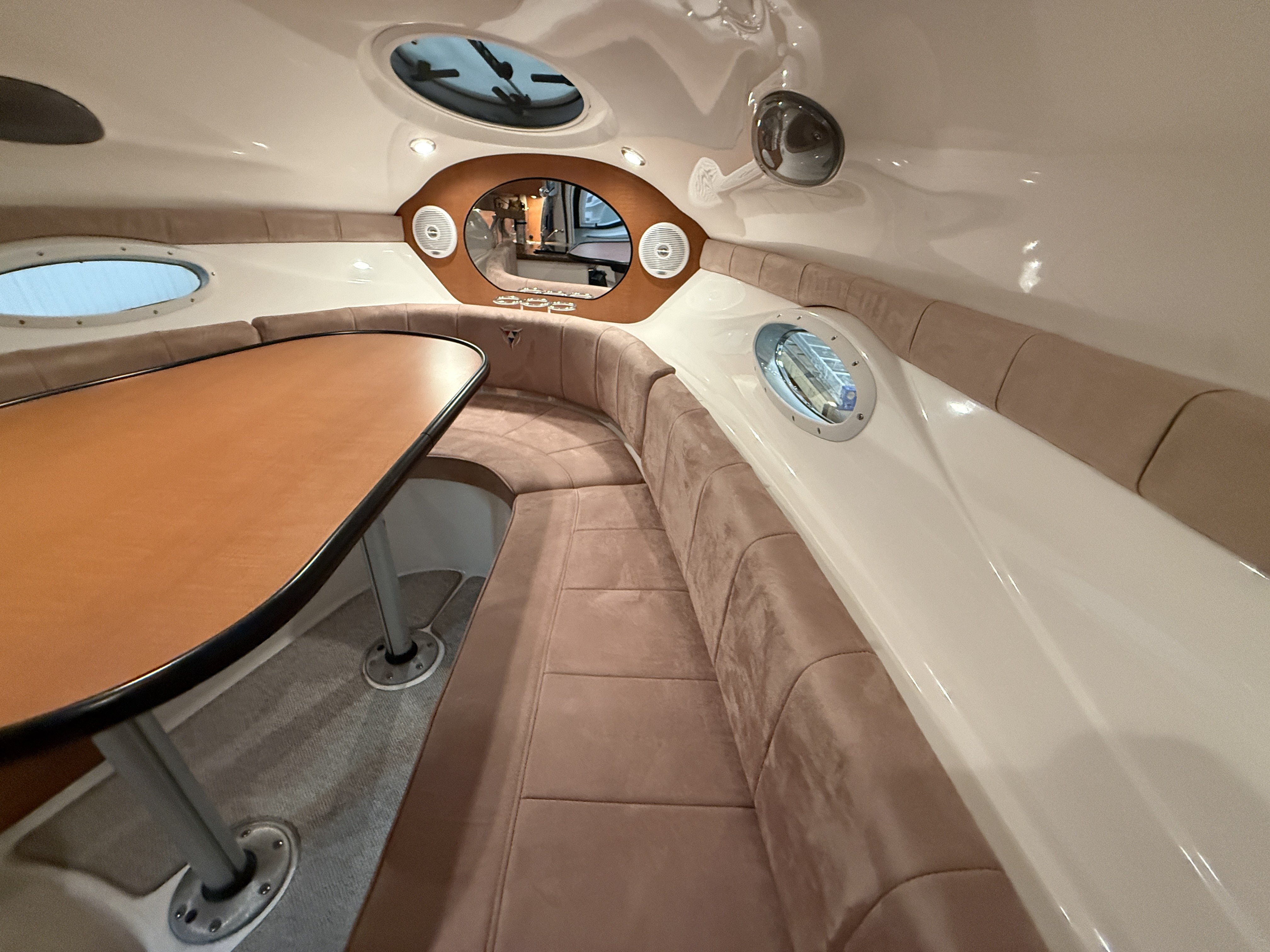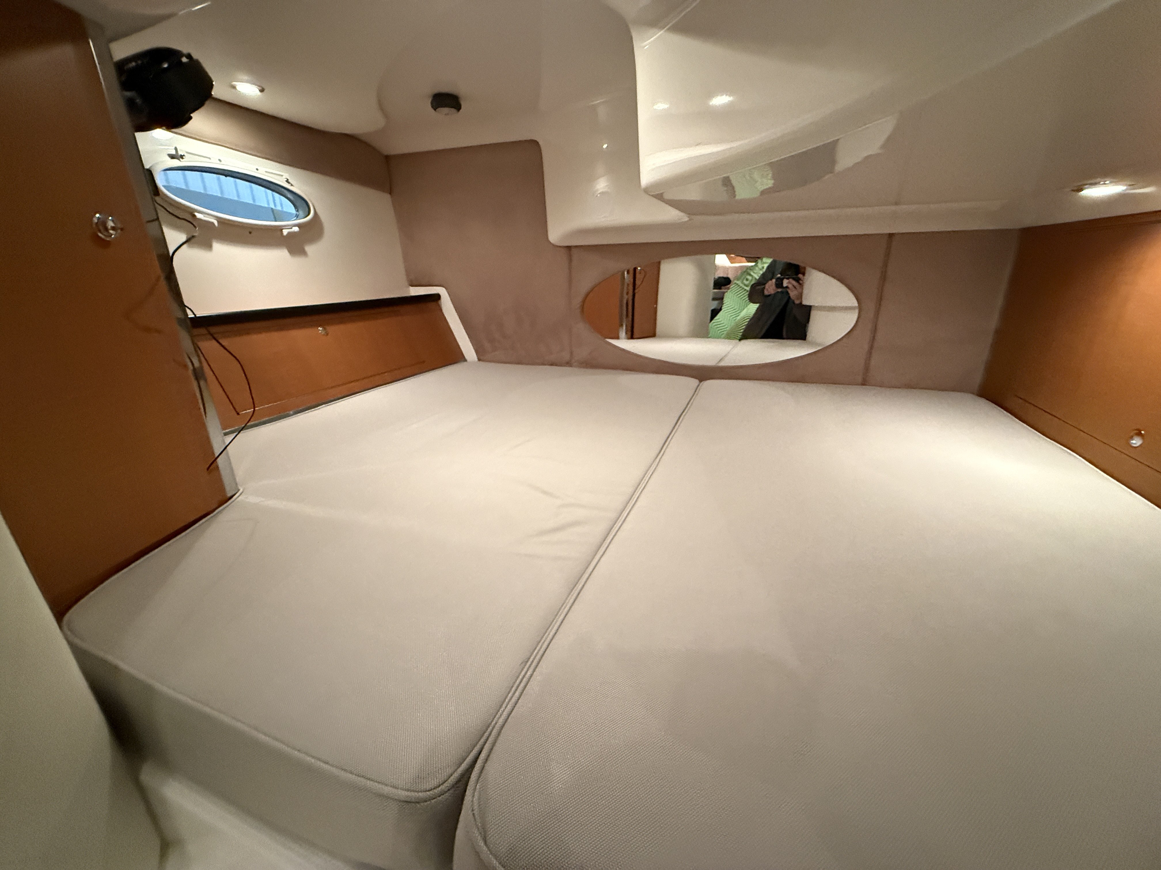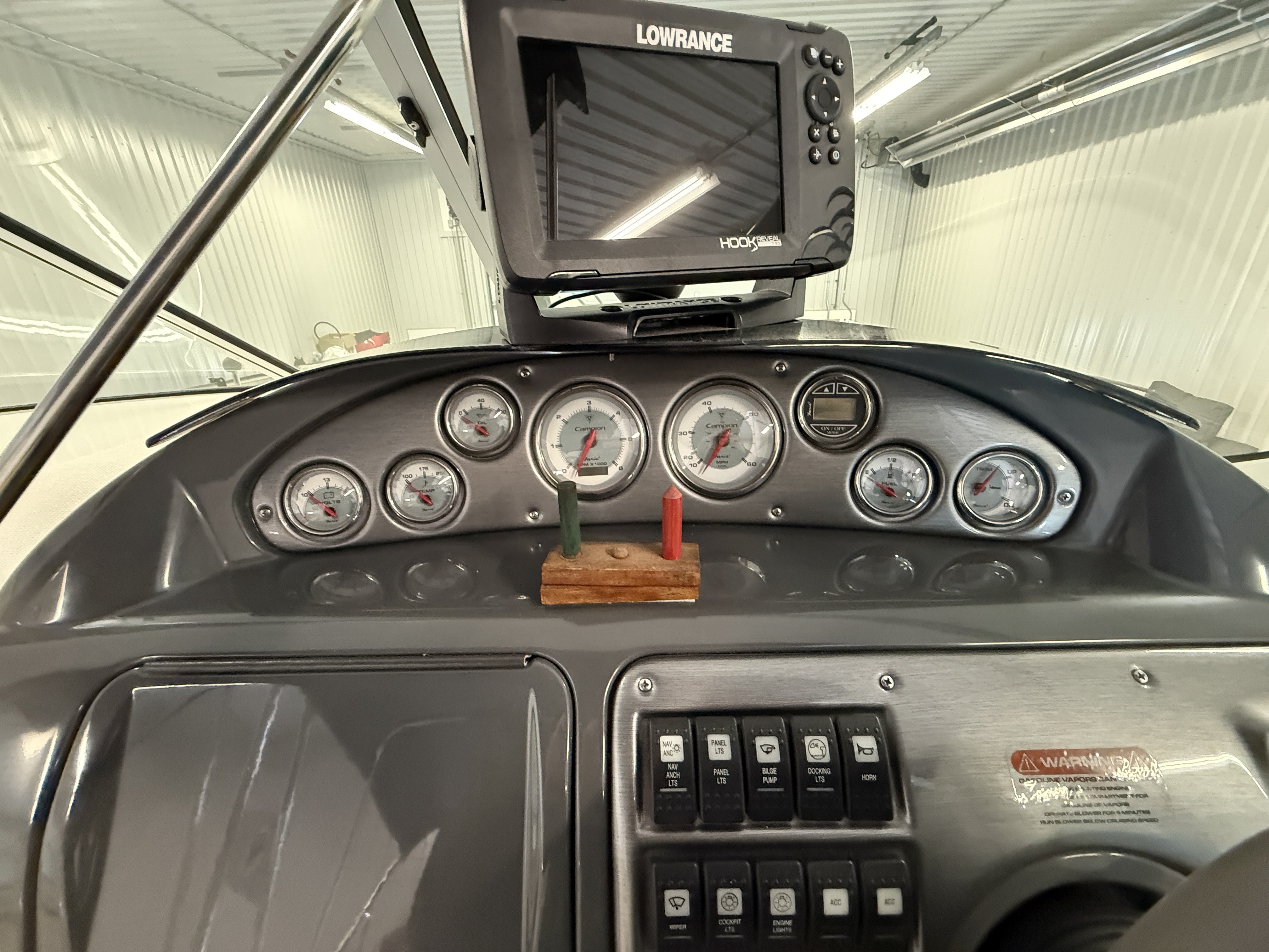 The Campion Allante 825 LX Mid-Cabin is a great combination of spaces that seem "oversized", "lighter-brighter", and much bigger than the other boat brands of similar size. The 825 was introduced in 2004 as part of Campion's 30th Anniversary of quality boat building. A beautiful blend of features and feel of a "big boat", but with the openness of the large cockpit will make you feel you are in a "sport boat". The cockpit has a large social area with seating for 8. Two of the aft seats can be removed to provide a wider open space when you want more room - possibly for fishing. Walk-thru windshield provides safe access to the bow. An additional refrigerator near the wet bar makes entertaining easy.