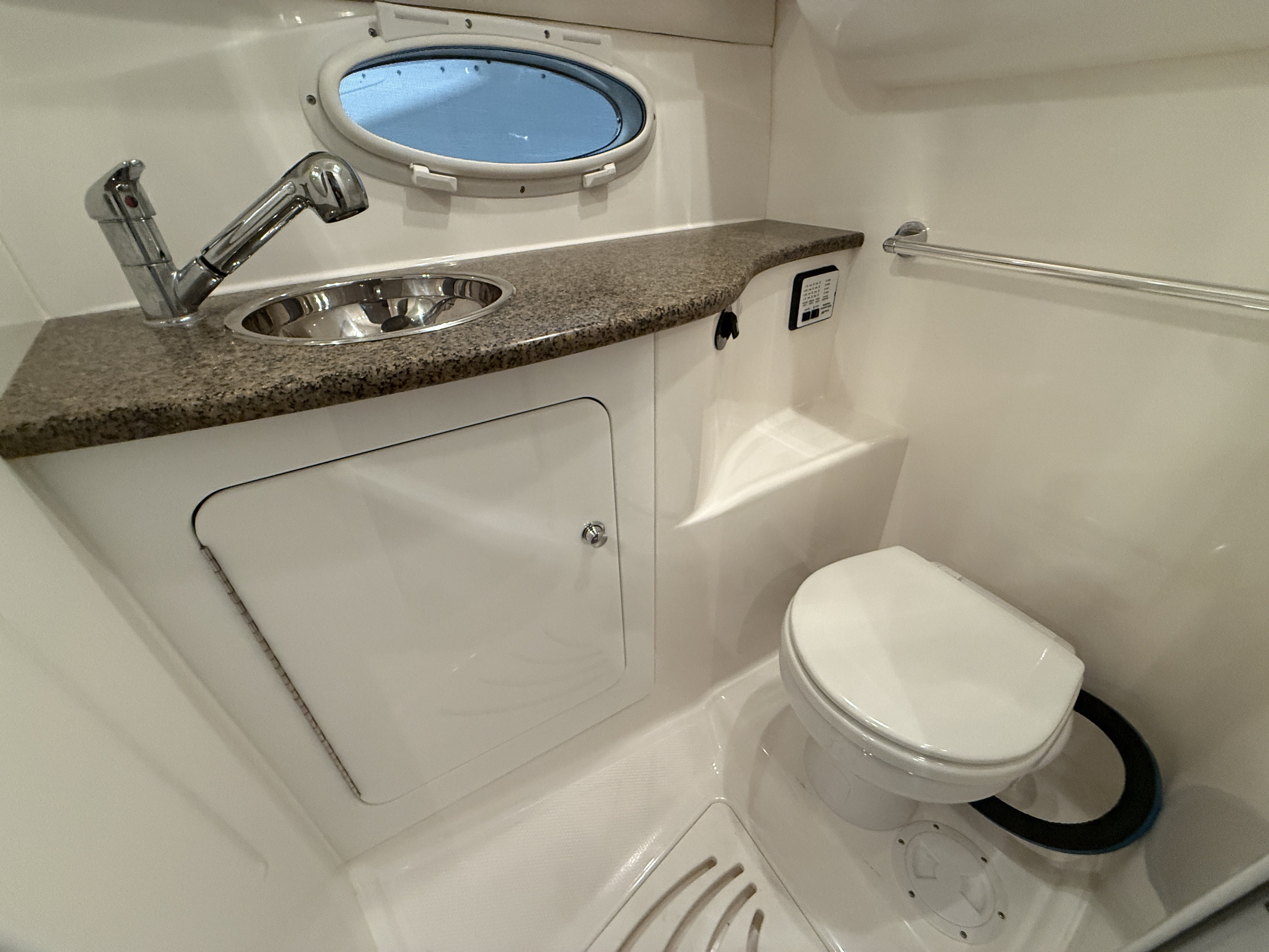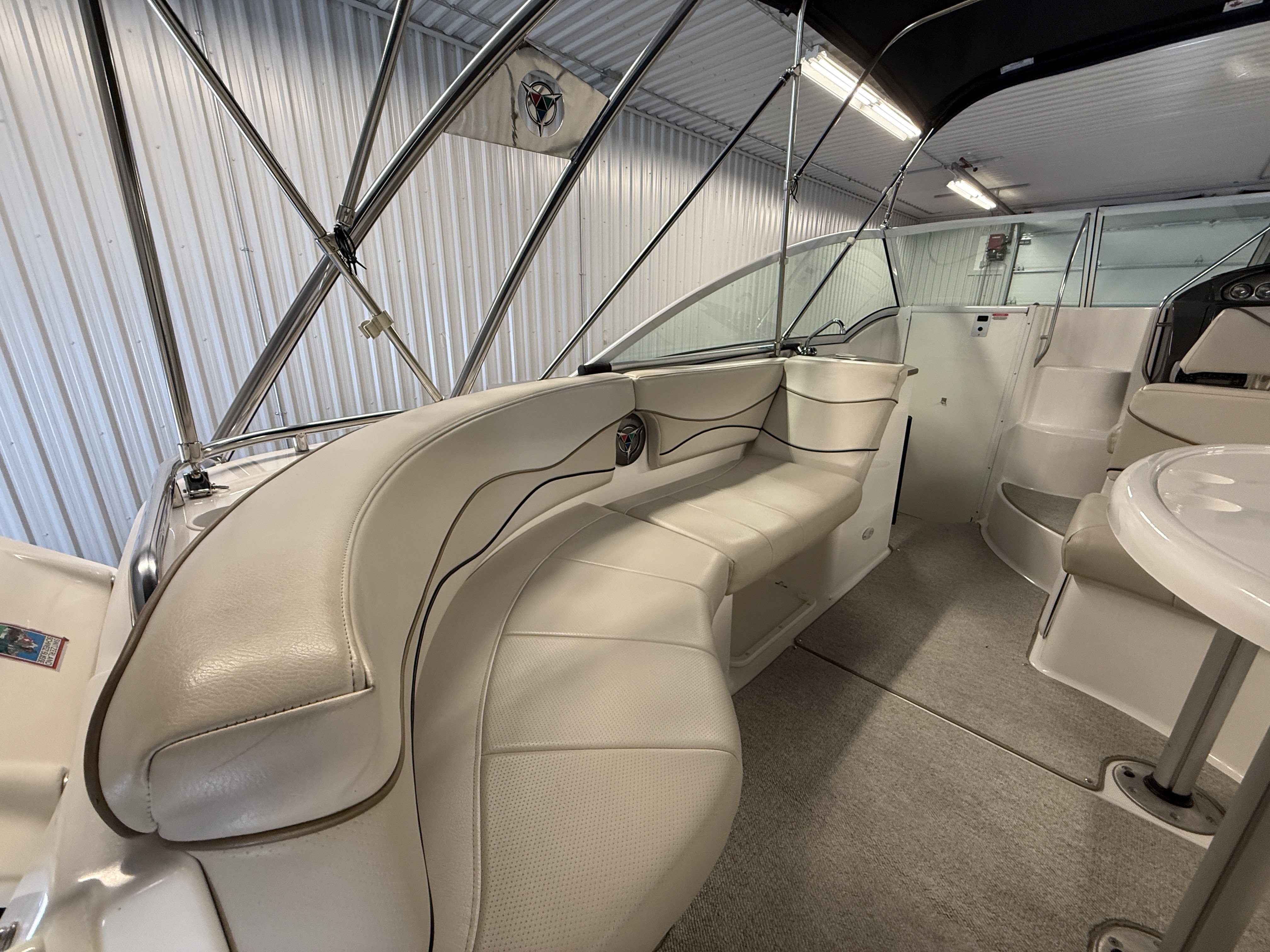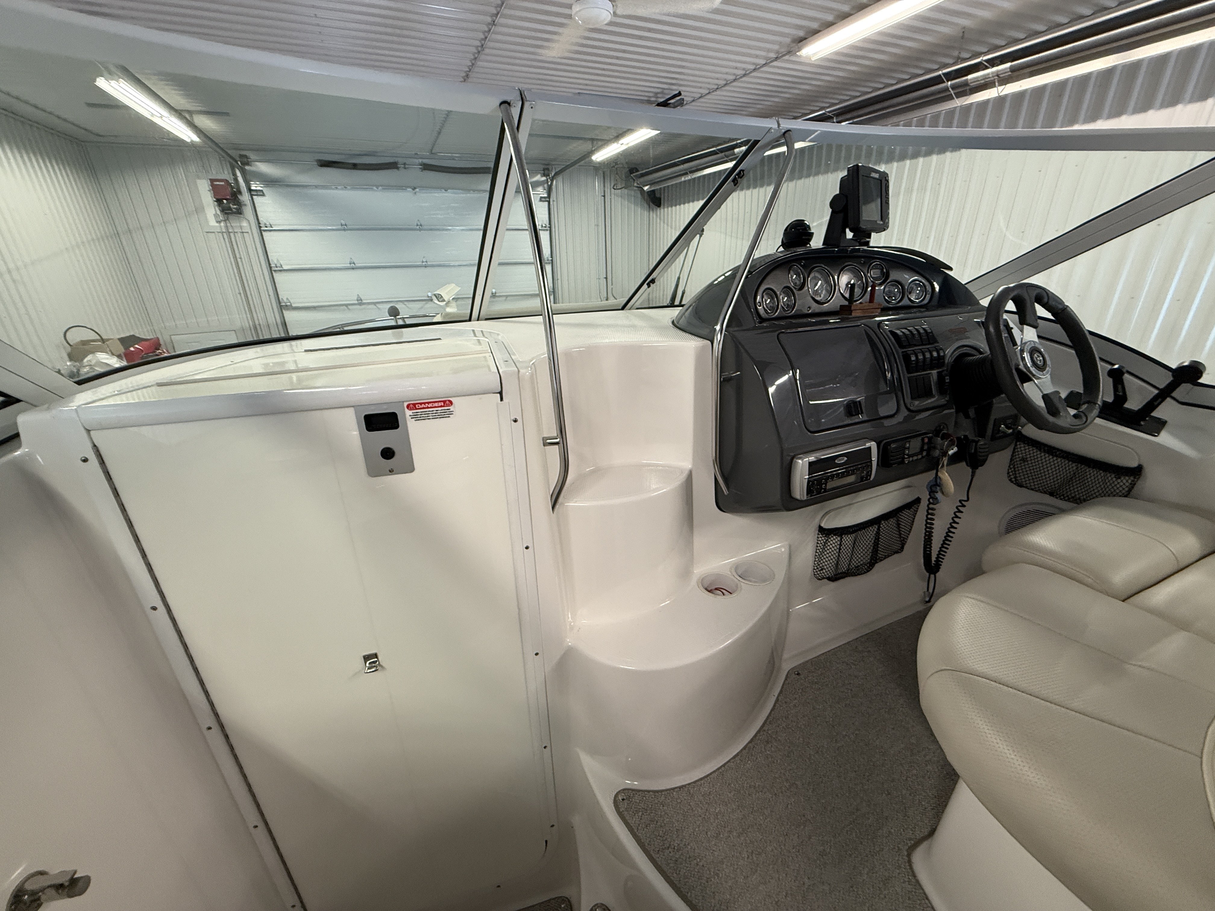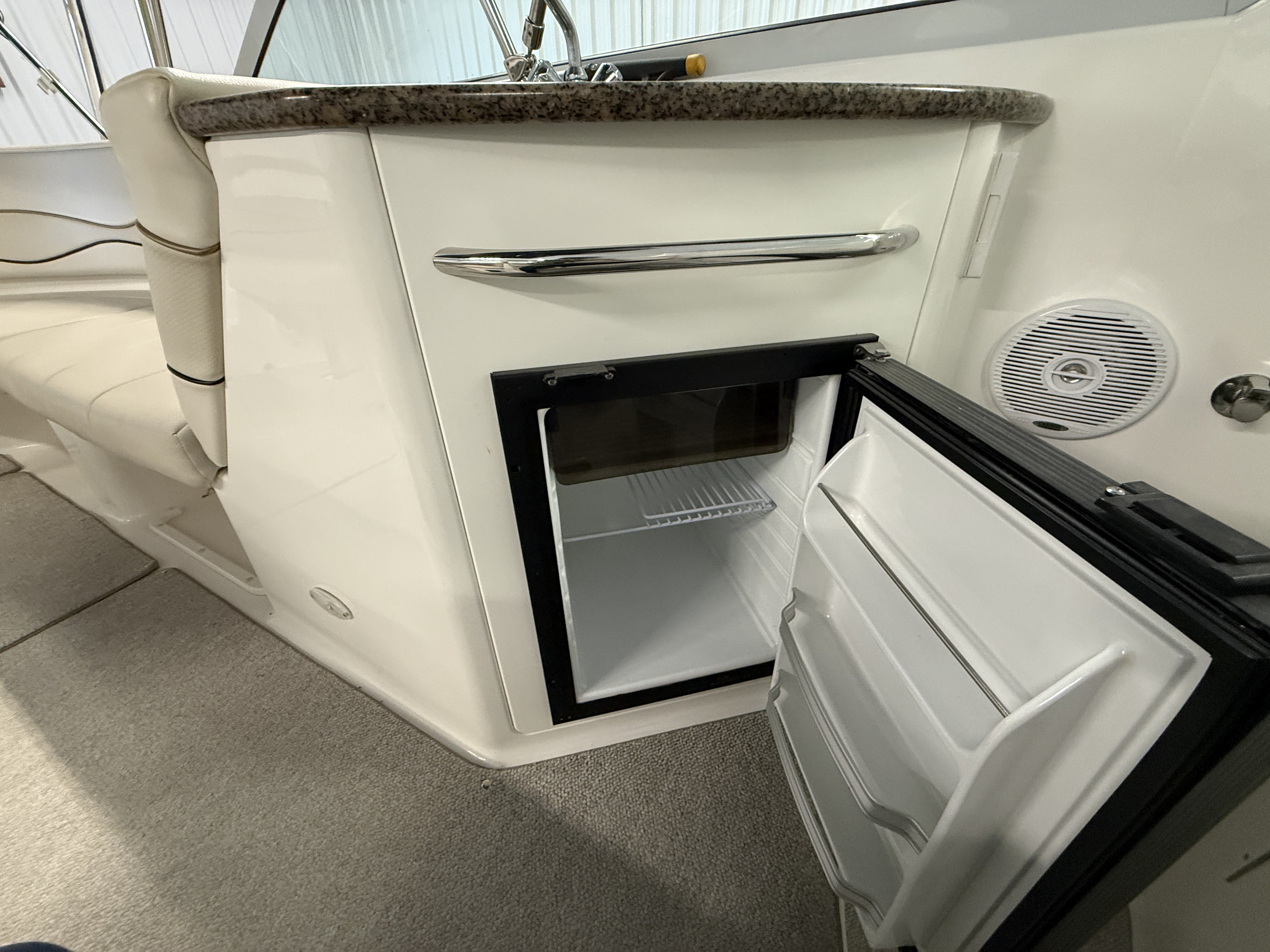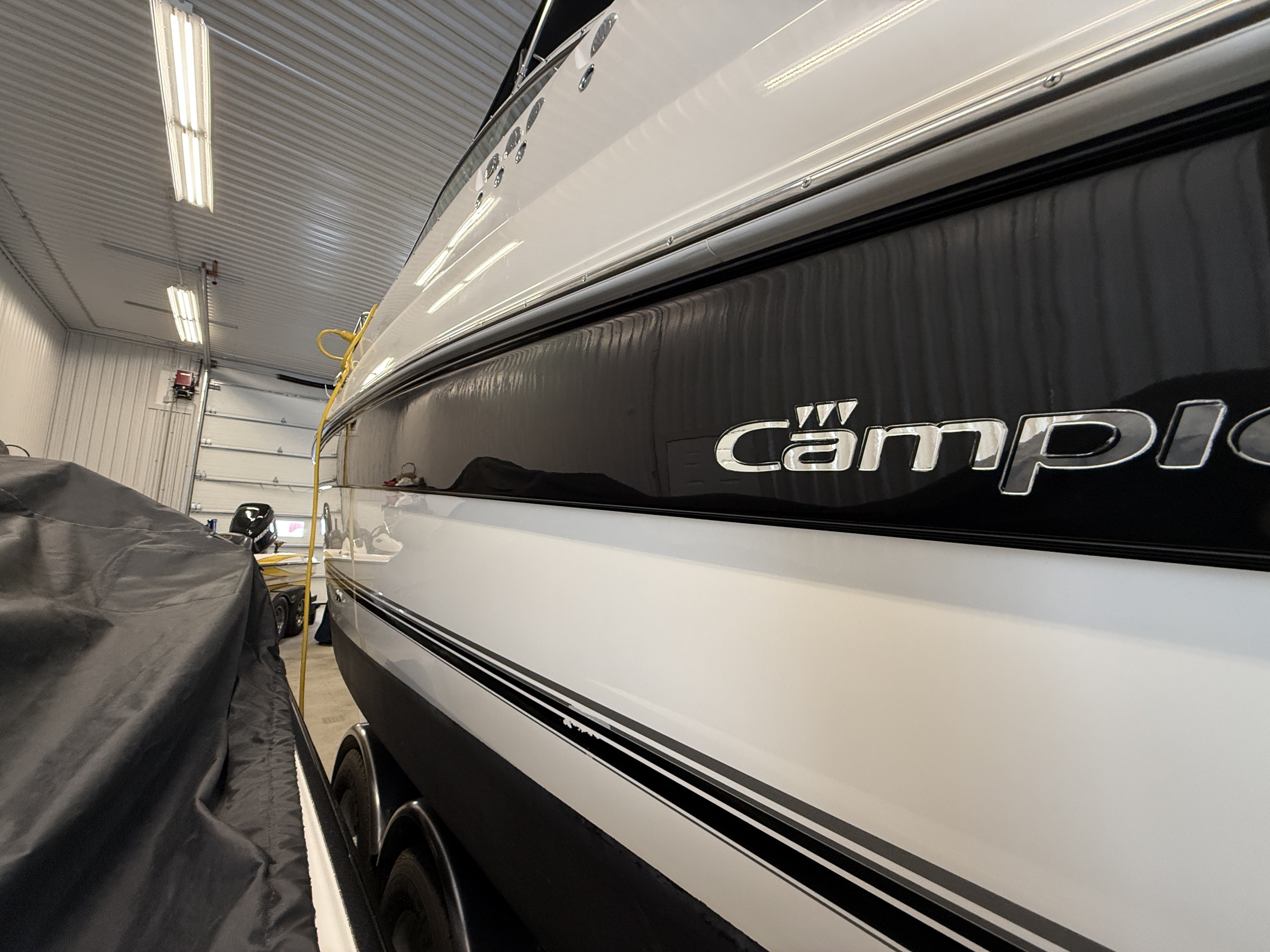 The Campion Allante 825 LX Mid-Cabin is a great combination of spaces that seem "oversized", "lighter-brighter", and much bigger than the other boat brands of similar size. The 825 was introduced in 2004 as part of Campion's 30th Anniversary of quality boat building. A beautiful blend of features and feel of a "big boat", but with the openness of the large cockpit will make you feel you are in a "sport boat". The cockpit has a large social area with seating for 8. Two of the aft seats can be removed to provide a wider open space when you want more room - possibly for fishing. Walk-thru windshield provides safe access to the bow. An additional refrigerator near the wet bar makes entertaining easy.