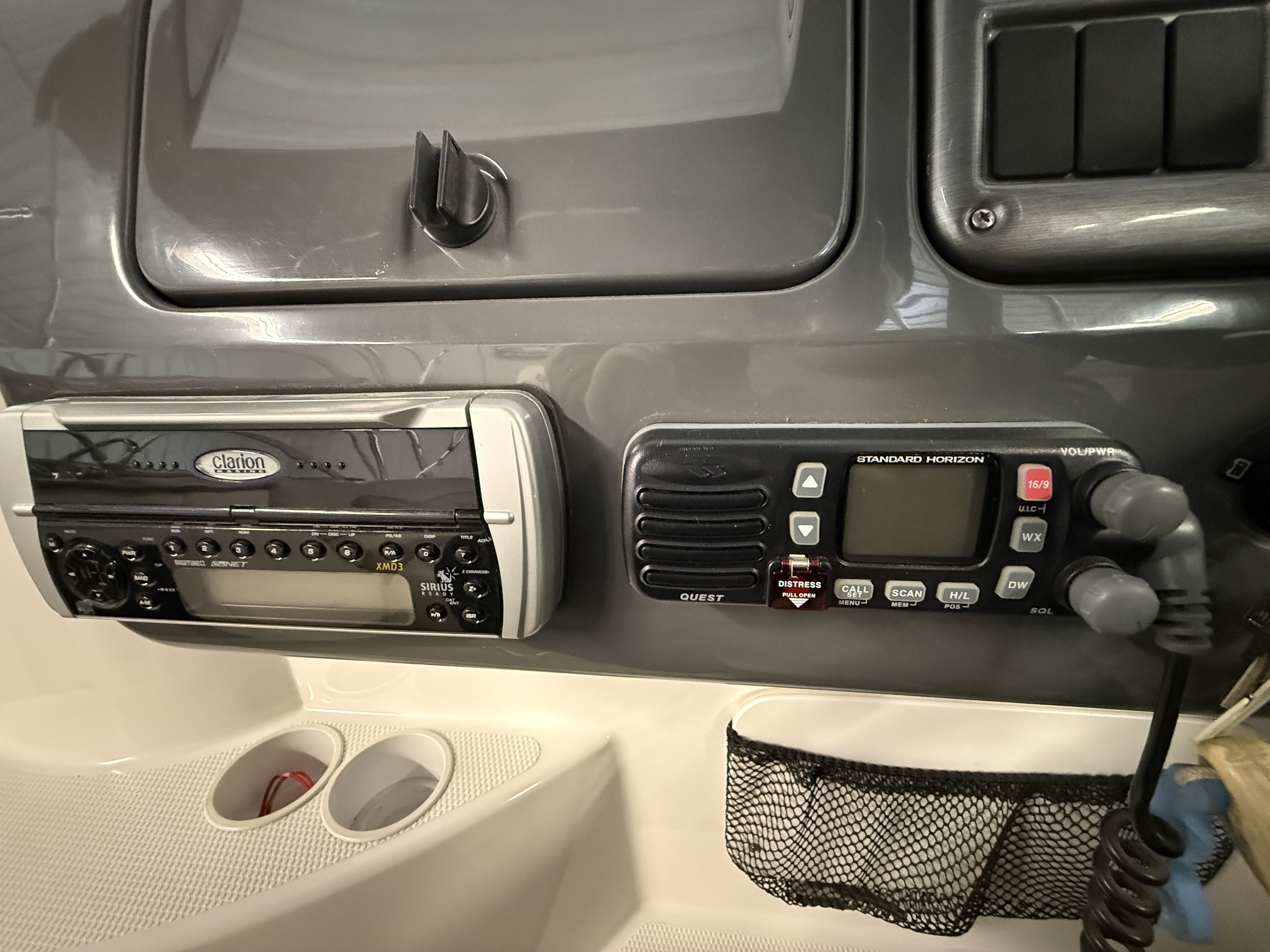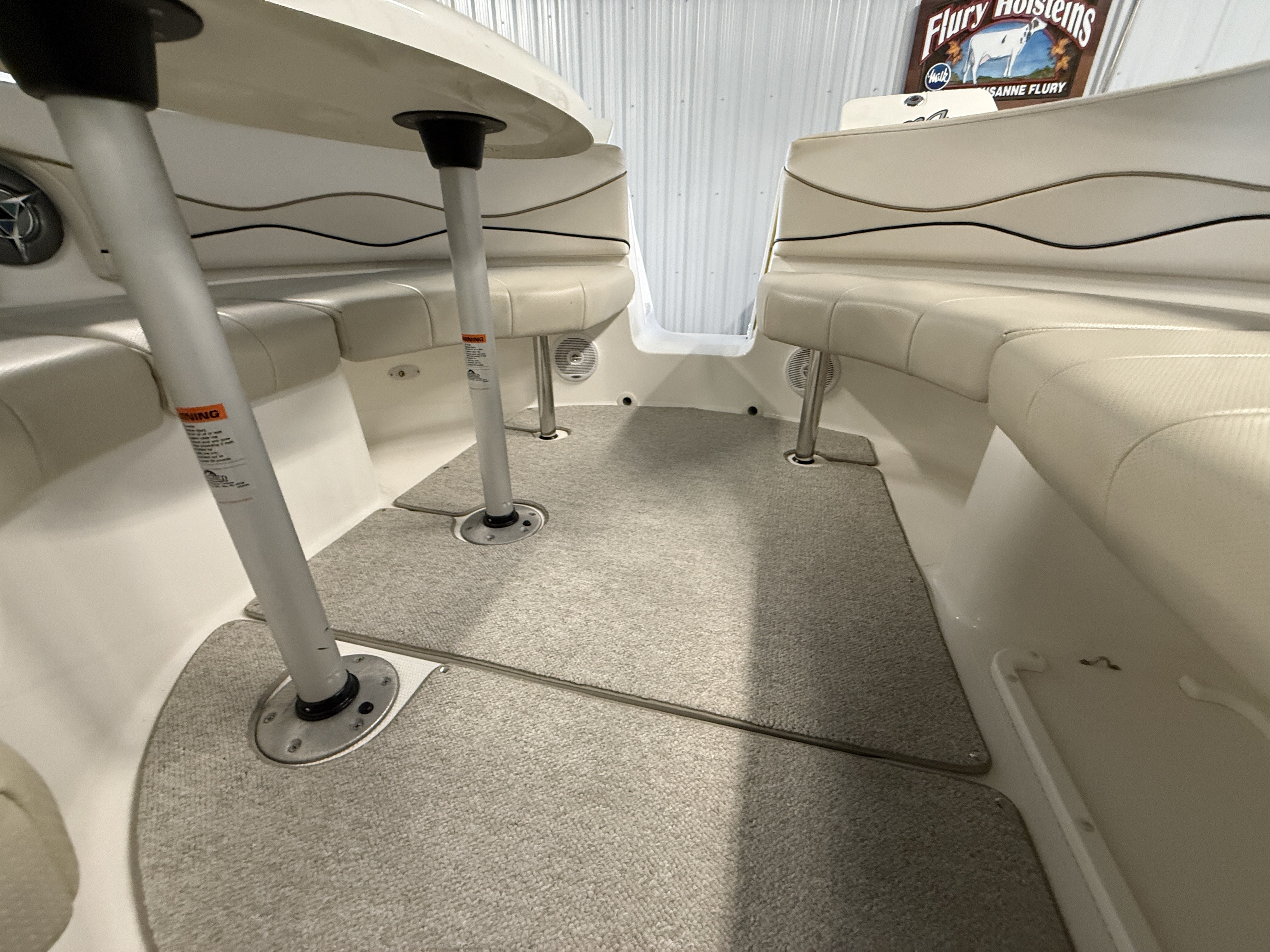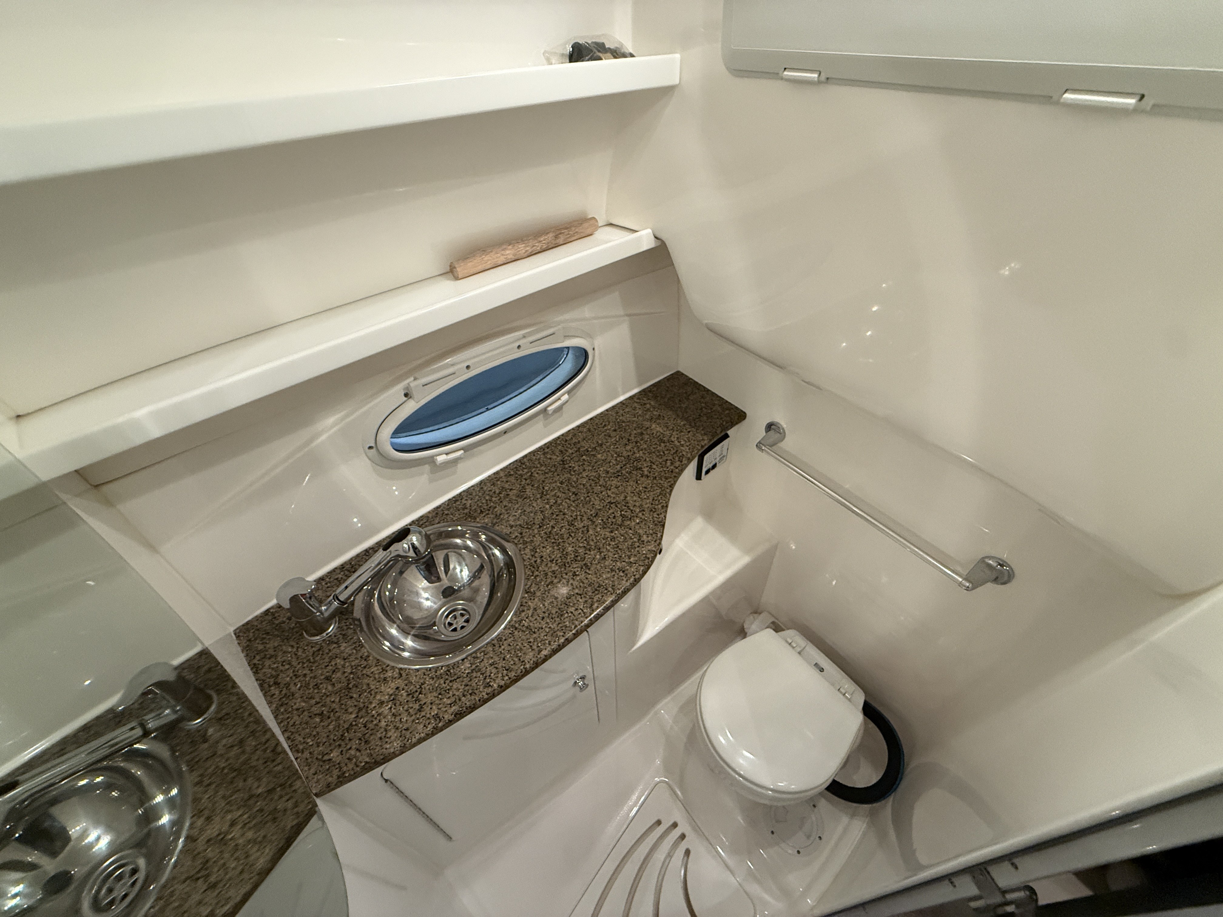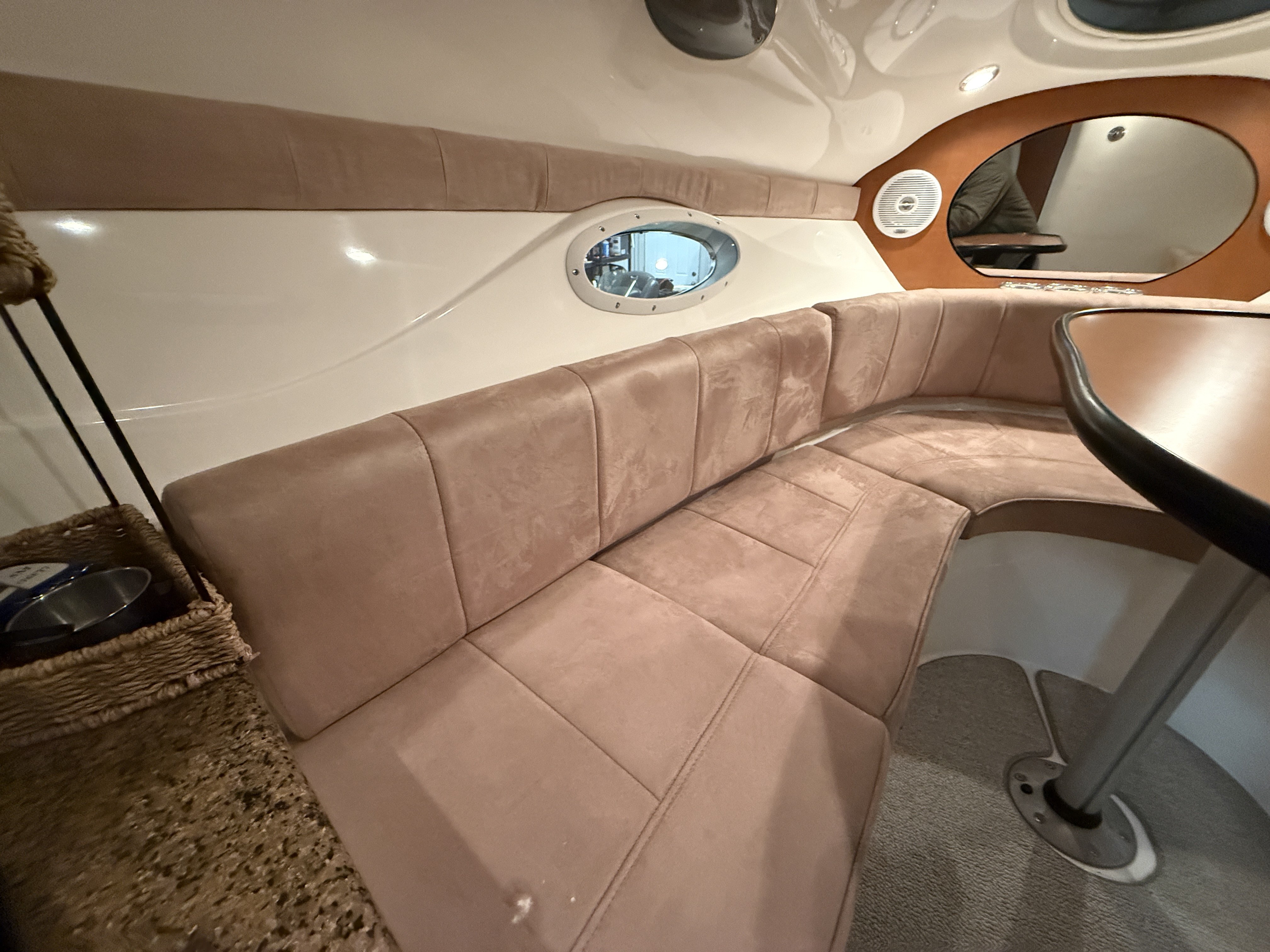 The Campion Allante 825 LX Mid-Cabin is a great combination of spaces that seem "oversized", "lighter-brighter", and much bigger than the other boat brands of similar size. The 825 was introduced in 2004 as part of Campion's 30th Anniversary of quality boat building. A beautiful blend of features and feel of a "big boat", but with the openness of the large cockpit will make you feel you are in a "sport boat". The cockpit has a large social area with seating for 8. Two of the aft seats can be removed to provide a wider open space when you want more room - possibly for fishing. Walk-thru windshield provides safe access to the bow. An additional refrigerator near the wet bar makes entertaining easy.