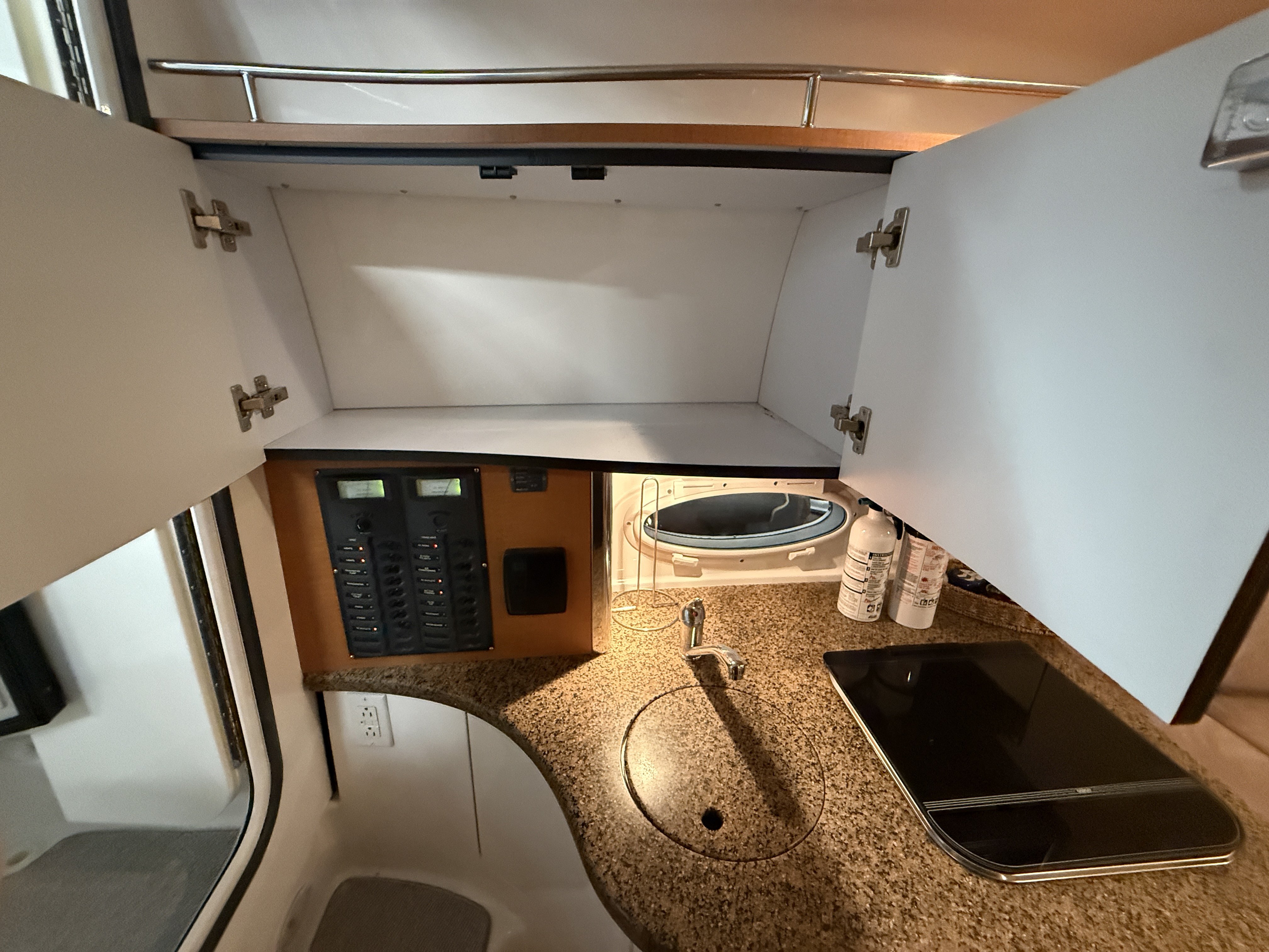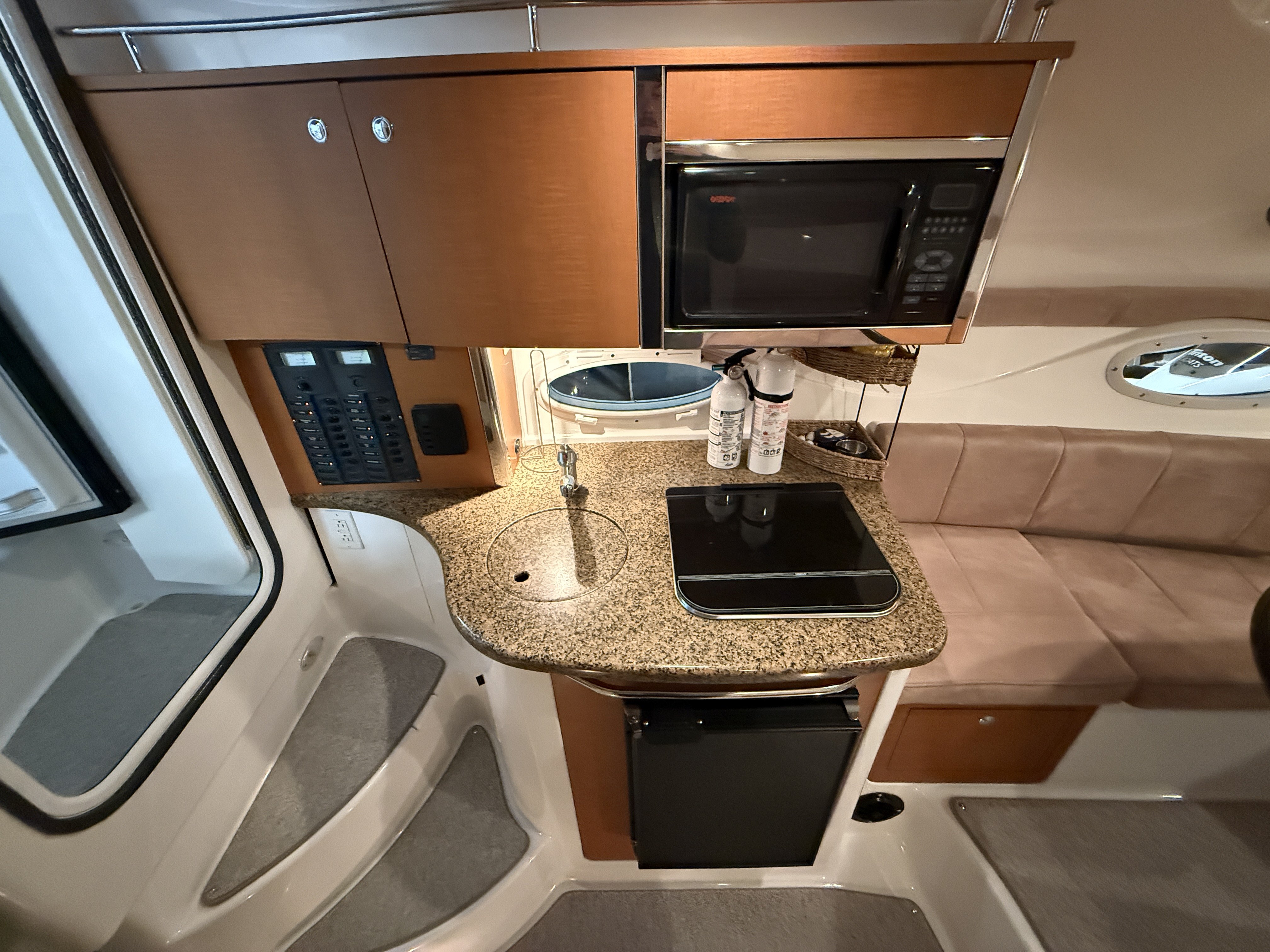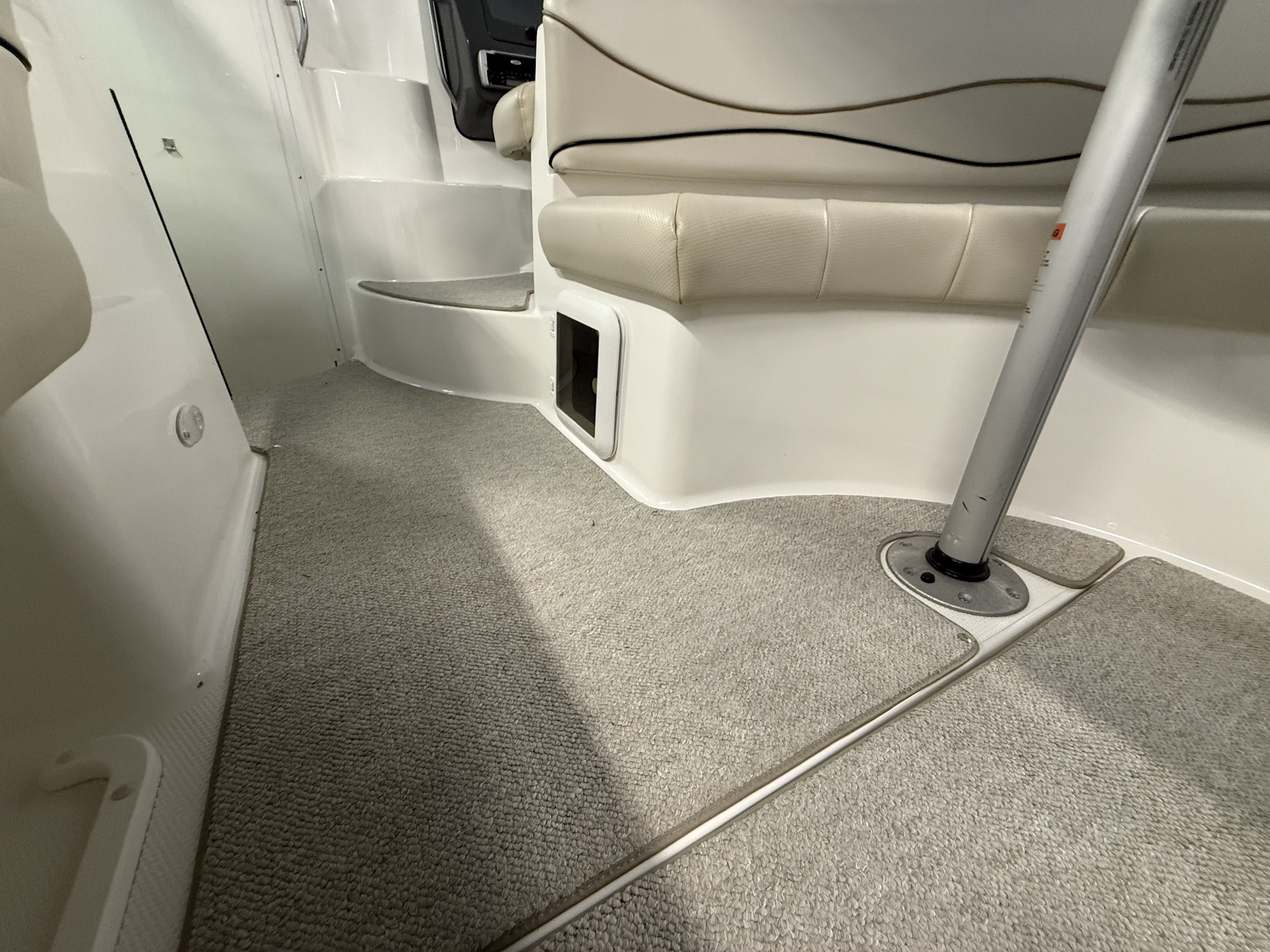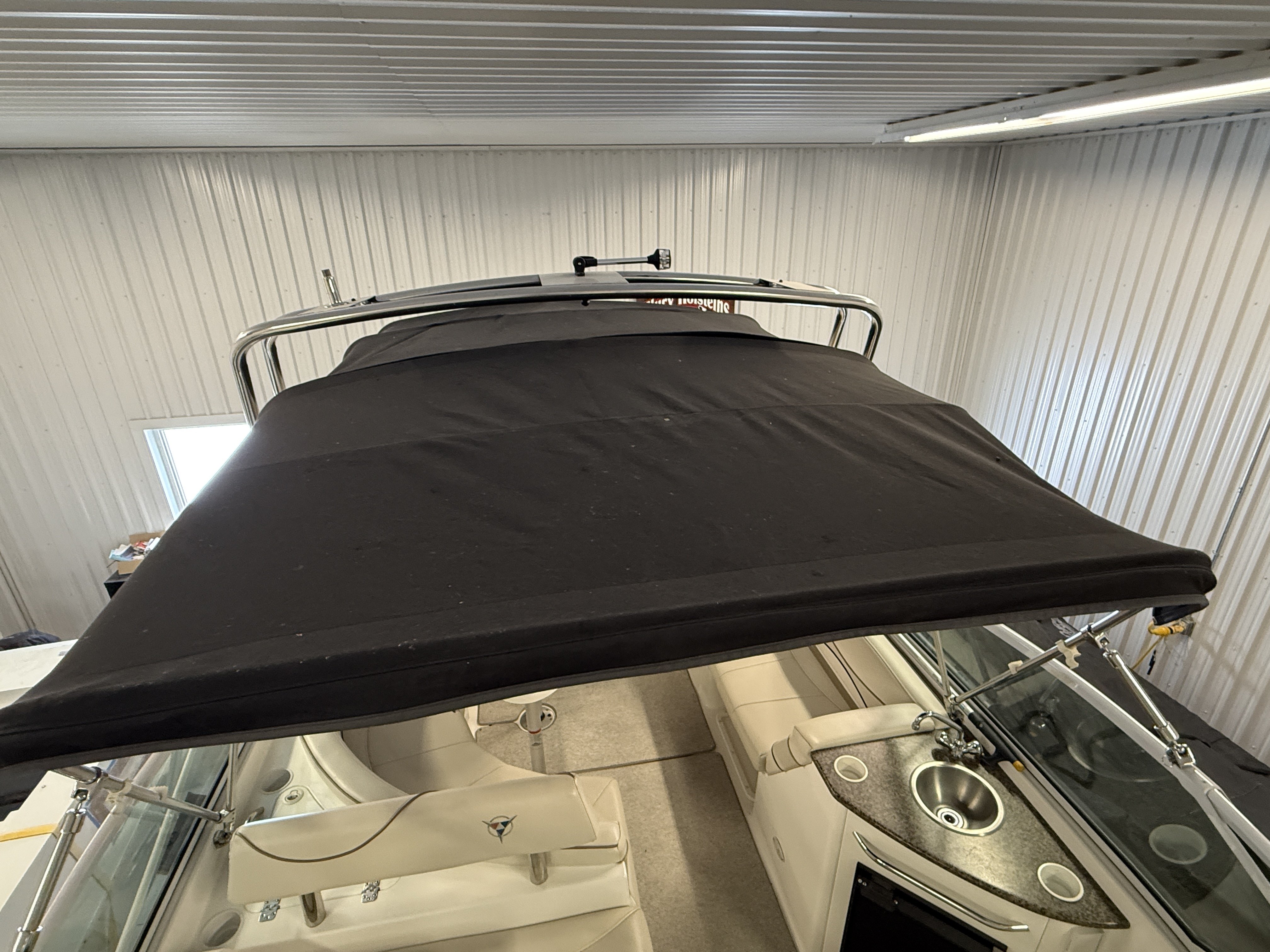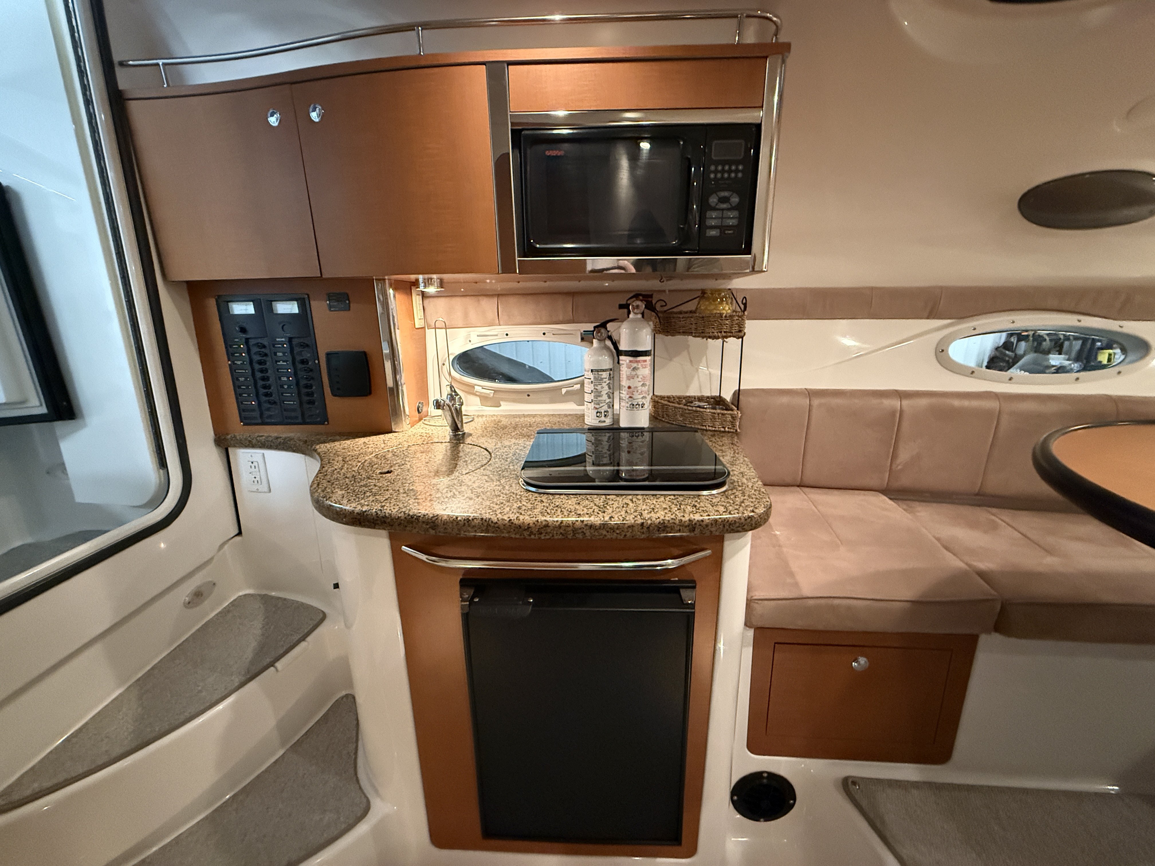 The Campion Allante 825 LX Mid-Cabin is a great combination of spaces that seem "oversized", "lighter-brighter", and much bigger than the other boat brands of similar size. The 825 was introduced in 2004 as part of Campion's 30th Anniversary of quality boat building. A beautiful blend of features and feel of a "big boat", but with the openness of the large cockpit will make you feel you are in a "sport boat". The cockpit has a large social area with seating for 8. Two of the aft seats can be removed to provide a wider open space when you want more room - possibly for fishing. Walk-thru windshield provides safe access to the bow. An additional refrigerator near the wet bar makes entertaining easy.