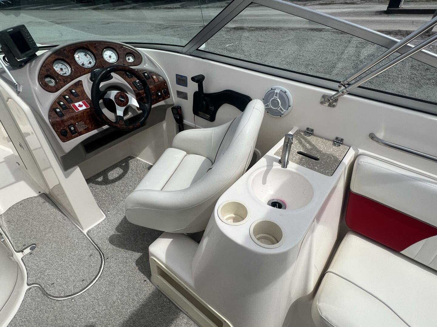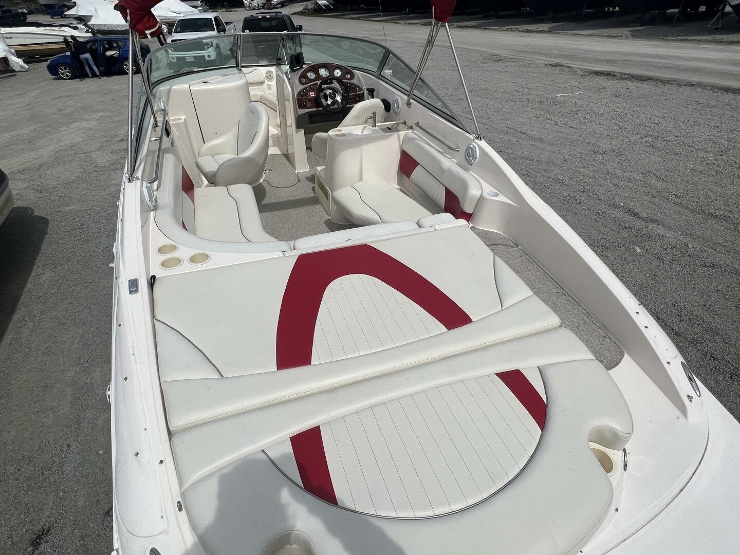 The open bow layout provides ample seating for family and friends, with plush upholstery, built-in coolers, and plenty of storage throughout. The large extended swim platform makes getting in and out of the water a breeze, and the cockpit sink and enclosed head add all-day convenience. Whether you're anchoring out or towing the kids on a tube, this boat is built to make memories.