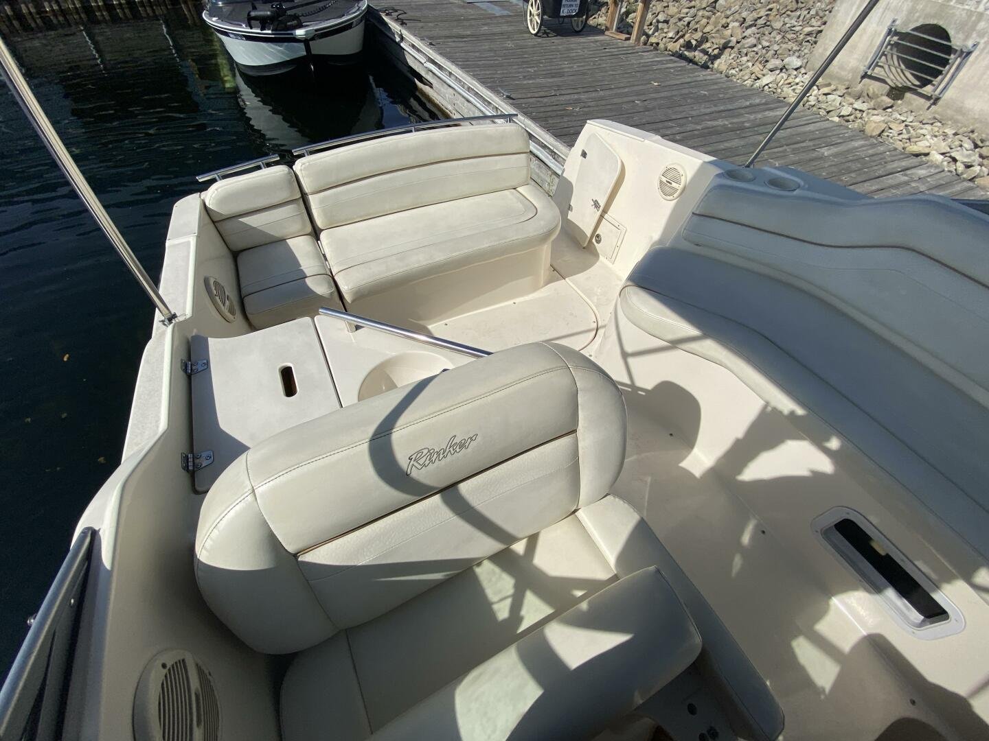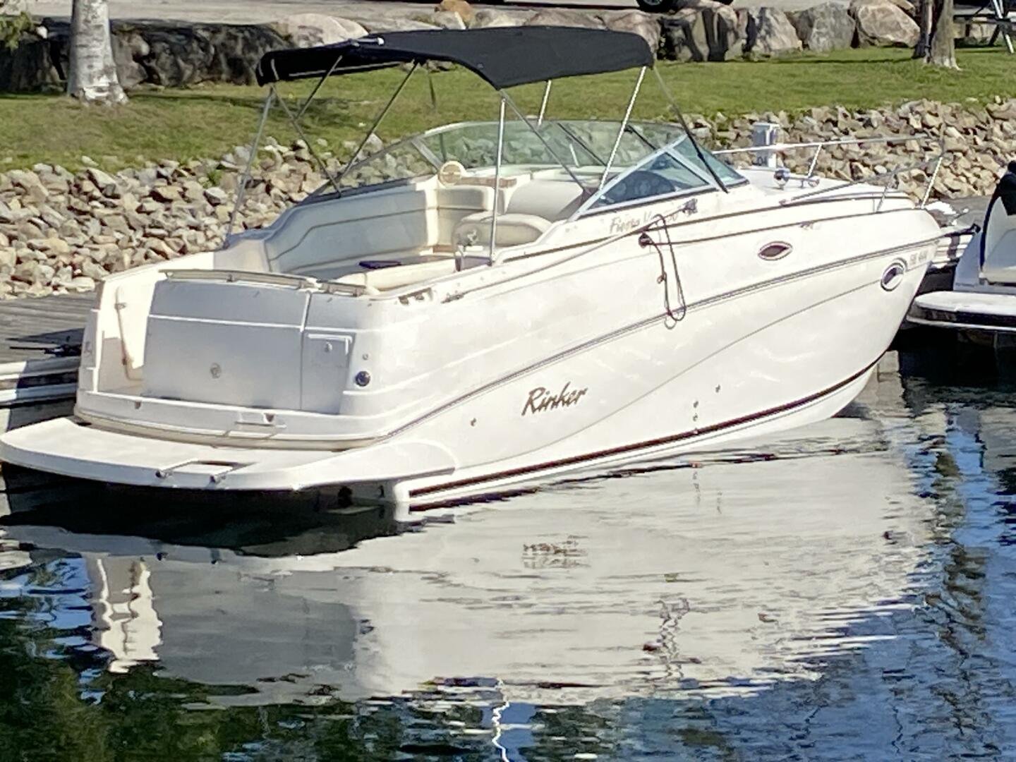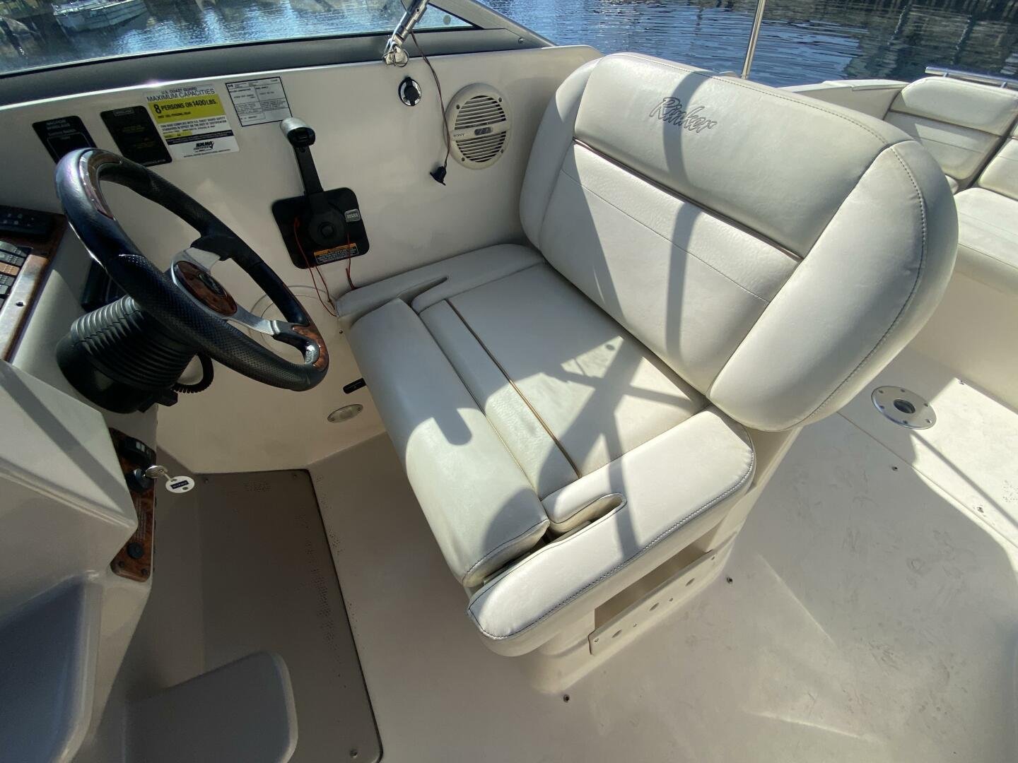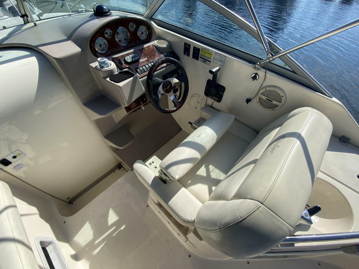 2005 Ri2005 Rinker Fiesta Vee 250 is a great weekender, offering enough space for short trips, with amenities like a galley, head with shower, and decent freshwater capacity. The Bimini and enclosure, provides ample sun coverage or weather protection in the cockpit, maximizing seating comfort and capacity while you cruise the waterways.