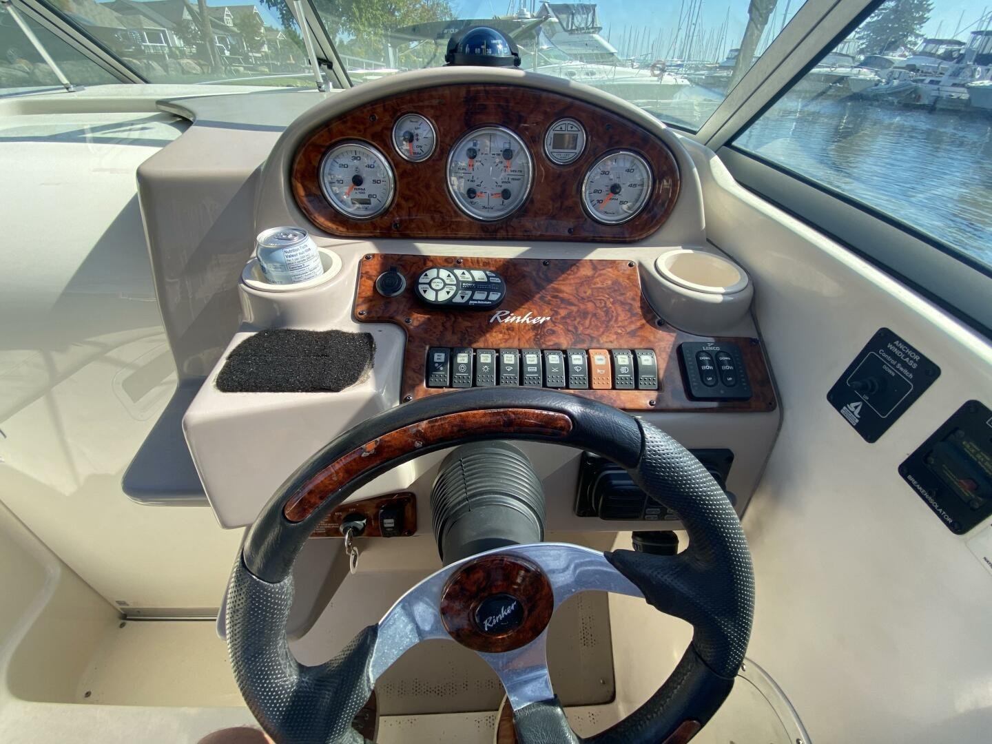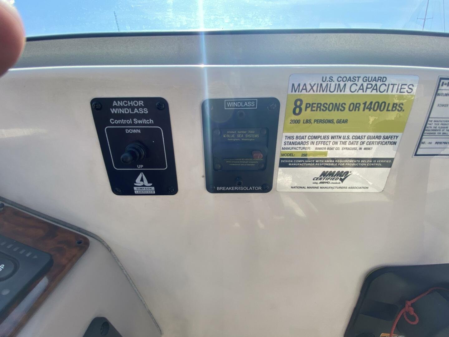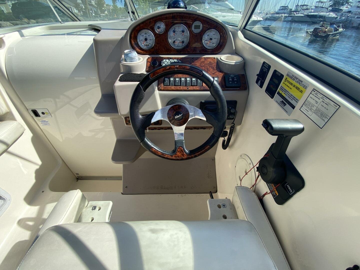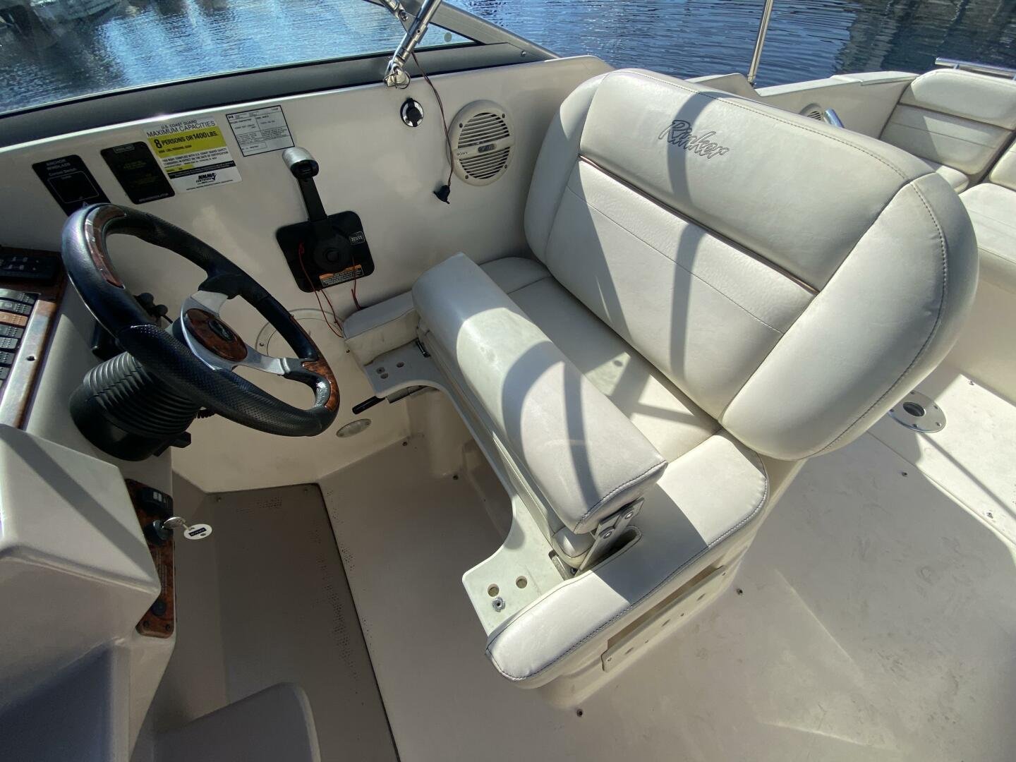 2005 Ri2005 Rinker Fiesta Vee 250 is a great weekender, offering enough space for short trips, with amenities like a galley, head with shower, and decent freshwater capacity. The Bimini and enclosure, provides ample sun coverage or weather protection in the cockpit, maximizing seating comfort and capacity while you cruise the waterways.