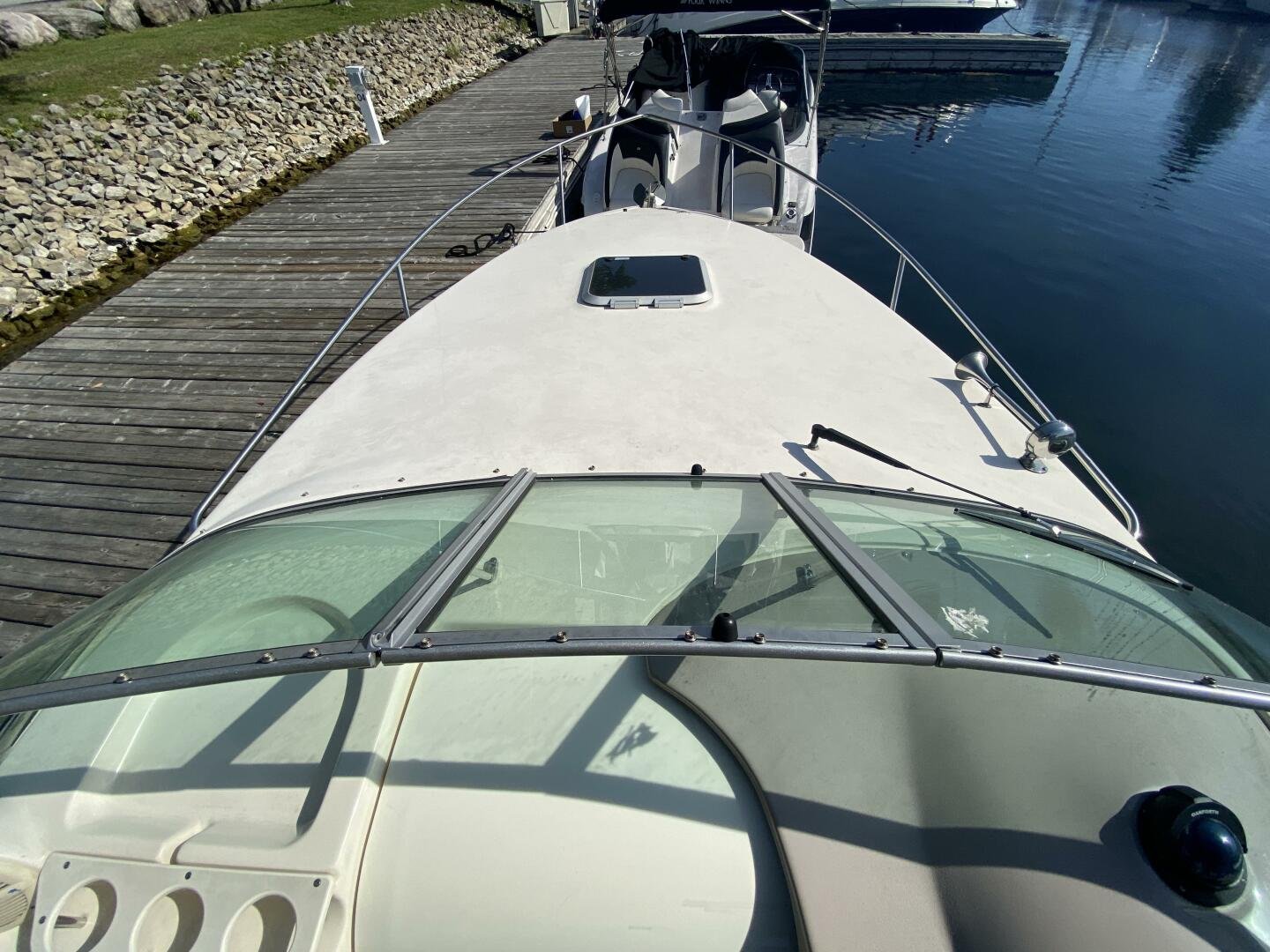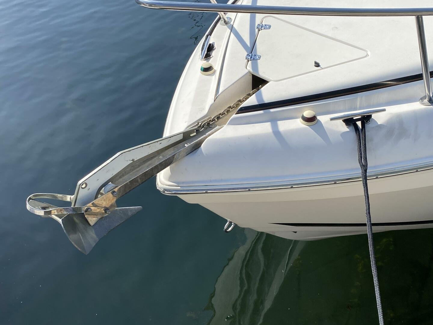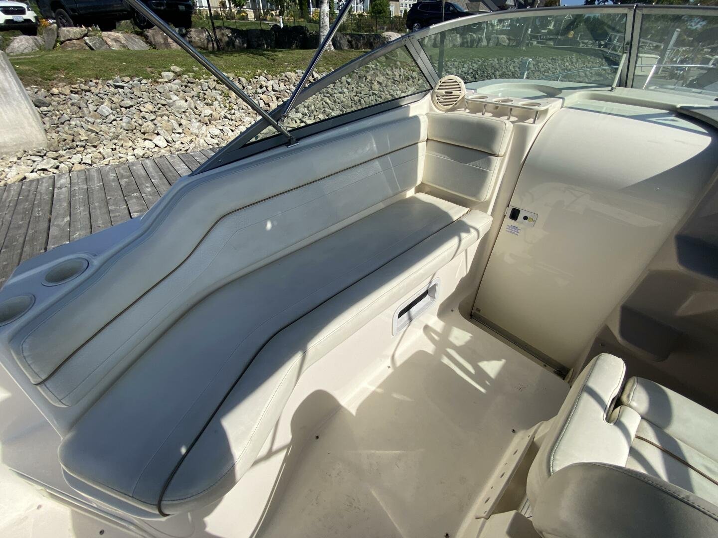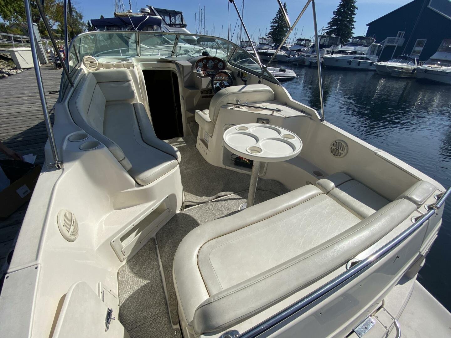 2005 Rinker Fiesta Vee 250 is a great weekender, offering enough space for short trips, with amenities like a galley, head with shower, decent freshwater capacity. The Bimini and enclosure, provides ample sun coverage or weather protection in the cockpit, maximizing seating comfort and capacity.