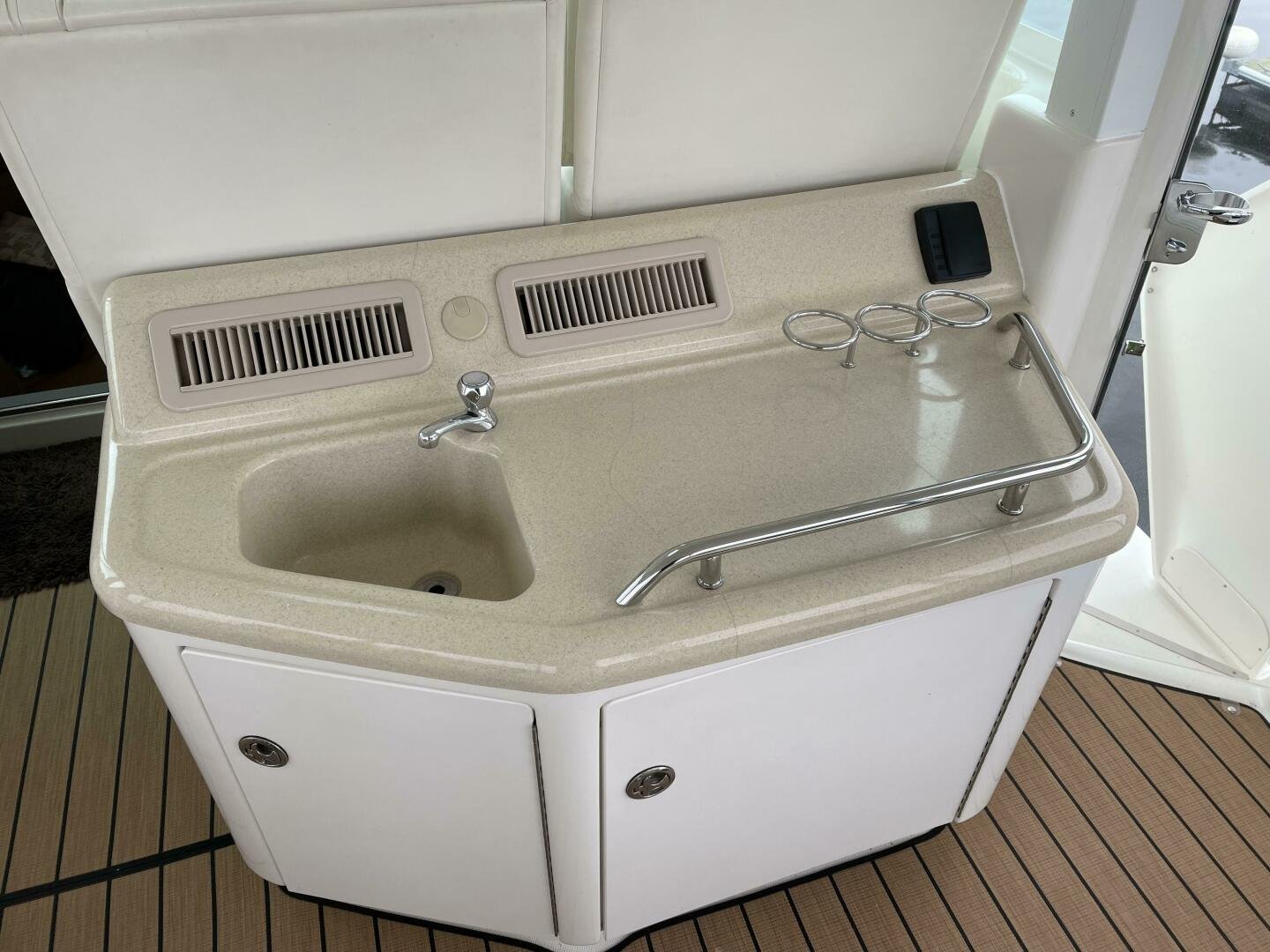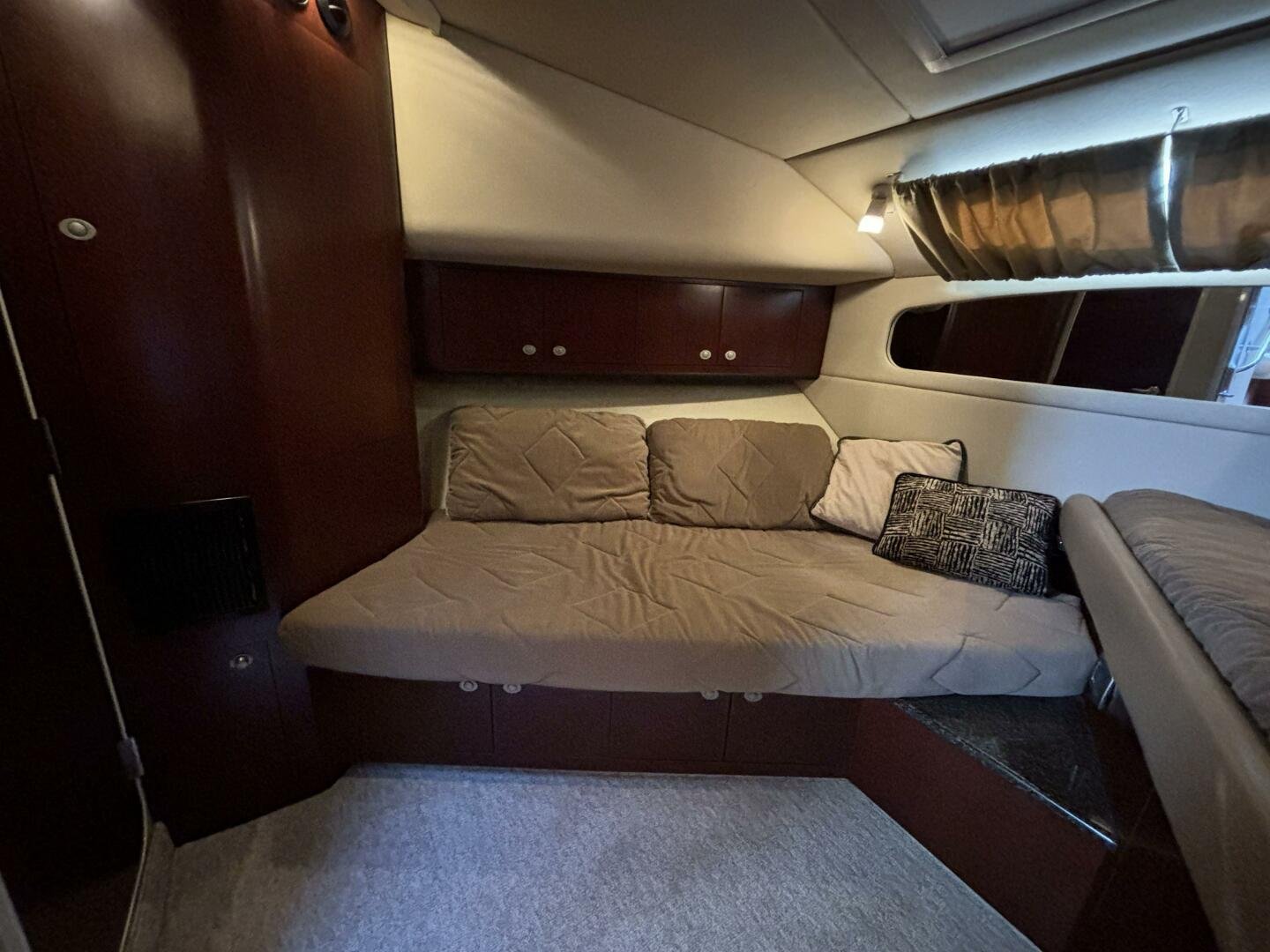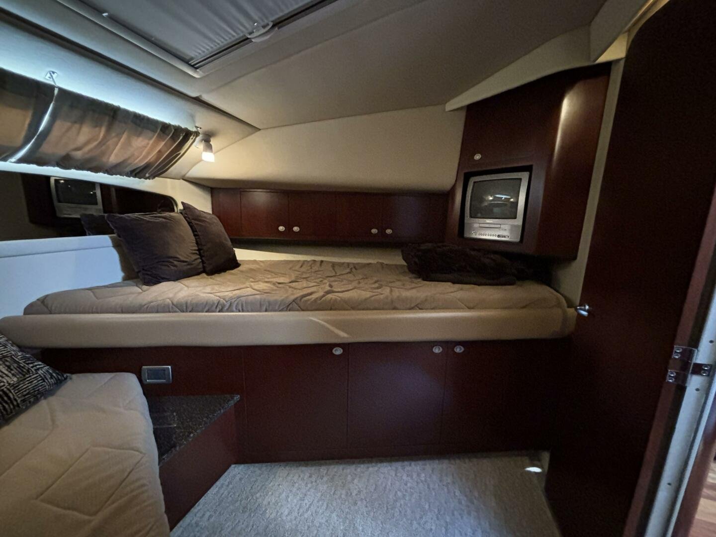 Located in Kenora on Lake of the Woods, it has spent most of its life in freshwater and it shows the way you’d expect because of that. Clean, well kept, and nothing that feels tired or neglected when you step aboard. Powered by twin MerCruiser 8.1 Horizons, a well-known and widely used package in this size range. These engines are known for being reliable, easy to service, and supported by just about any marine technician. It cruises comfortably in the 18 to 22 knot range, with a top speed around 26 to 28 knots. At cruising speed, you can expect fuel burn in the range of approximately 40 to 50 gallons per hour.