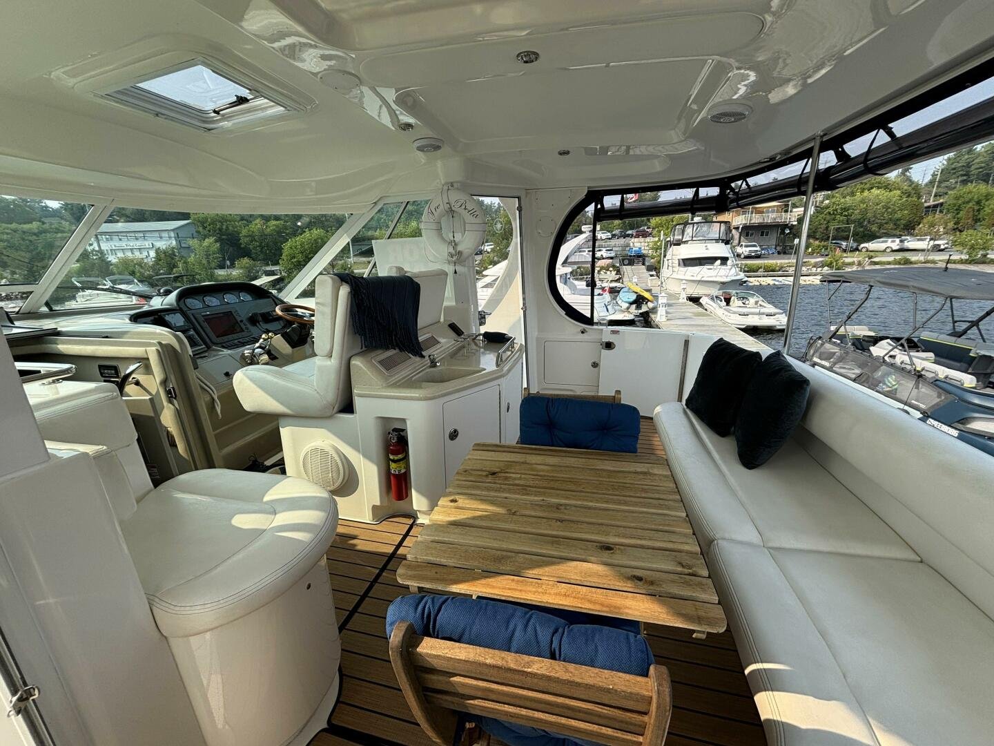 The cockpit is fully enclosed with a hardtop, wing doors, and its own heat and A/C. It ends up being a second living area more than just a cockpit, especially in shoulder seasons.