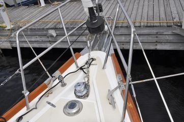6 pad steel cradle, 2 anchors, chain & rode, safety gear, cabin fans throughout, solar panels on the hard dodger & flexible panels on the bimini. Radar & antennae tower on the stern. Dinghy davits. 3 blade feathering prop. Teak cockpit table. Fenders & lines.