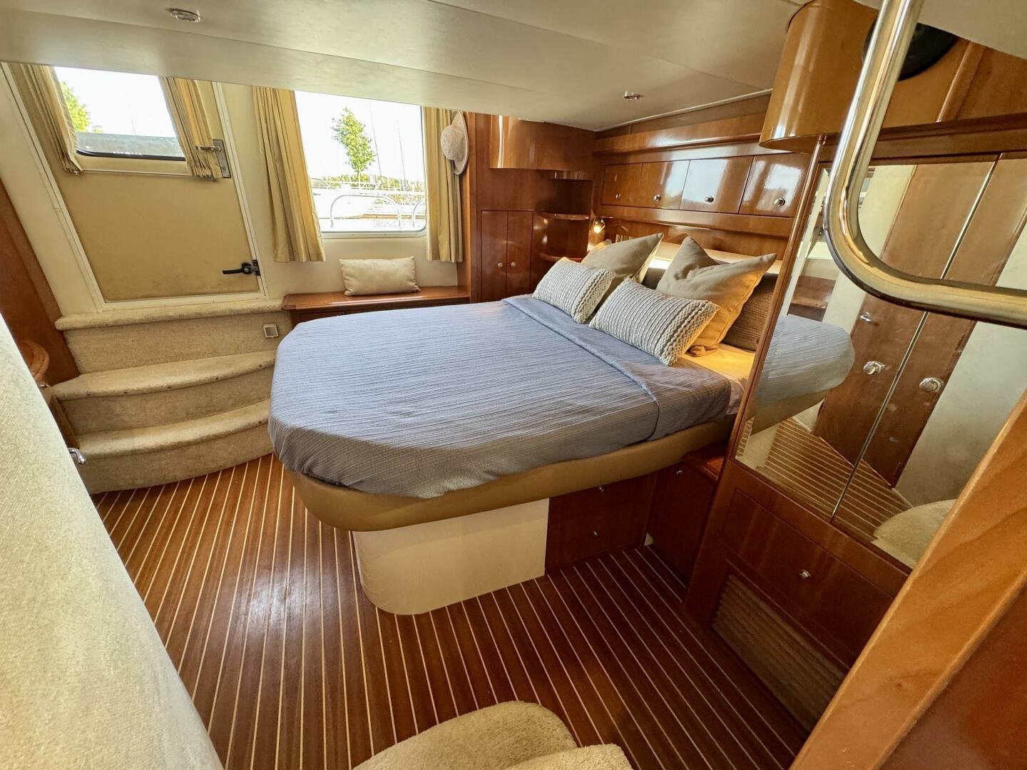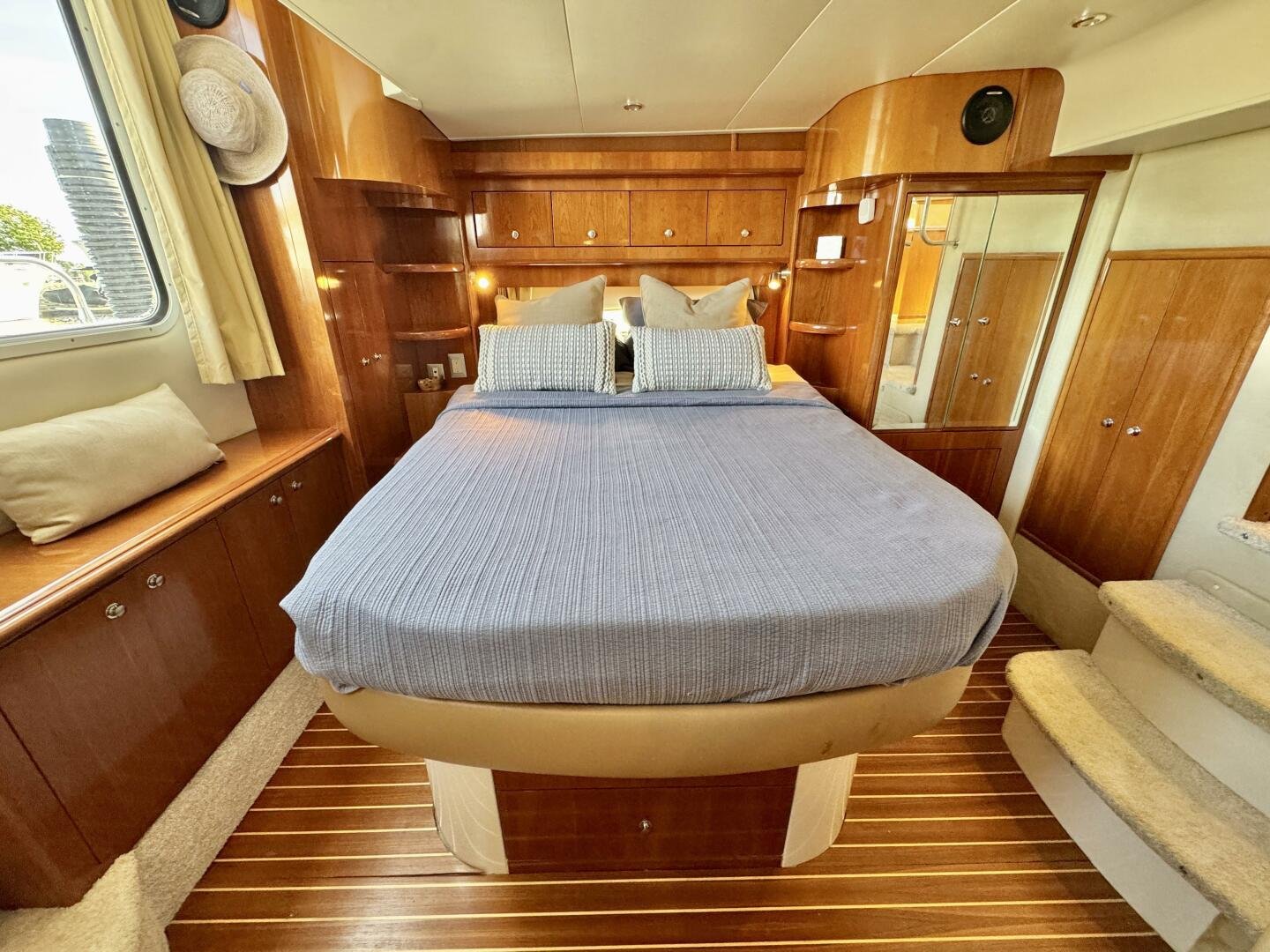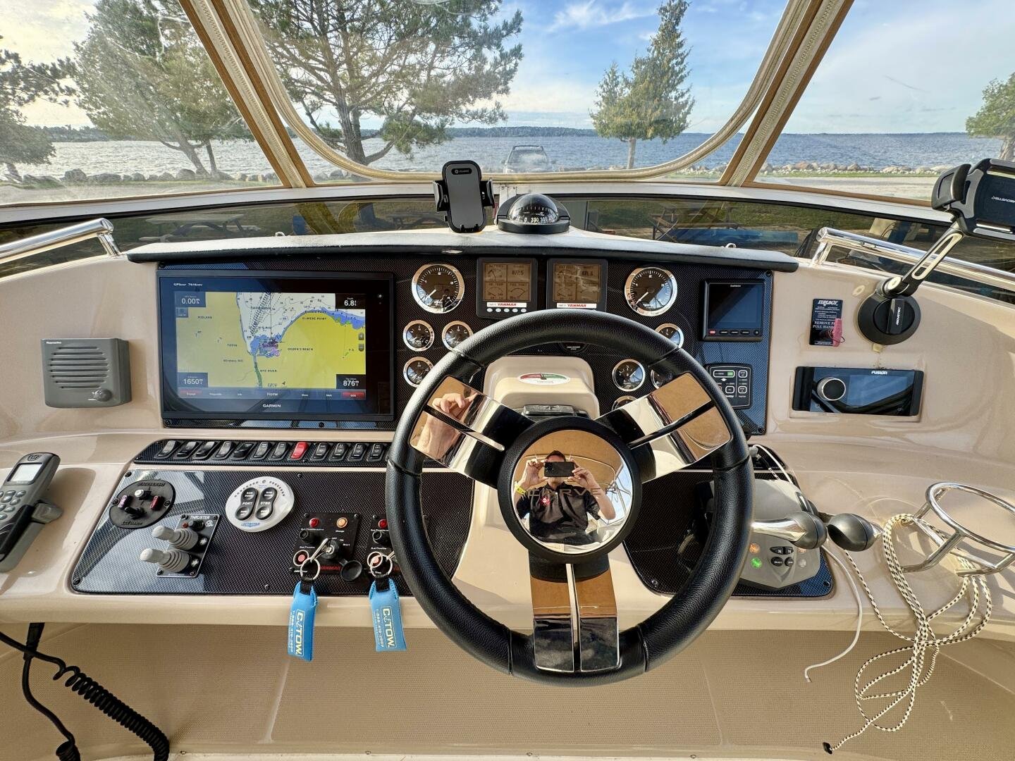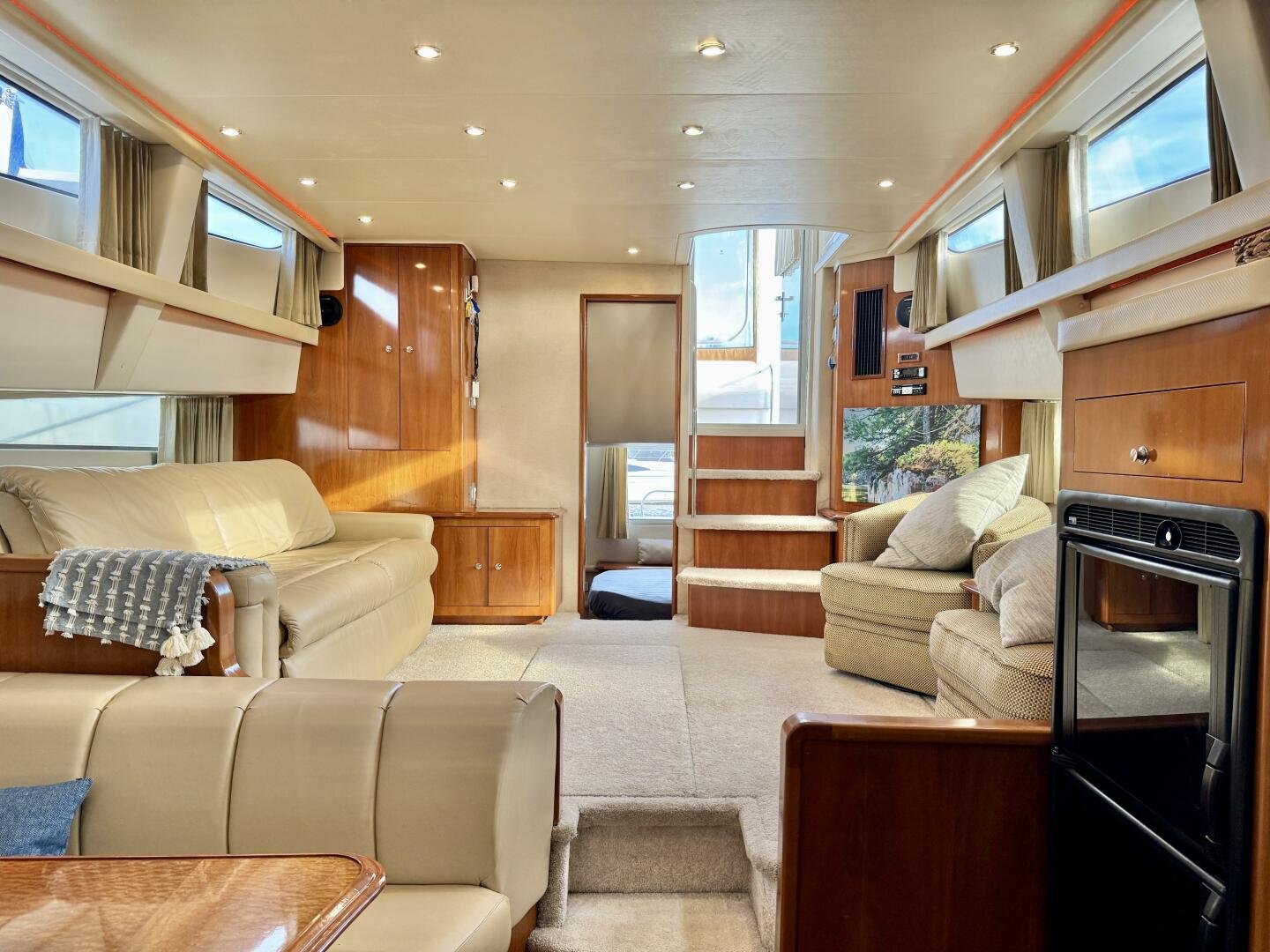 Step aboard this luxurious 2006 Carver 43 Motor Yacht – later rebranded as the 47 Motor Yacht in 2008–09 to reflect its true overall length of 49’2”. Far more spacious than a typical 43’ aft cabin, this yacht was crafted in collaboration with BMW Group DesignworksUSA, blending Carver’s renowned comfort with sleek European styling. The result: a bright, full-beam interior accented in rich cherry wood and defined by long, sharply angled windows that flood the salon with natural light.