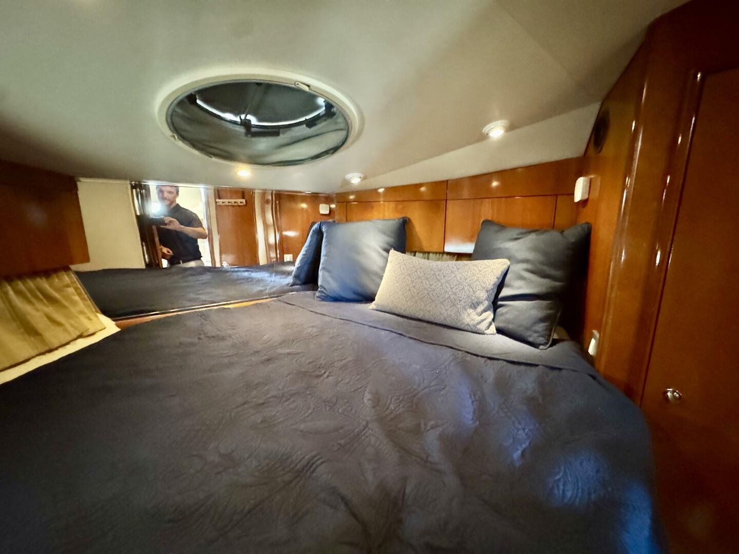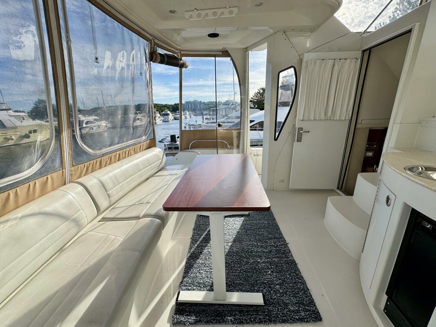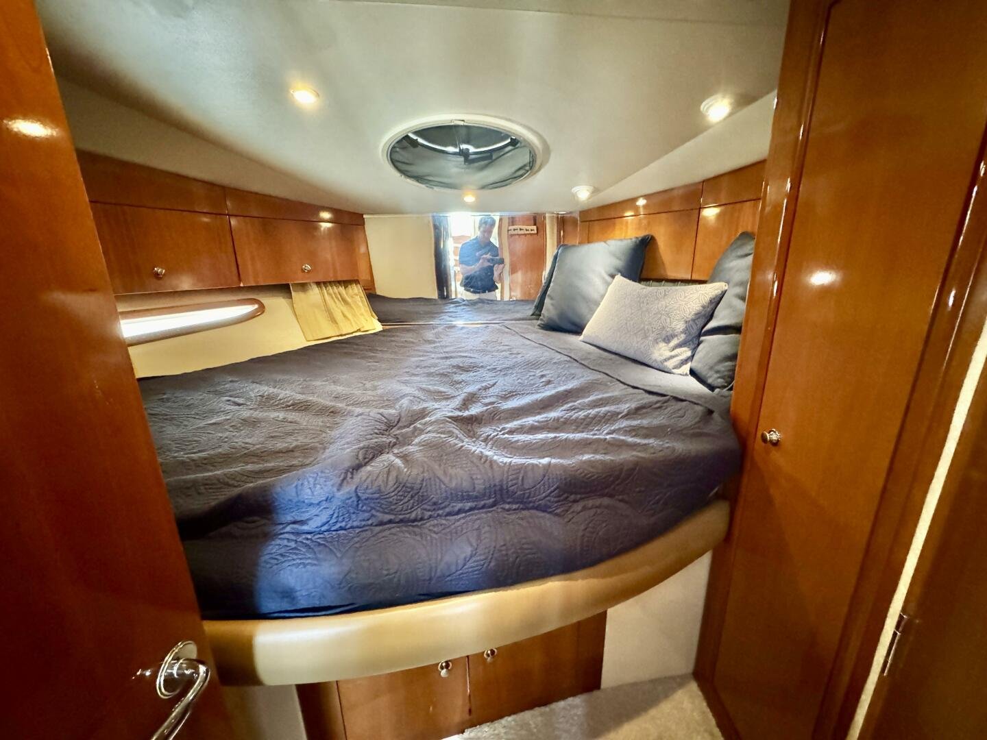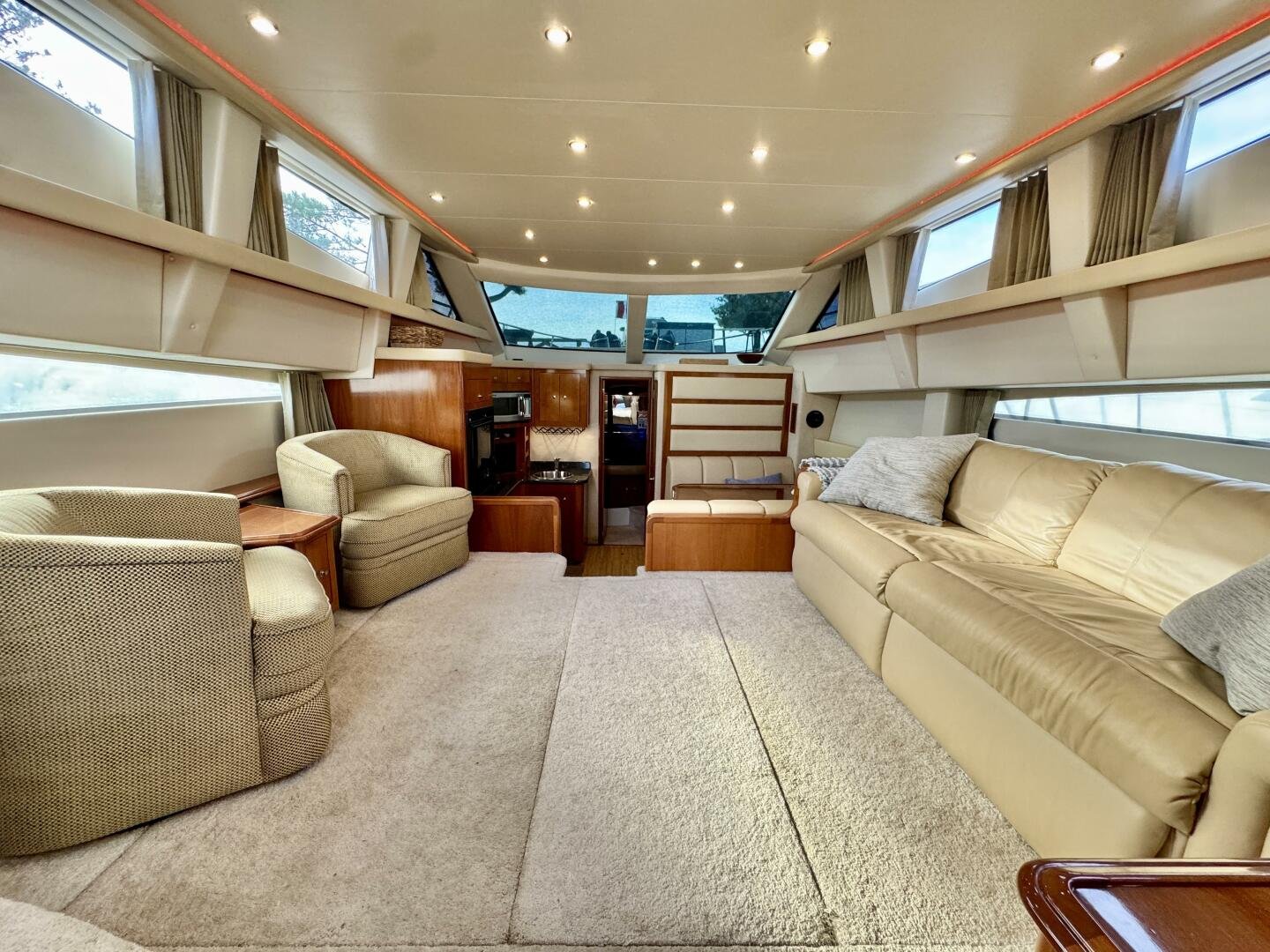 Step aboard this luxurious 2006 Carver 43 Motor Yacht – later rebranded as the 47 Motor Yacht in 2008–09 to reflect its true overall length of 49’2”. Far more spacious than a typical 43’ aft cabin, this yacht was crafted in collaboration with BMW Group DesignworksUSA, blending Carver’s renowned comfort with sleek European styling. The result: a bright, full-beam interior accented in rich cherry wood and defined by long, sharply angled windows that flood the salon with natural light.