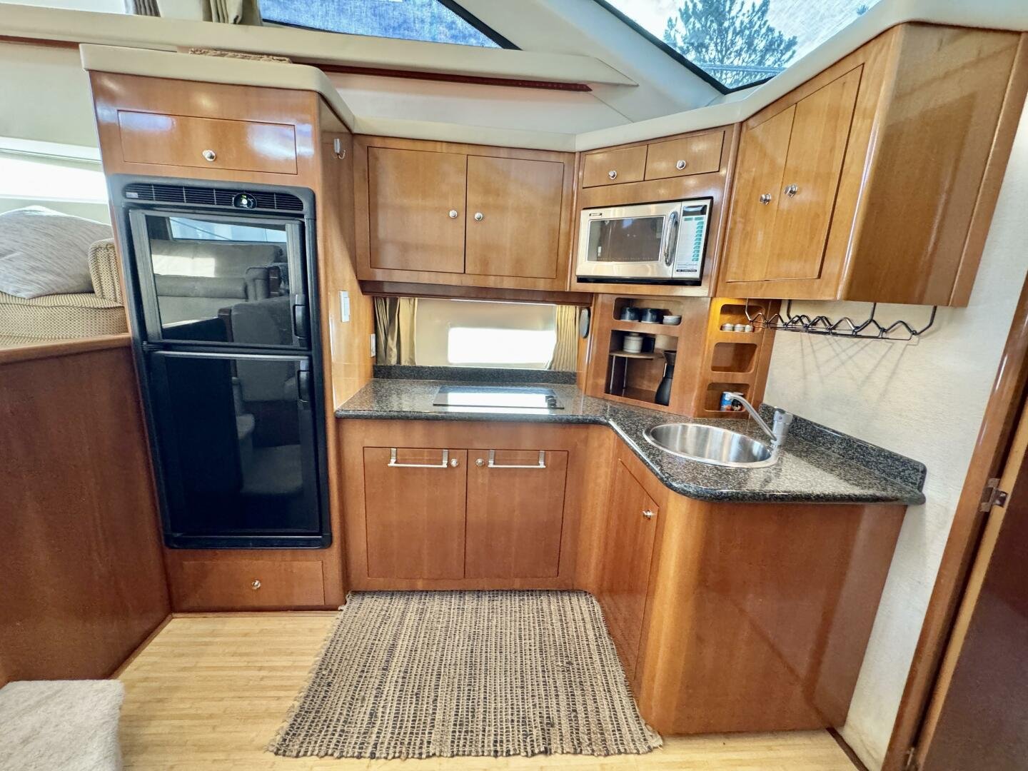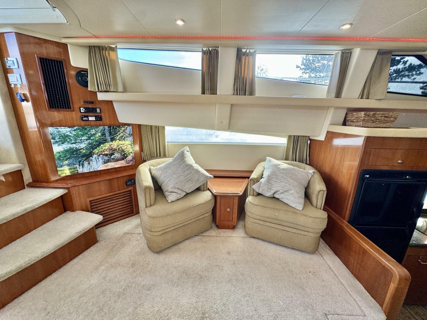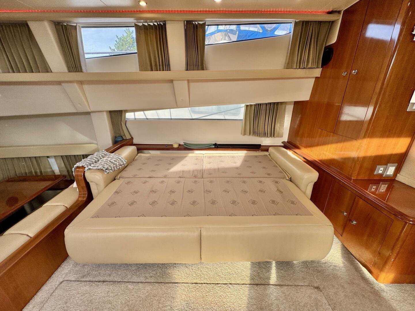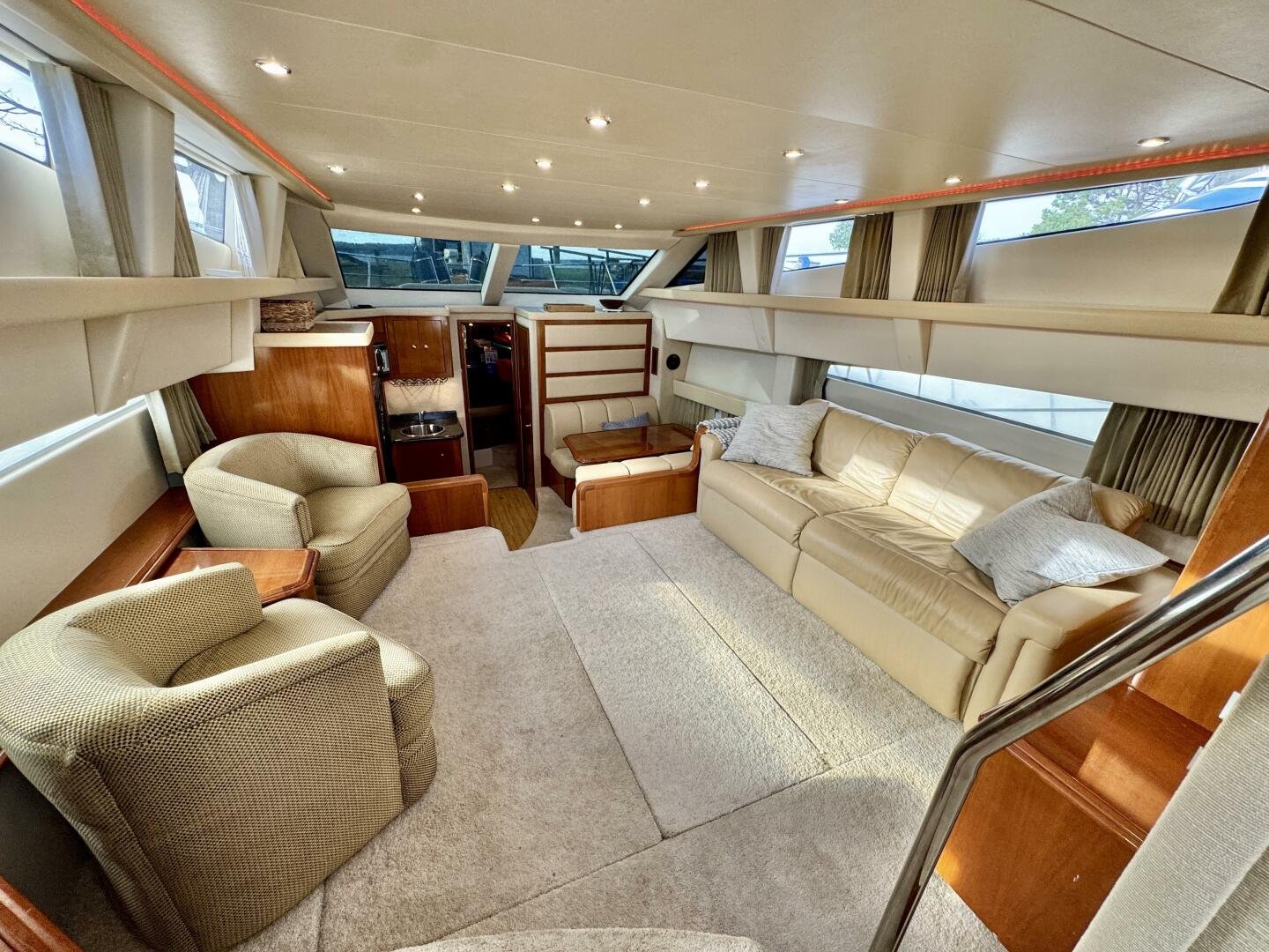 Step aboard this luxurious 2006 Carver 43 Motor Yacht – later rebranded as the 47 Motor Yacht in 2008–09 to reflect its true overall length of 49’2”. Far more spacious than a typical 43’ aft cabin, this yacht was crafted in collaboration with BMW Group DesignworksUSA, blending Carver’s renowned comfort with sleek European styling. The result: a bright, full-beam interior accented in rich cherry wood and defined by long, sharply angled windows that flood the salon with natural light.