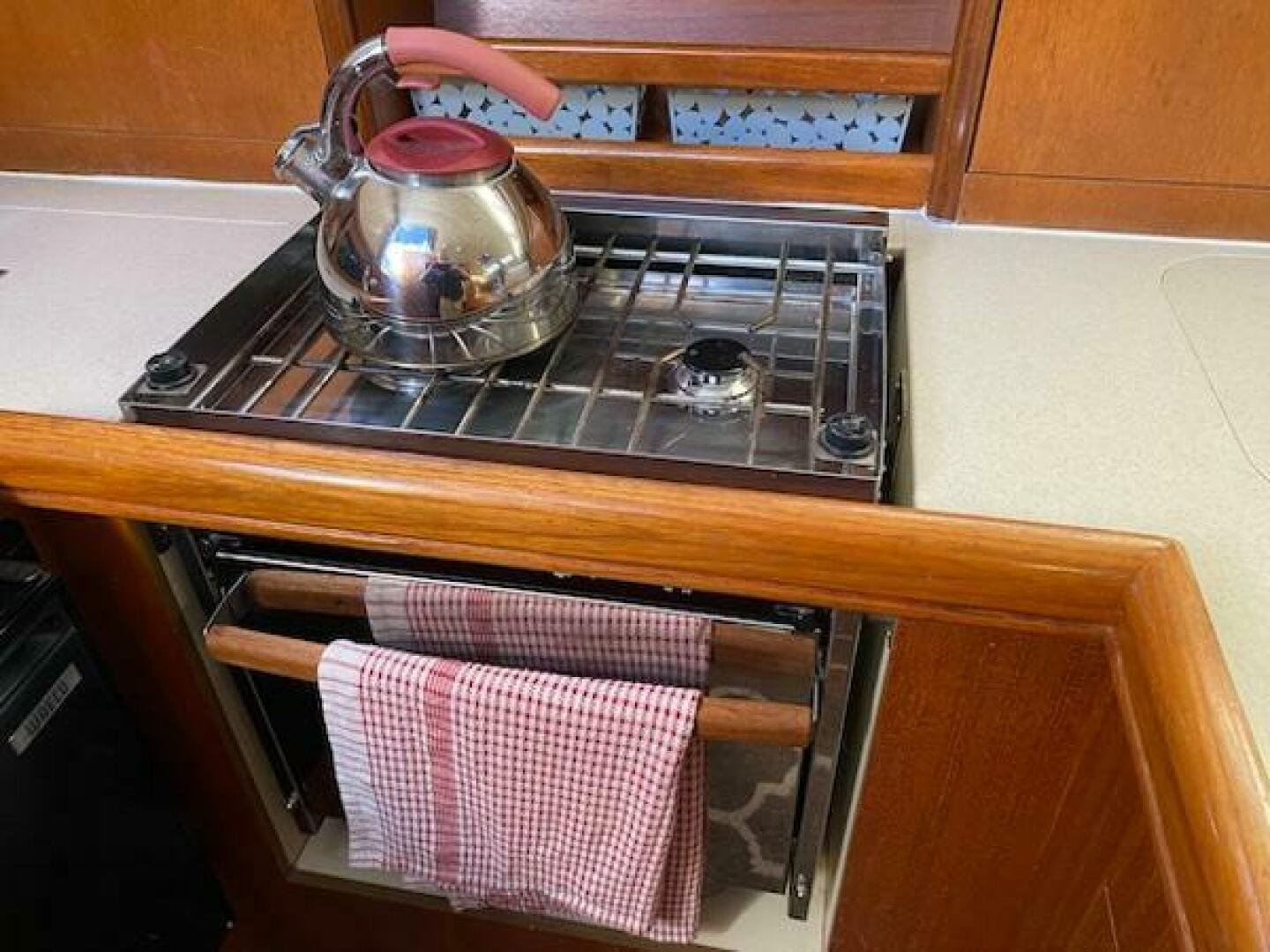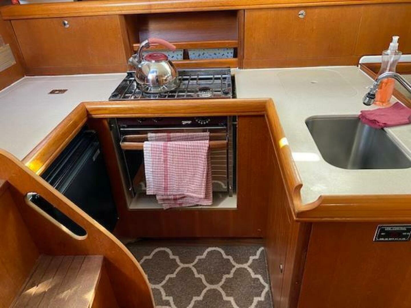 Prepare delicious meals on the gimbaled stove /oven and take advantage of a new windlass for smooth anchoring. The upgraded dinghy and outboard engine make exploring nearby coves and beaches a breeze, while the davits provide storage and easy access.