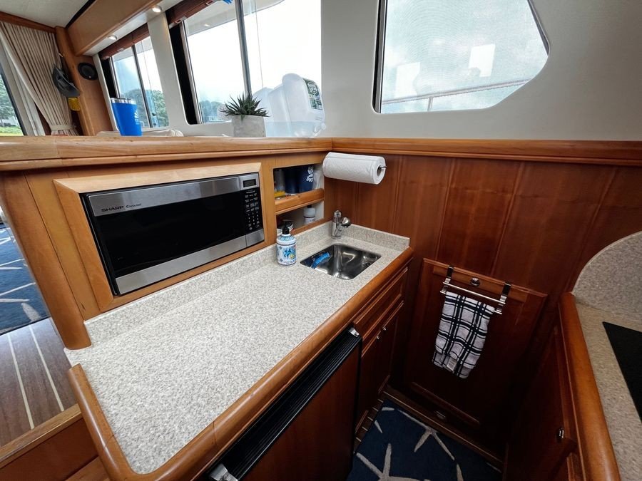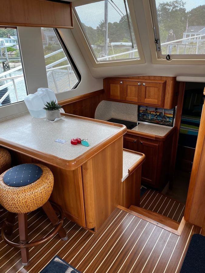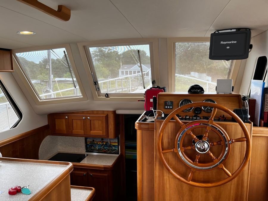 The 2006 Mainship 340 Trawler delivers classic Downeast style with efficient single-diesel performance. Wide side decks, spacious flybridge, bright salon, and private stateroom make her ideal for the Great Loop, coastal cruising, or comfortable weekend escapes.