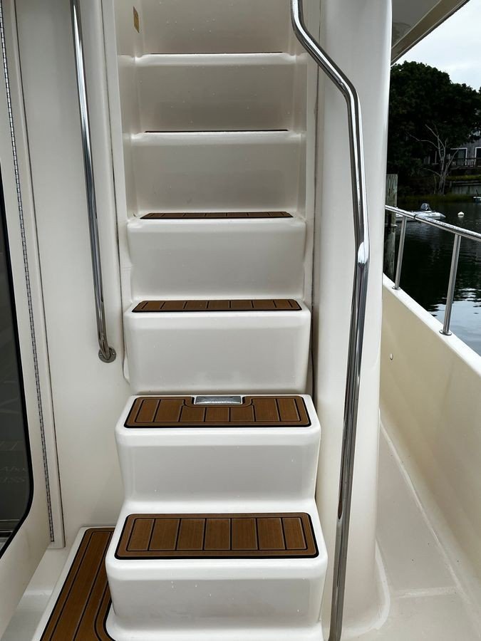 Aft Deck: Covered for protection, with molded steps for safe, easy access to the flybridge.