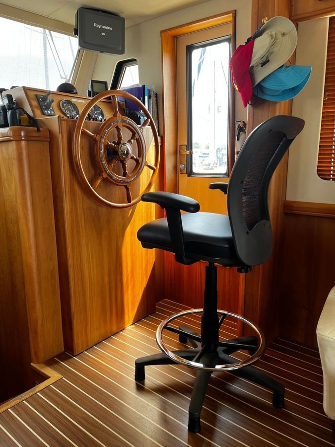 Lower Helm Station: Full instrumentation and custom captains chair.