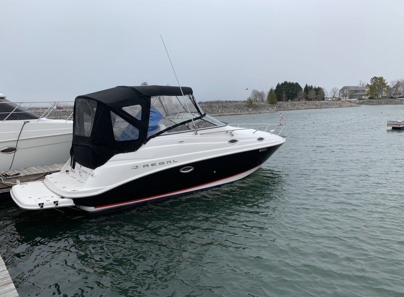 This 2006 Regal Commodore 2665 is the perfect affordable freshwater cruiser, ideal for weekend getaways on Georgian Bay and Lake Simcoe. Always freshwater kept and showing just 465 hours, she’s powered by a reliable Volvo Penta 5.7L GXi with Duo-Prop, offering smooth performance and easy handling. Regal’s smart design provides a spacious cockpit for entertaining and a comfortable cabin with overnight accommodations for 4 adults, making this an excellent option for first-time cruisers or anyone looking for a manageable, turn-key express cruiser.