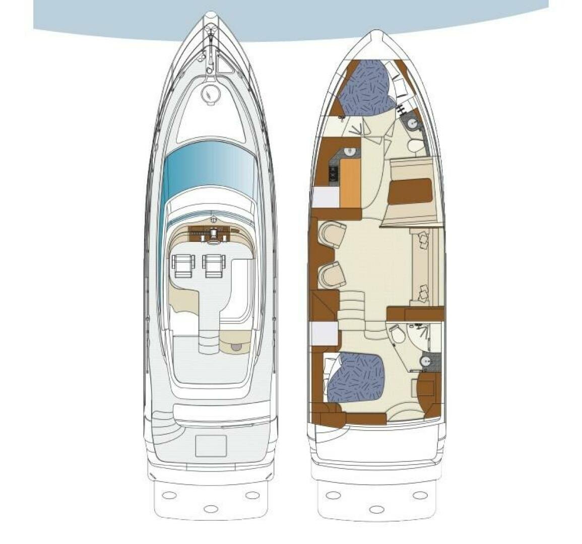 The Carver 43 Motor Yacht (called the Carver 47 Motor Yacht in 2008-2009) combines the spacious accommodations common to all late-model Carver Yachts with the added advantage of a large cockpit/platform for boarding, swimming, or relaxing. The most distinctive feature of the Carver 43 is her sleek styling with elongated salon windows that blend gracefully into the shape of the hull. With nearly seven feet of headroom, the full-beam interior seems enormous for a boat this size. Bathed in natural lighting and finished with high-gloss cherry accents, the galley-down floorplan features a well-appointed main salon with an Ultraleather settee, two-barrel chairs, a large sofa, and an entertainment center. The galley has all the essentials, including hardwood flooring, Corian counters, and tons of storage. Aft, the Carver’s full-beam master stateroom has a walkaround queen berth, cockpit access door, and private head/shower, while the forward stateroom has a double berth and private access to the day head + separate shower. Wing doors, molded aft deck stairs, transom door, and bow/stern thrusters make this yacht a dream to handle at the dock.