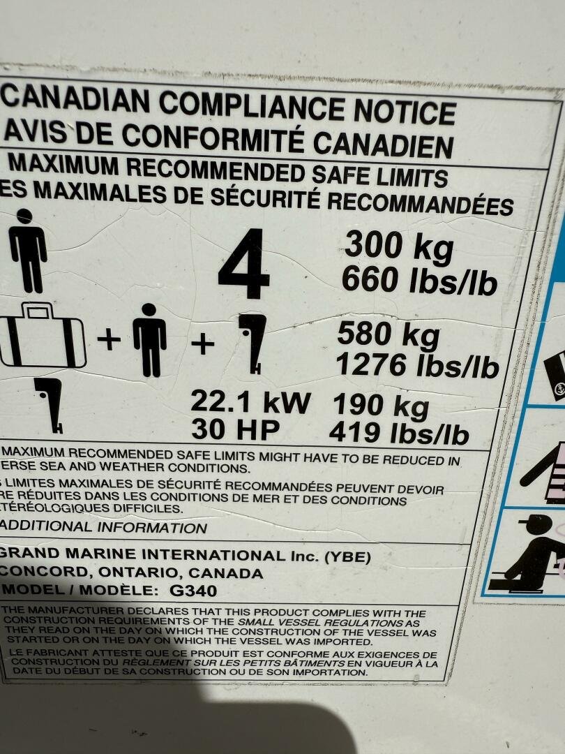 · 2014 Grand G340EF tender w/30hp Tohatsu – Raymarine chartplotter/fishfiner (oil/filter/impeller change (2025)