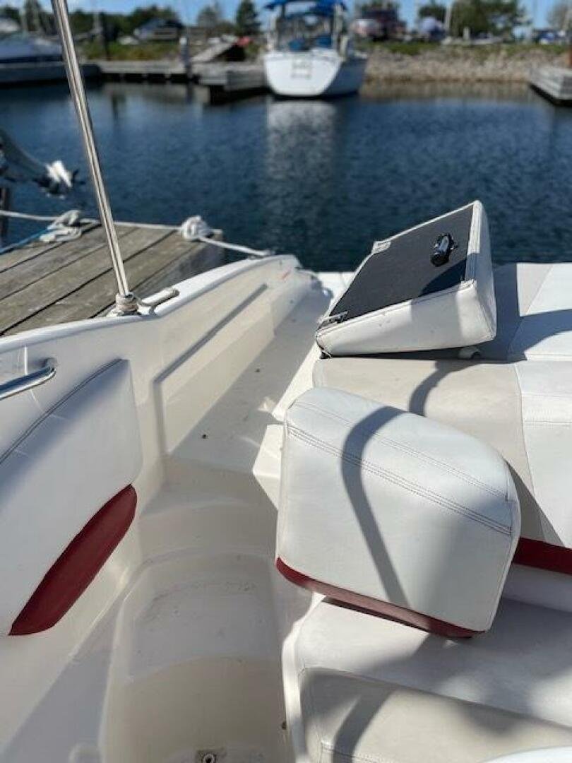 - Bimini Top: Burgundy Bimini top provides ample shade and comfort.