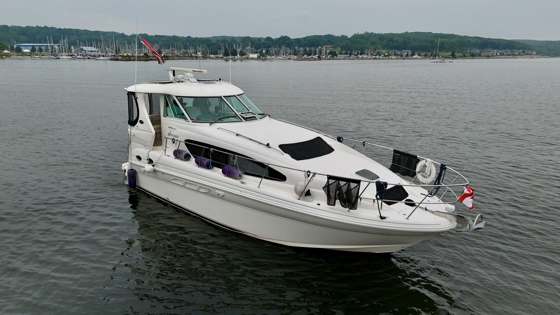 A fresh listing for August 2025, a clean turn-key example of a Sea Ray 40 MY with all the right options and upgrades. This boat is ready to loop, cruise, or serve as a floating cottage. You will not find a better example on the market today. The hydraulic platform, bow/stern thrusters, spacious salon, and full-beam master make this vessel an excellent choice.