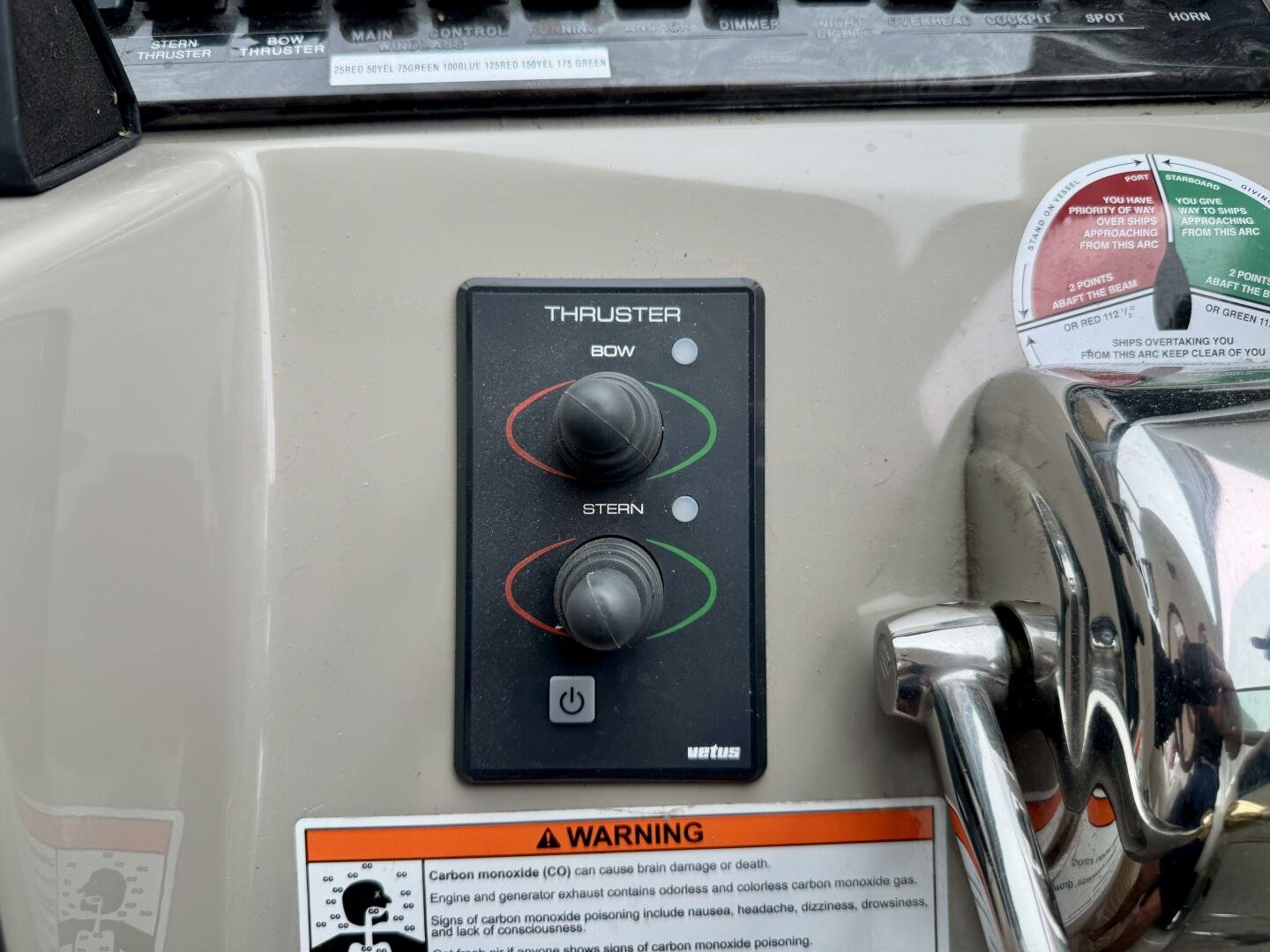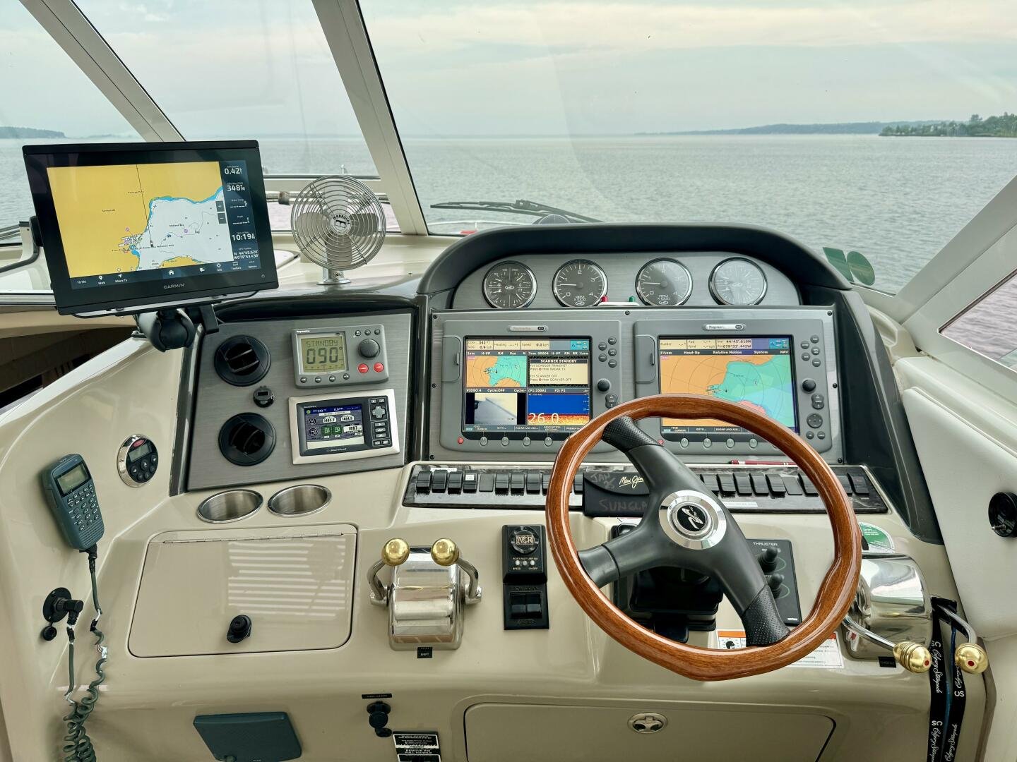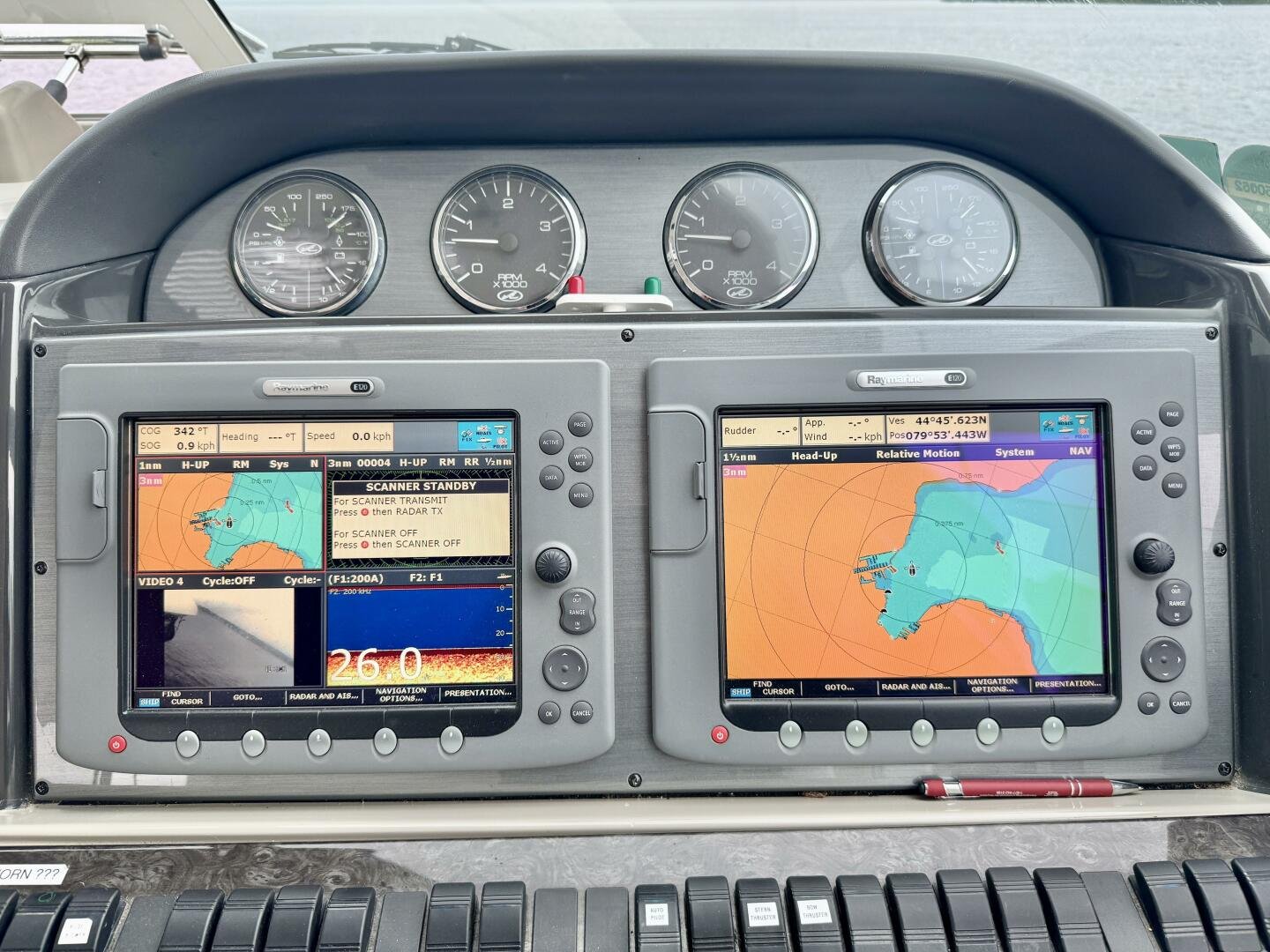 Engine sync, depth sounder, wind/speed indicator, compass