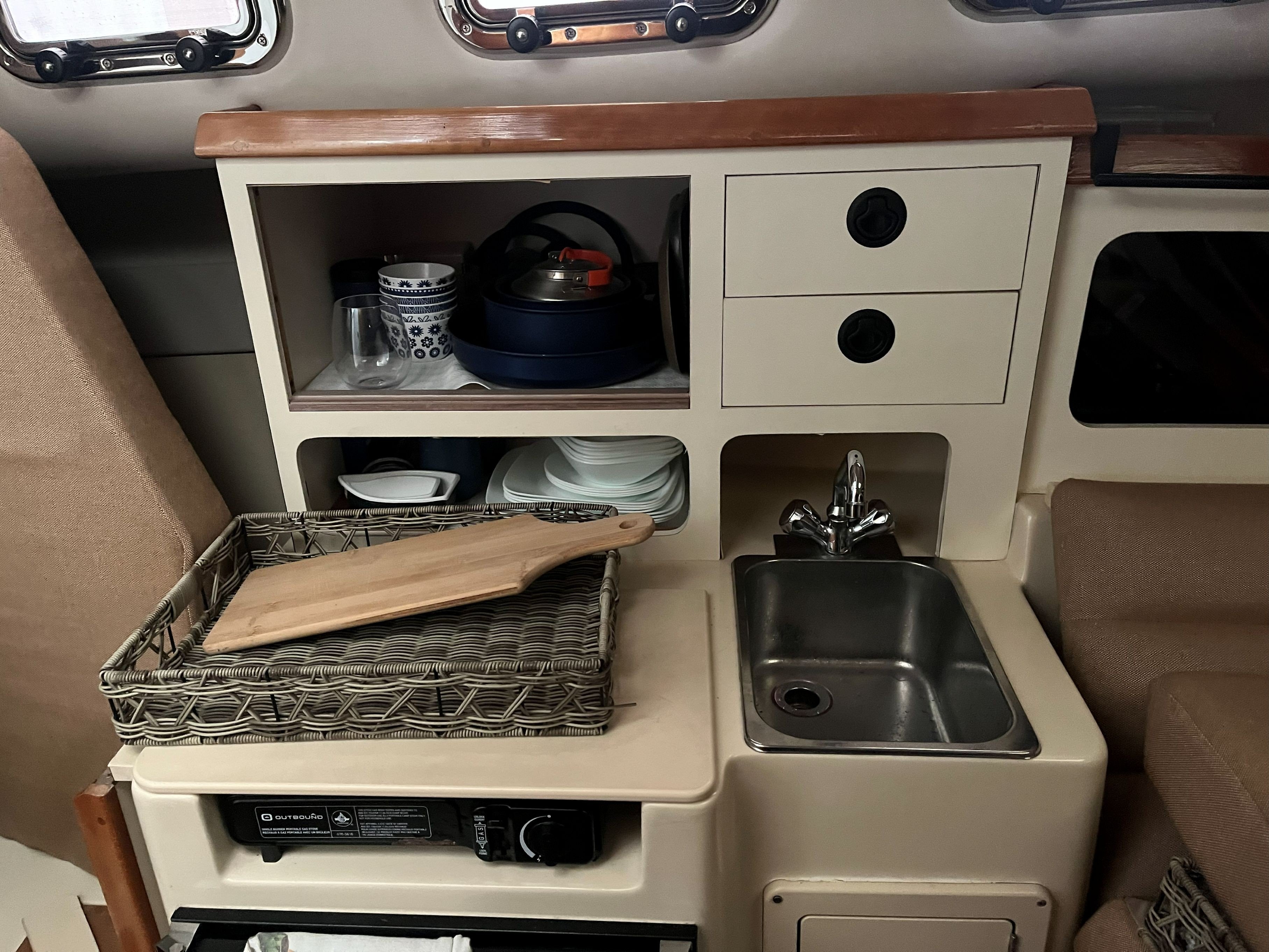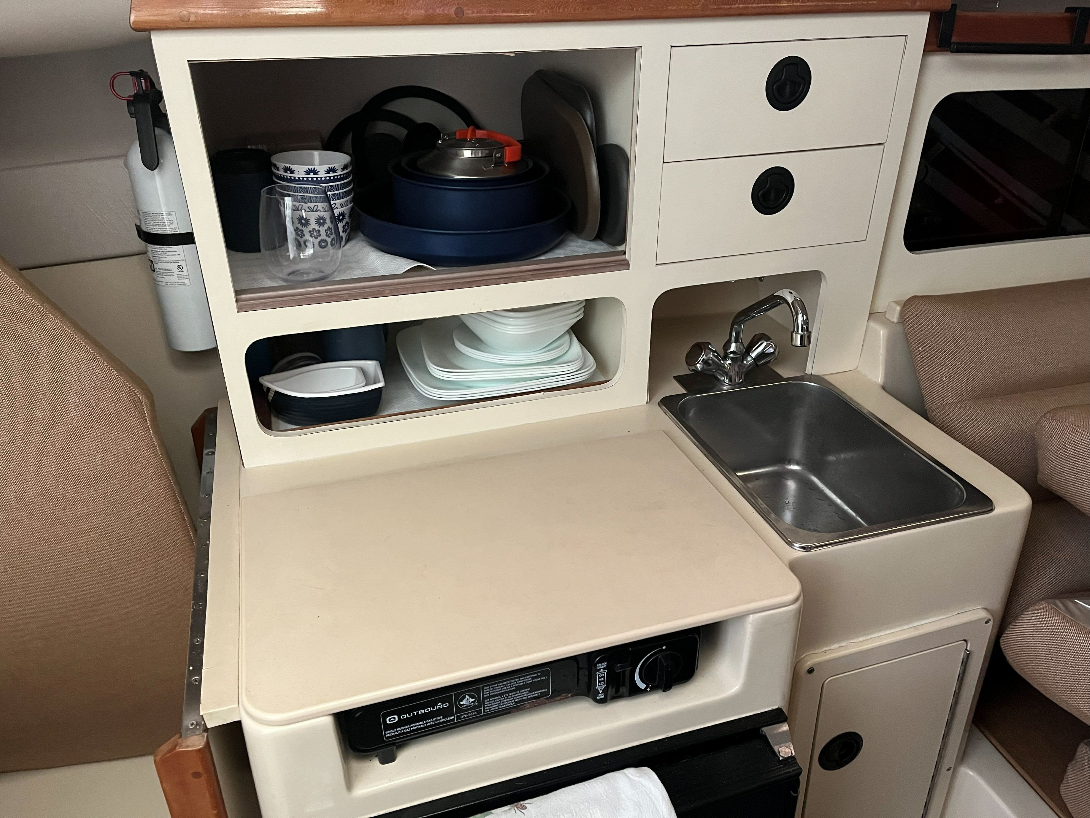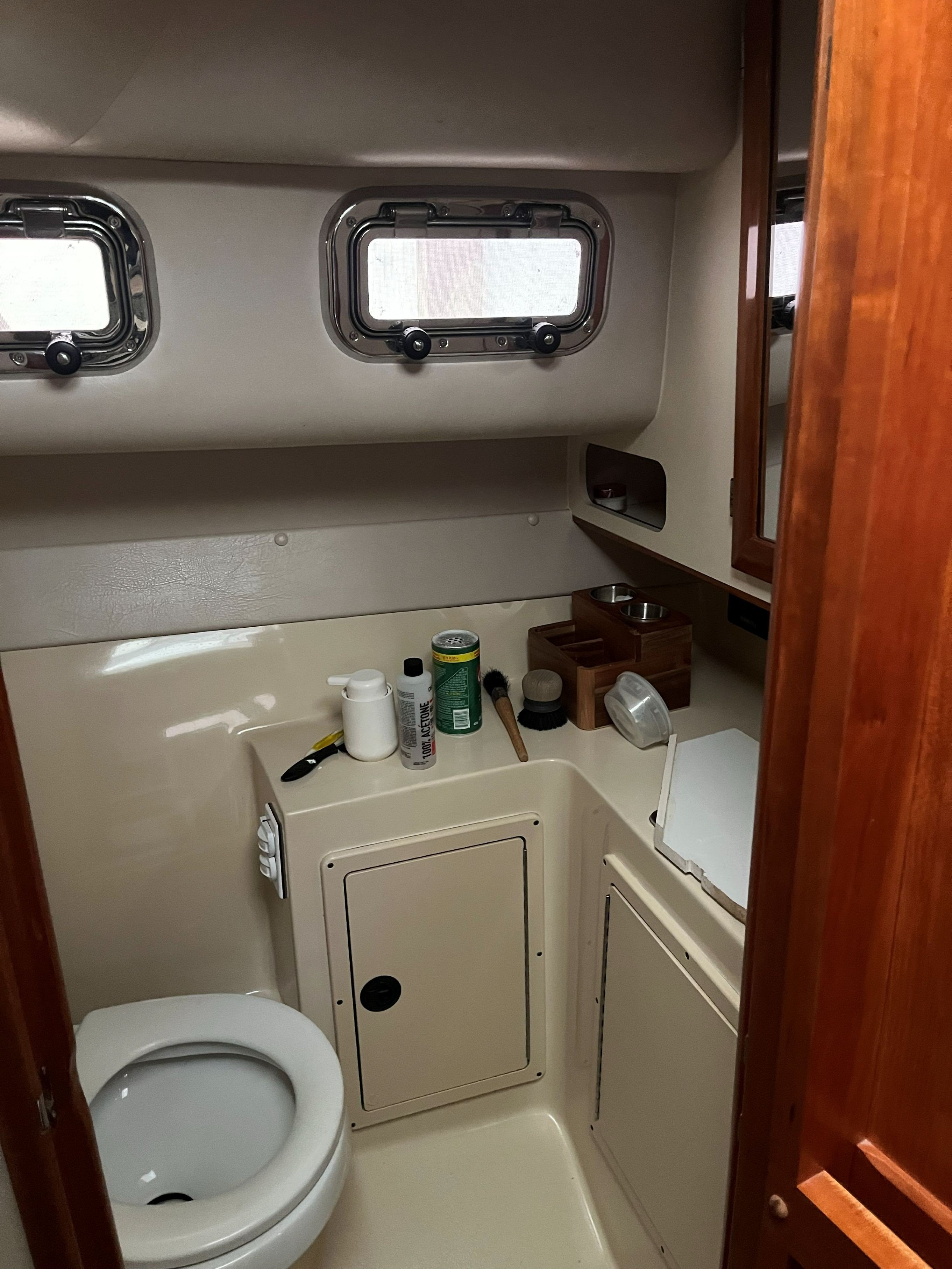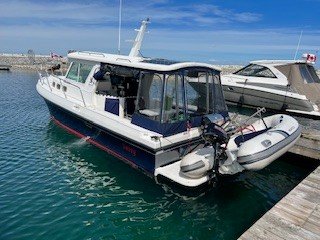 Hydraulic trim tabs, dockside water, cockpit shower, deck washdown, complete cockpit enclosure, winter cover & frame, Magma BBQ, Lewmar windlass (2020), bow thruster, fridge, freezer updated in 2015, microwave oven, butane countertop stove, hot & cold pressure water, all LED lighting, Vacu-flush toilet. Rockna anchor, chain & rode.