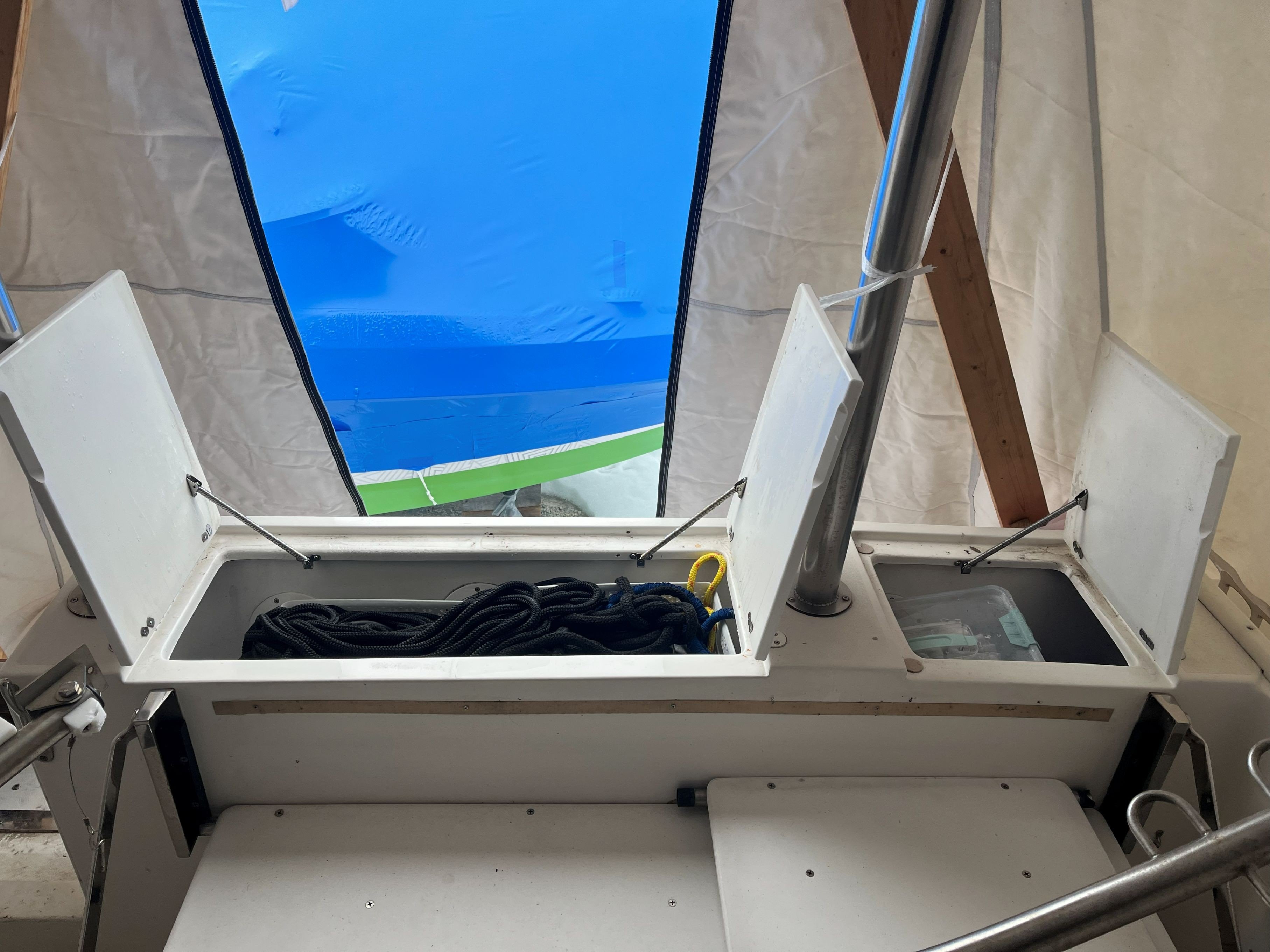 Extended hardtop with full screened & windowed enclosure. Upgraded swim platform with dinghy caddy & swim ladder. Transom door. Co-pilot seat. Lewmar Pro 1000 windlass. Transom shower. Deck washdown. Extended bow railing.