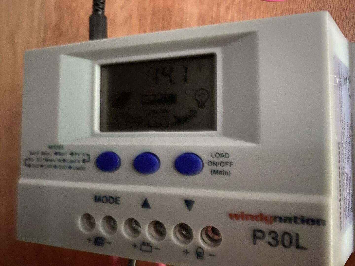 • Solar Panels (on arch): 100 watt high efficiency (Polycrystalline Silicon) x 4 panels, model SOK-400WP-P30L, Windy Nation [258.06 x 7.72 x 170.33 cm; 32.2 kg], charge controller, Windy Nation P30L LCD, 30A (CHC-LCD-30) (new 2020)