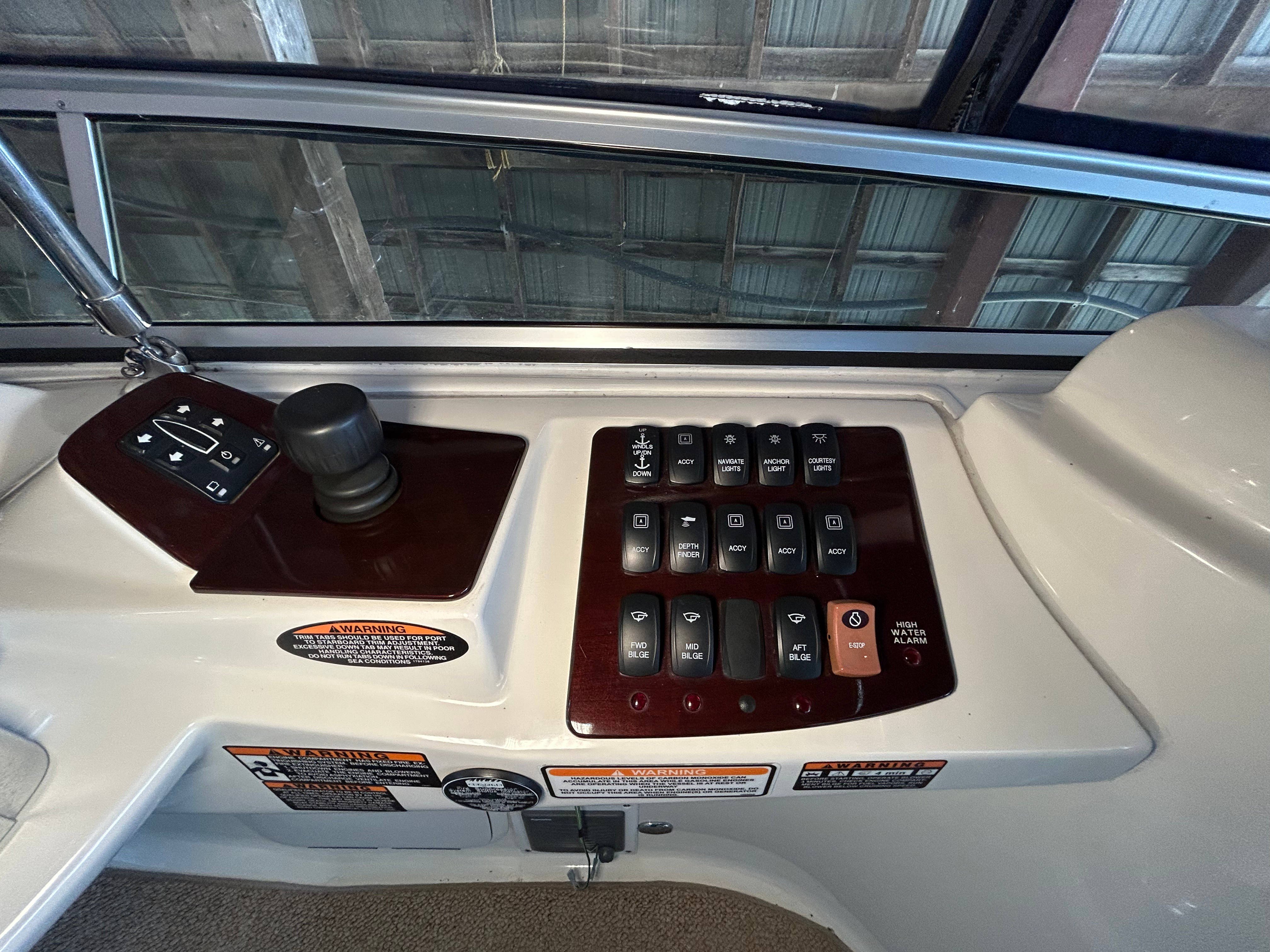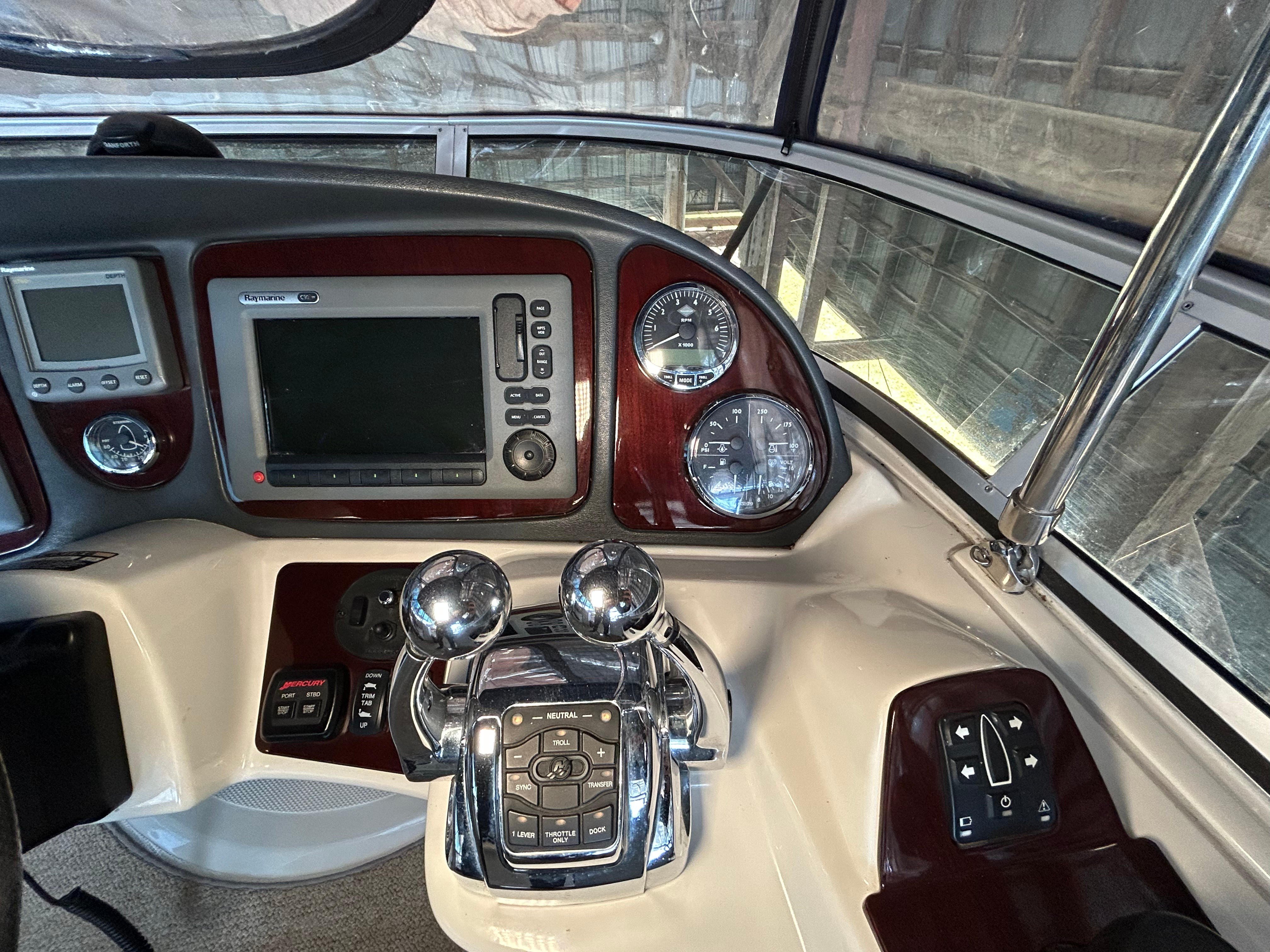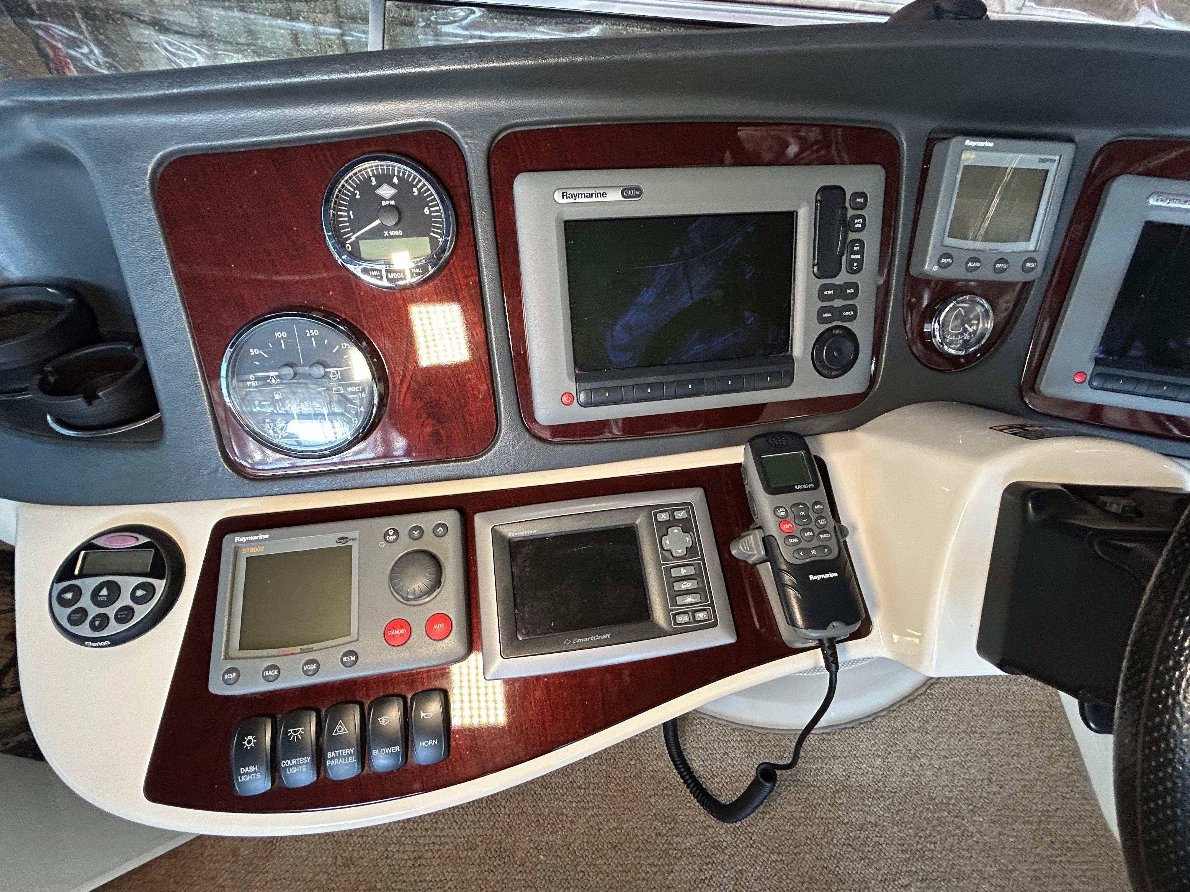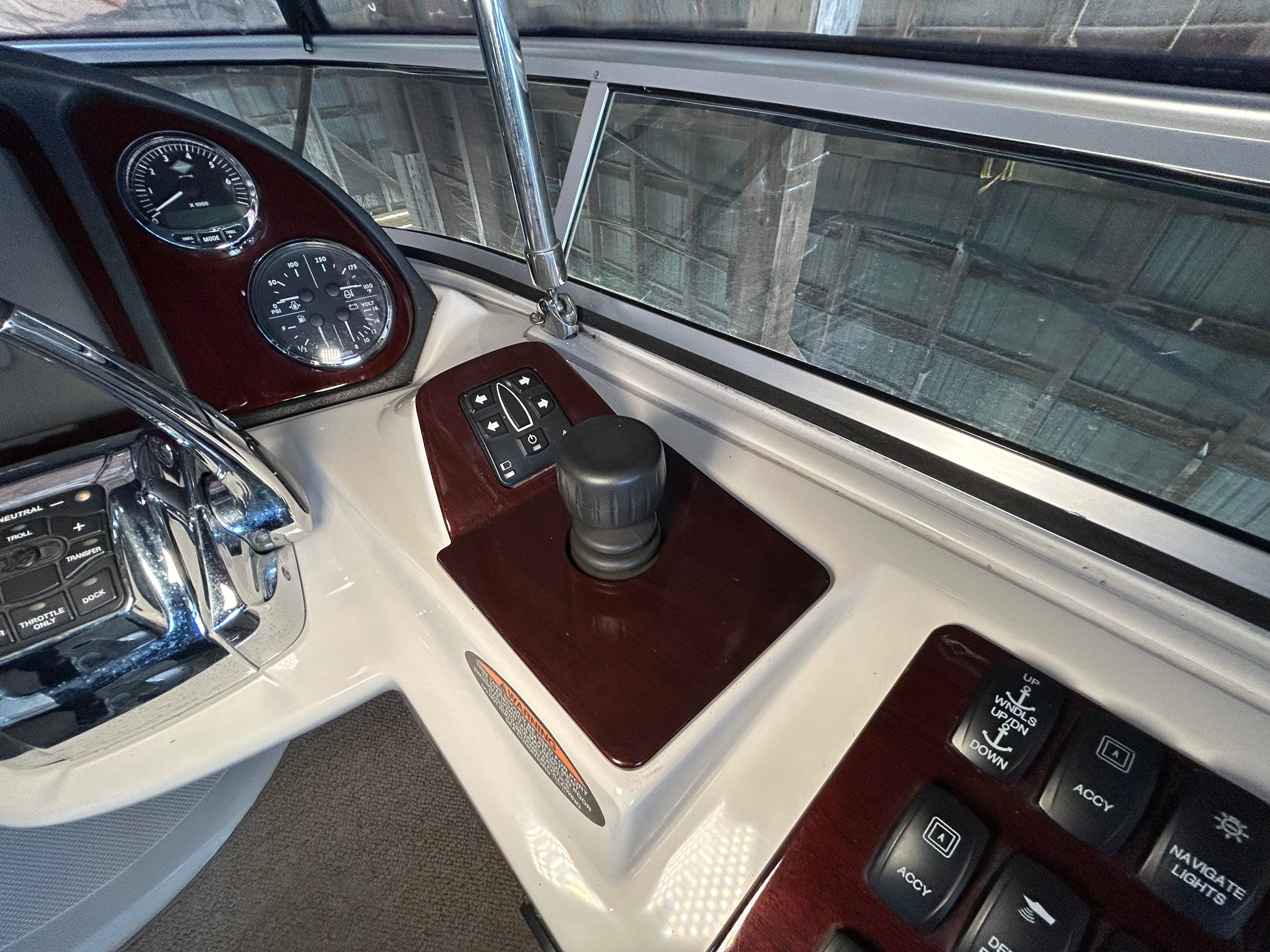 Powered by twin MerCruiser 8.2L High Output engines (420HP each), this boat delivers strong performance with comfortable cruising in the high teens and top speeds approaching 30 knots. Docking is made effortless with bow and stern thrusters paired with electronic joystick controls.