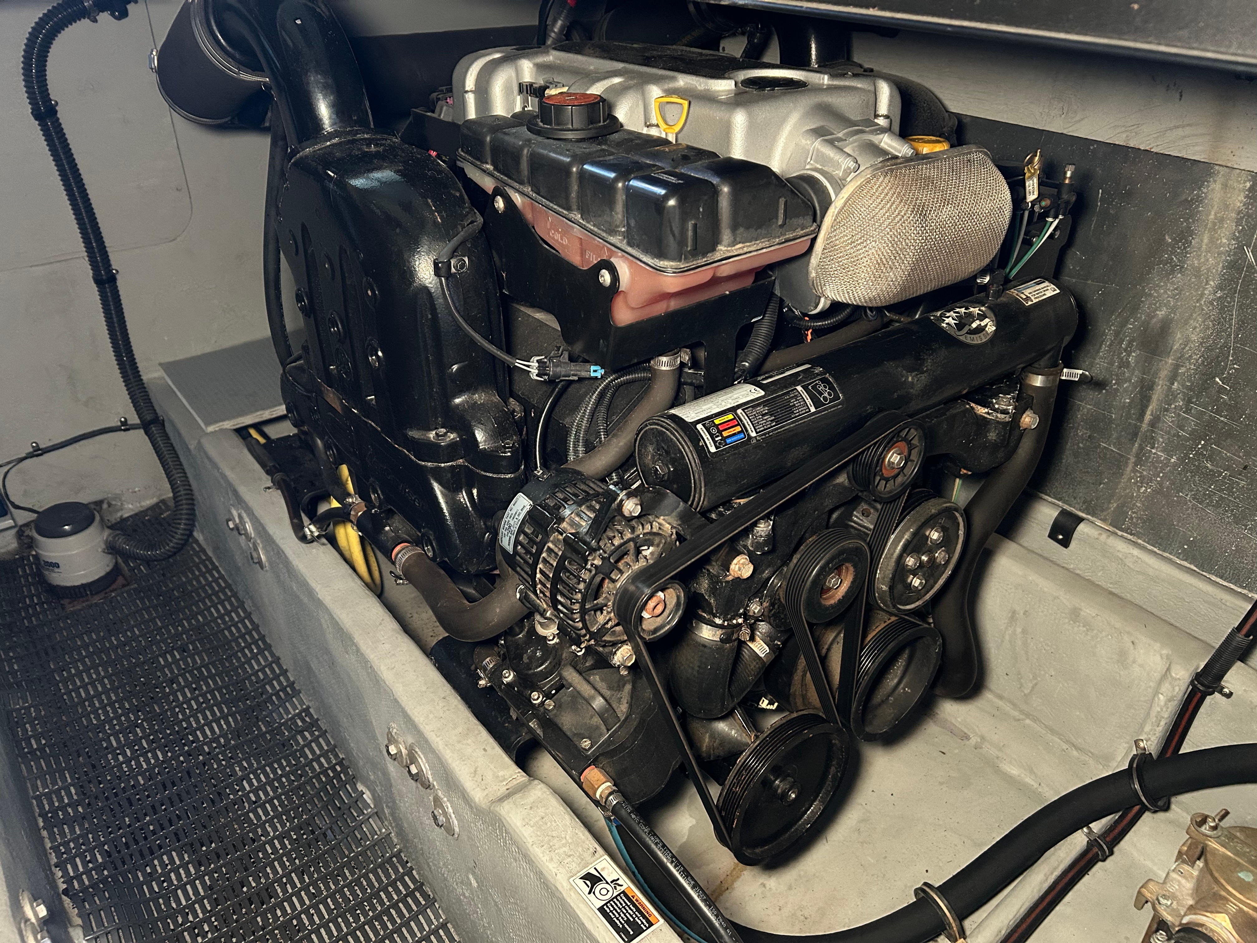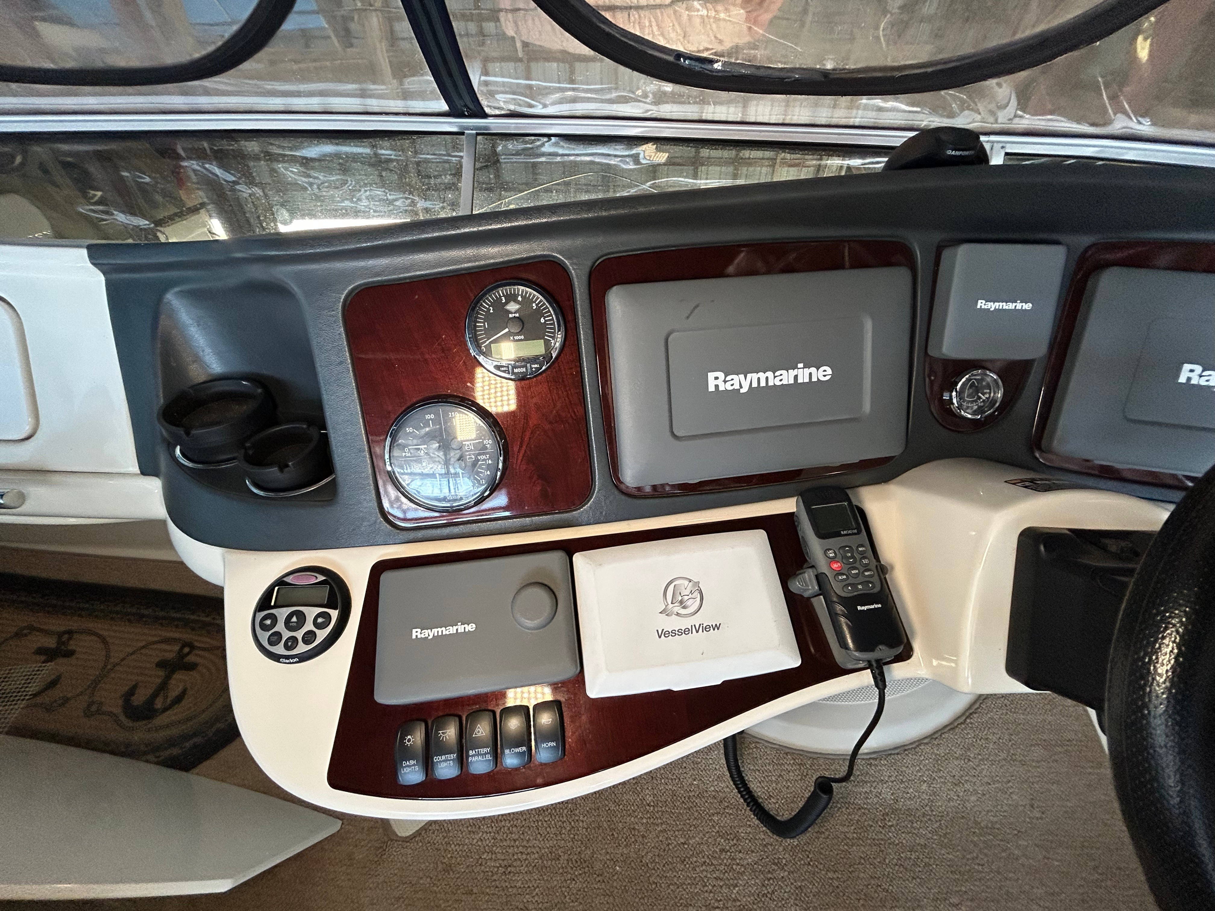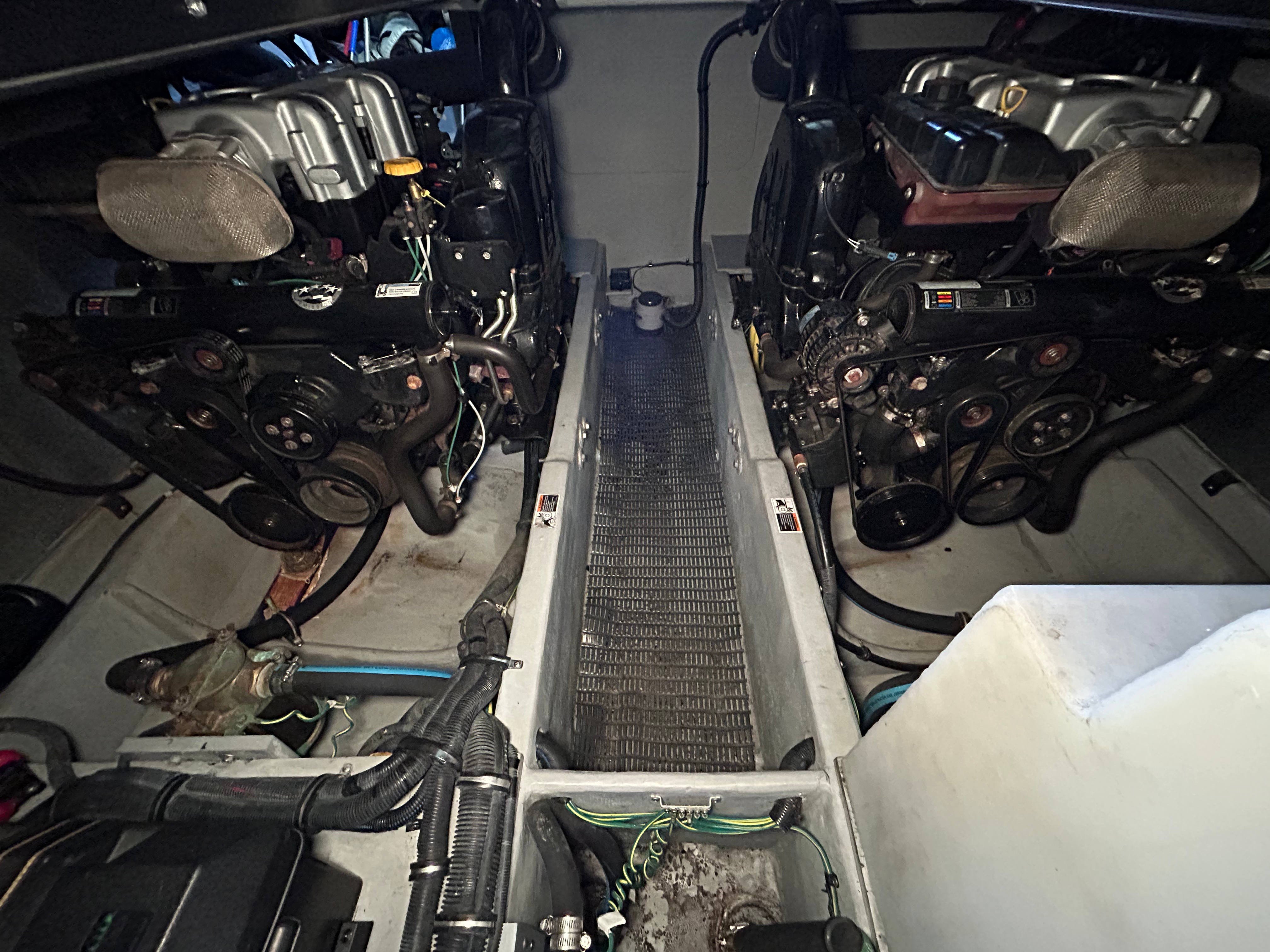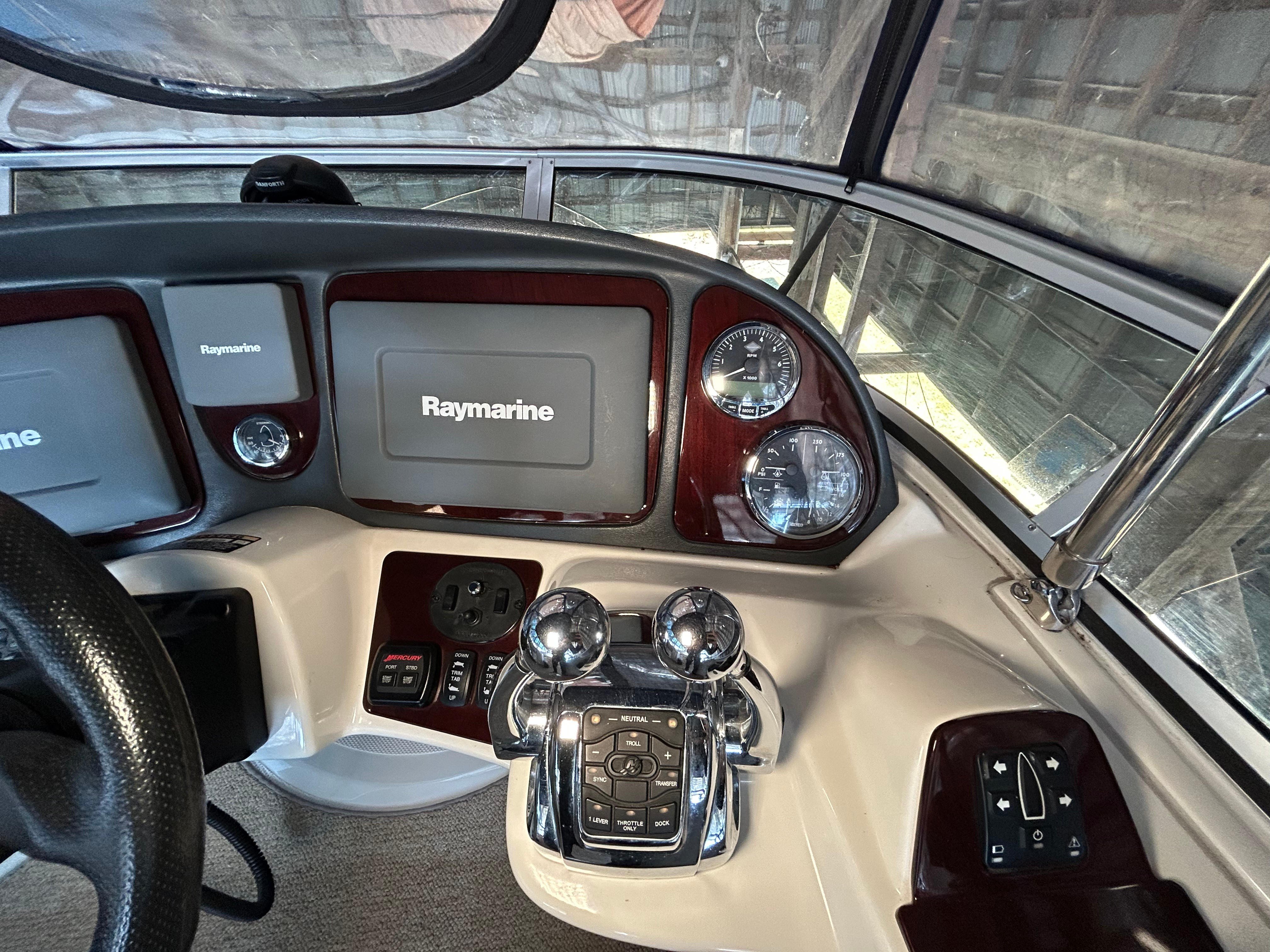 Powered by twin MerCruiser 8.2L High Output engines (420HP each), this boat delivers strong performance with comfortable cruising in the high teens and top speeds approaching 30 knots. Docking is made effortless with bow and stern thrusters paired with electronic joystick controls.