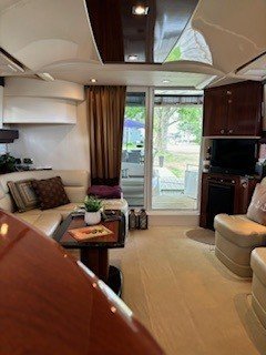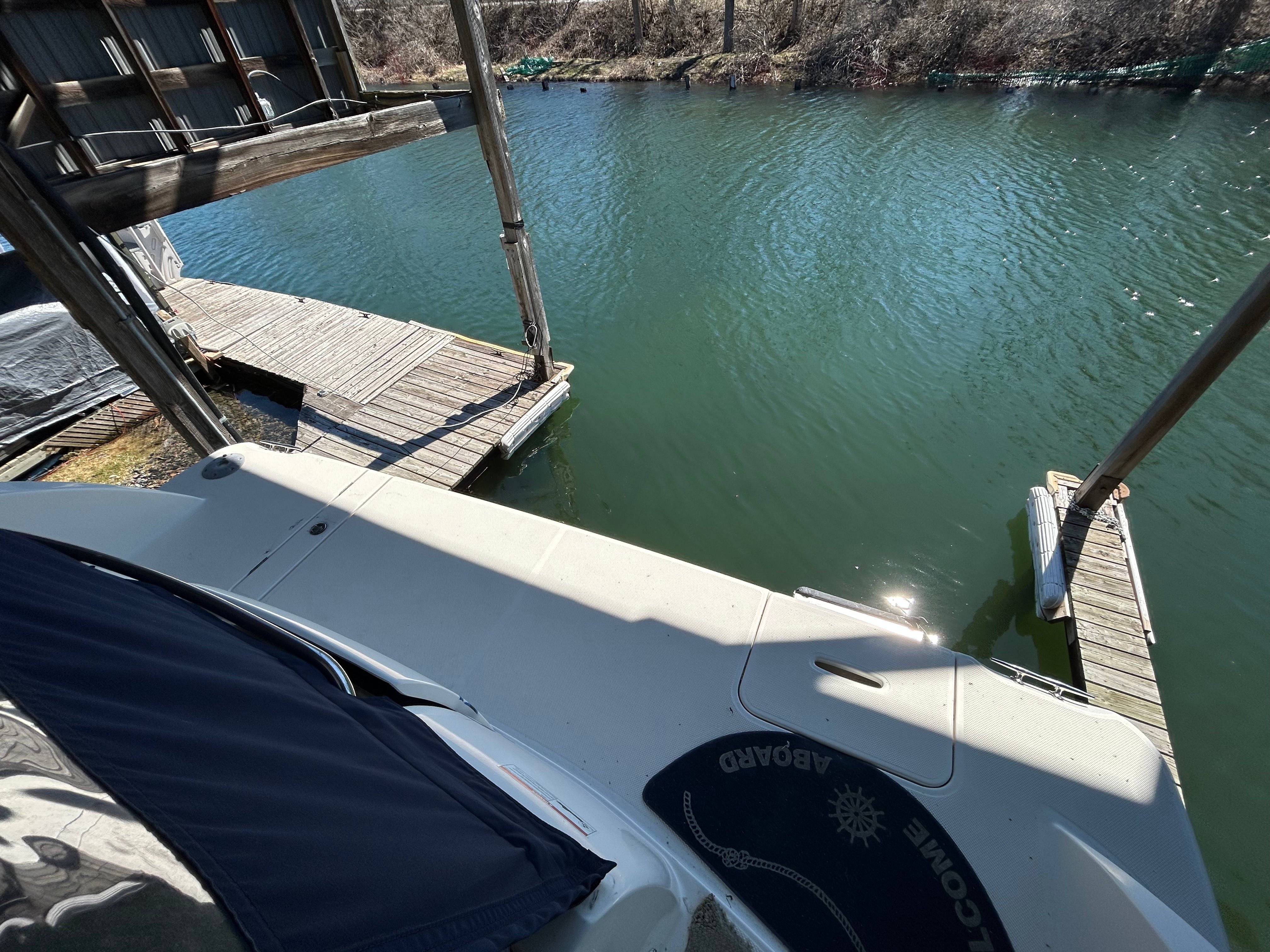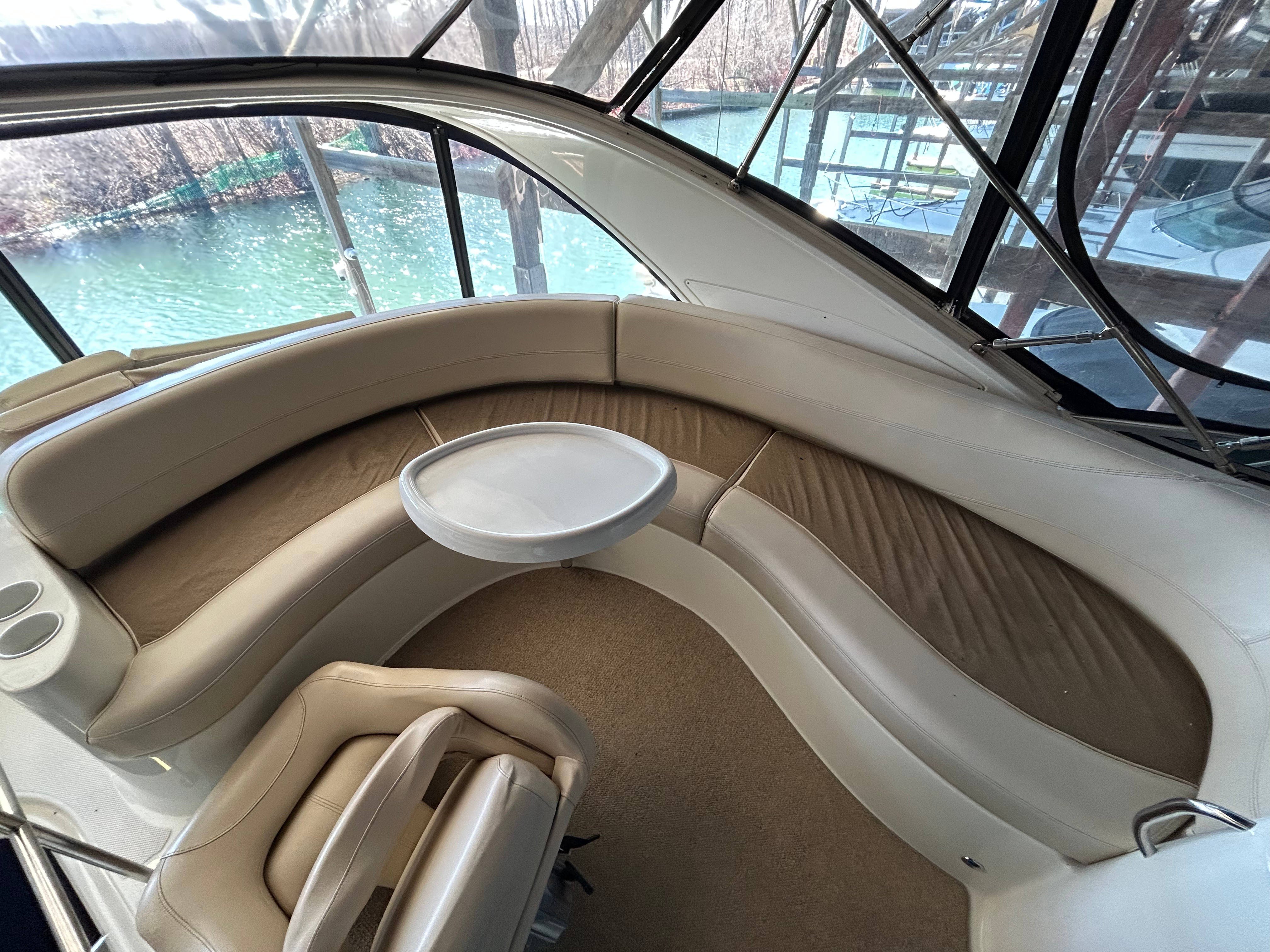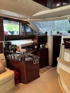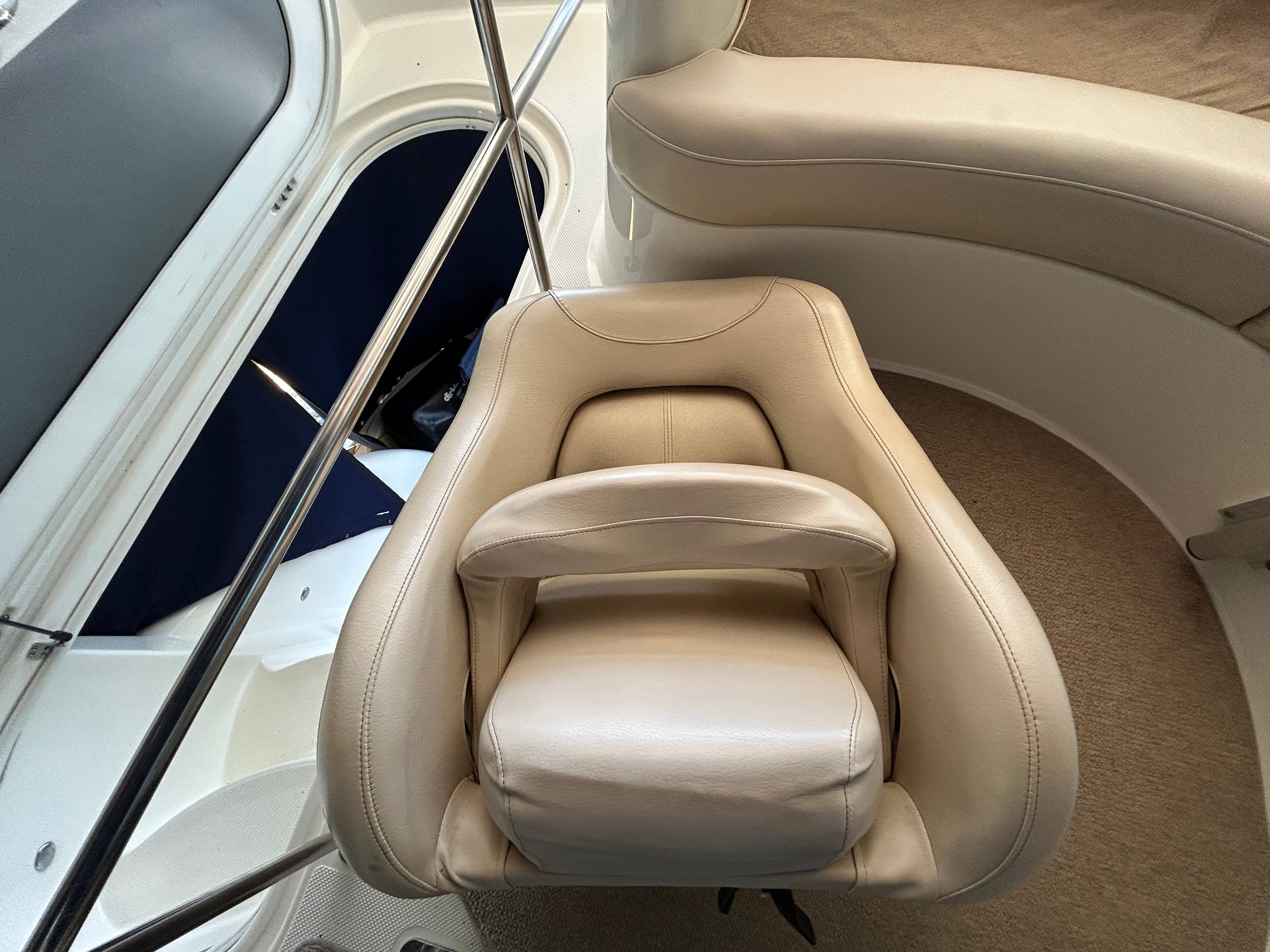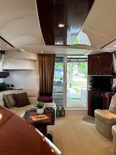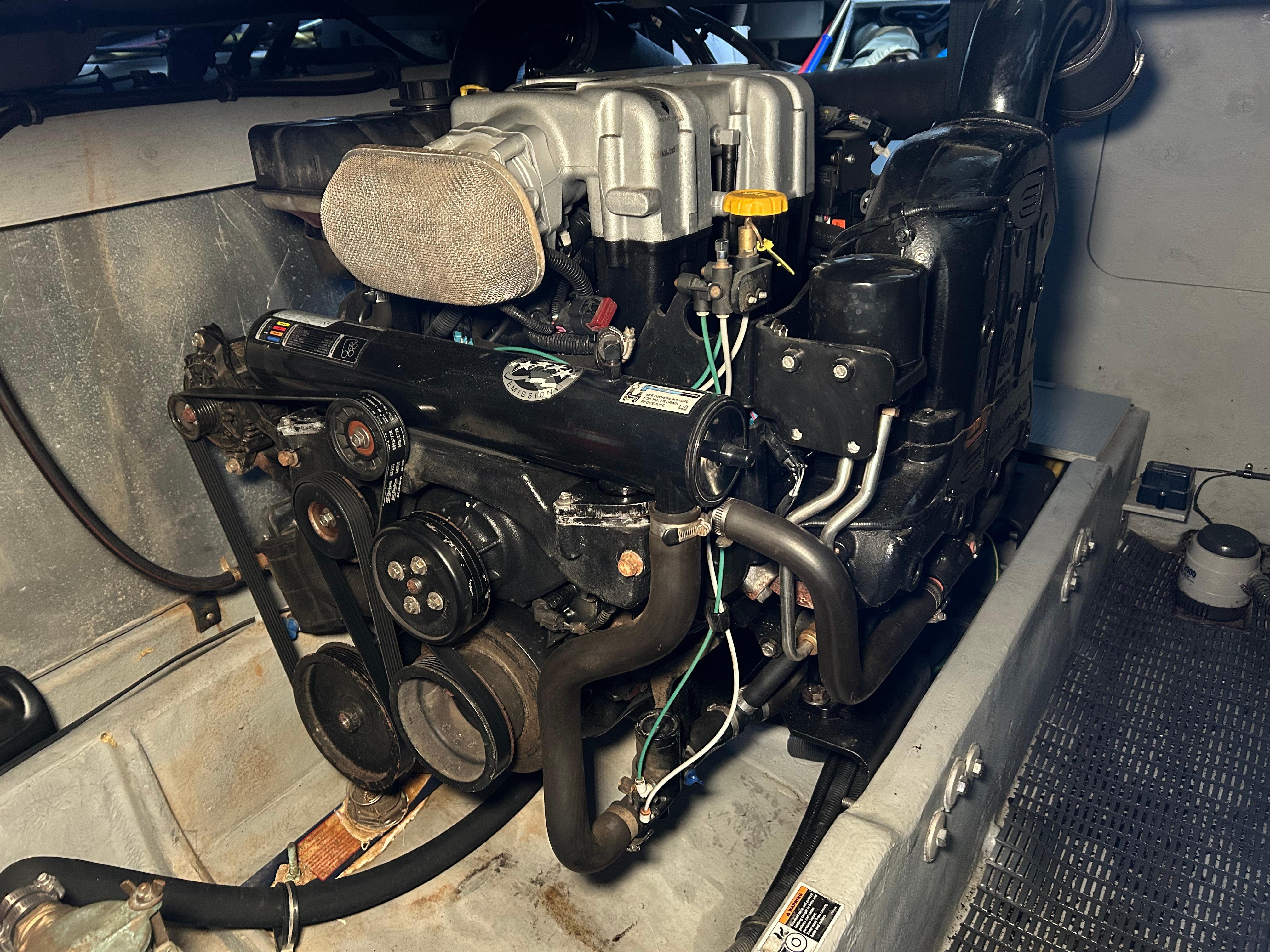 Powered by twin MerCruiser 8.2L High Output engines (420HP each), this boat delivers strong performance with comfortable cruising in the high teens and top speeds approaching 30 knots. Docking is made effortless with bow and stern thrusters paired with electronic joystick controls.