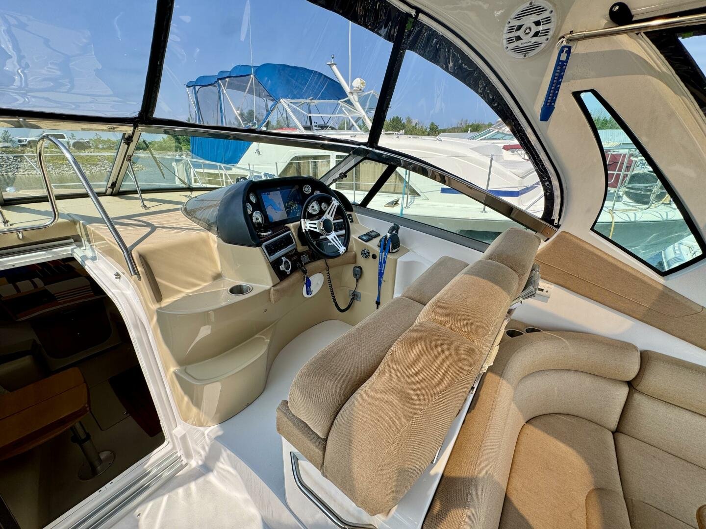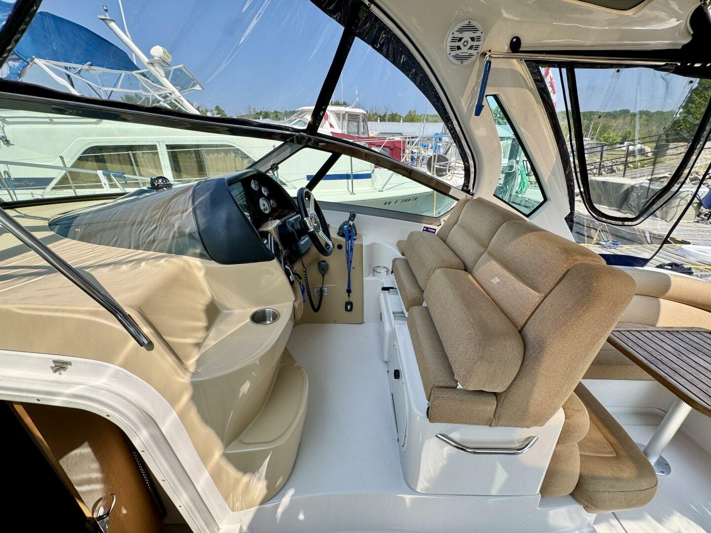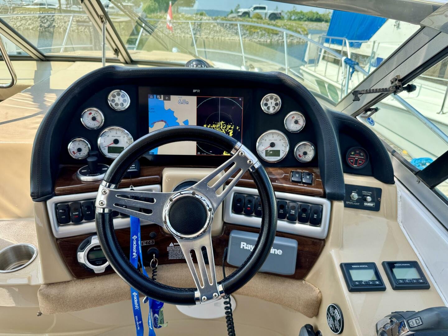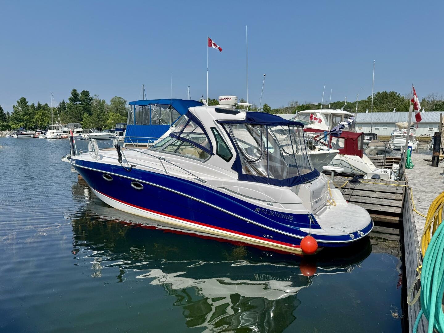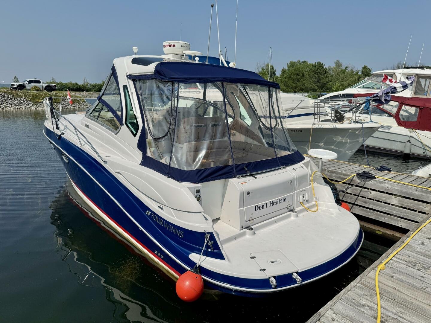 Step aboard this stylish and spacious 2011 Four Winns V355 – a luxury express cruiser that blends performance, comfort, and modern amenities. This vessel sports Twin Volvo Penta 5.7 (300hp) sterndrive engines, low hour (524hrs), and with the Electronic Vessel Control (EVC) you will have enhanced reliability and performance. Dock with ease thanks to both a Bow & Stern thruster controlled via joystick or lanyard remote. Packed with other features including an open cockpit layout, upgraded chartplotter with radar, hardtop, air conditioning, and a fully equipped galley make this the perfect boat for weekend adventures or extended cruising. Call today for a private viewing.