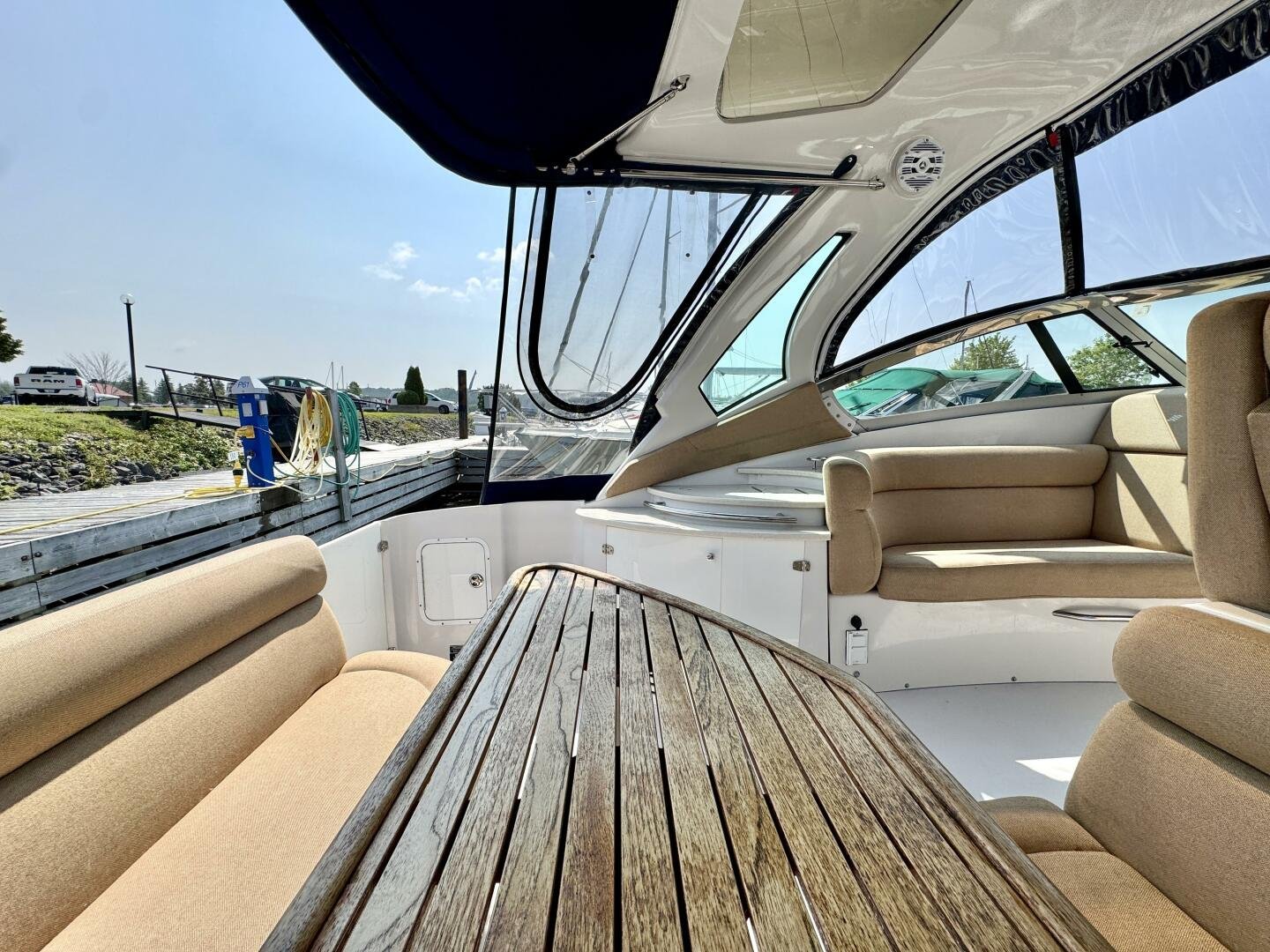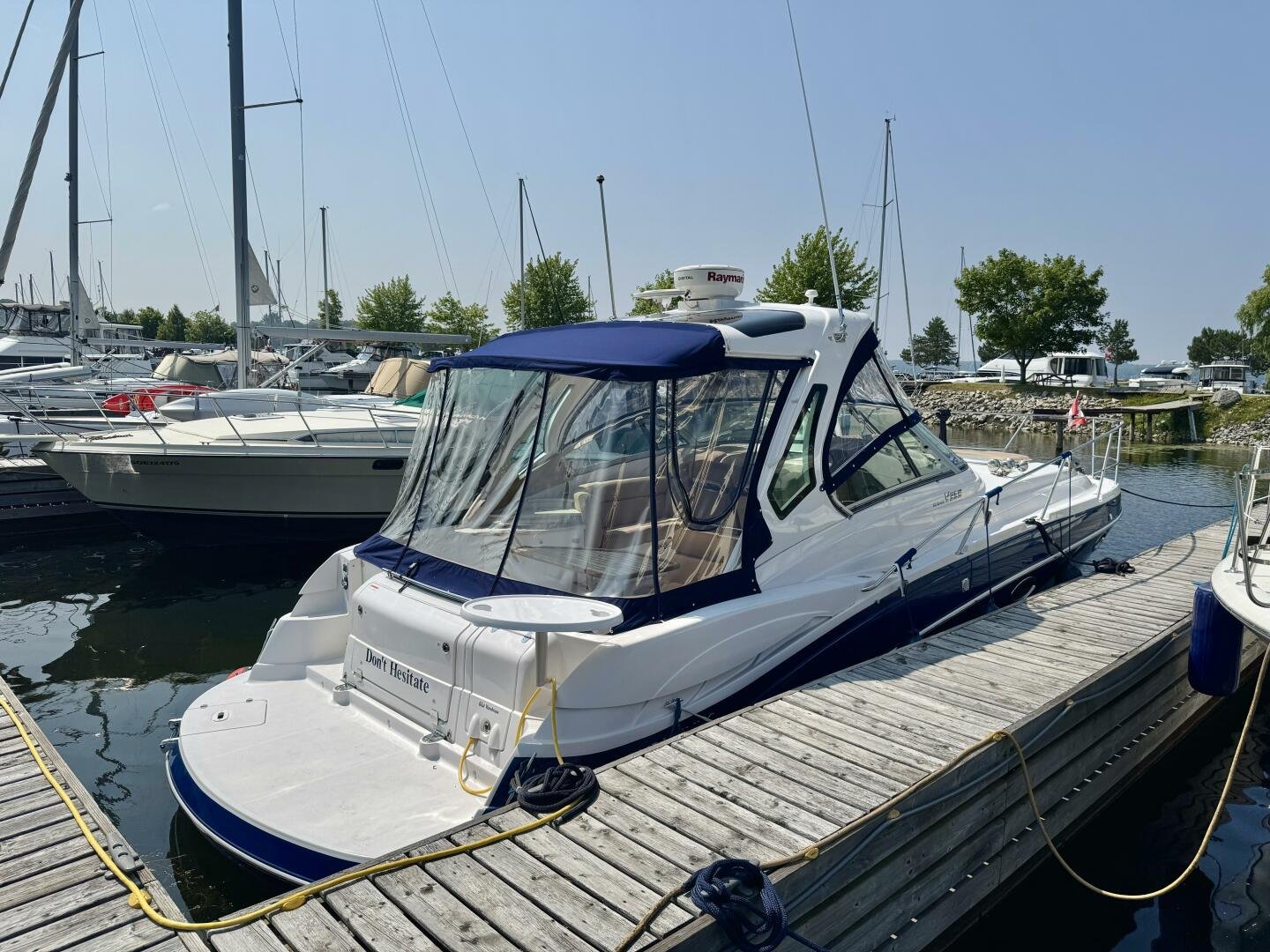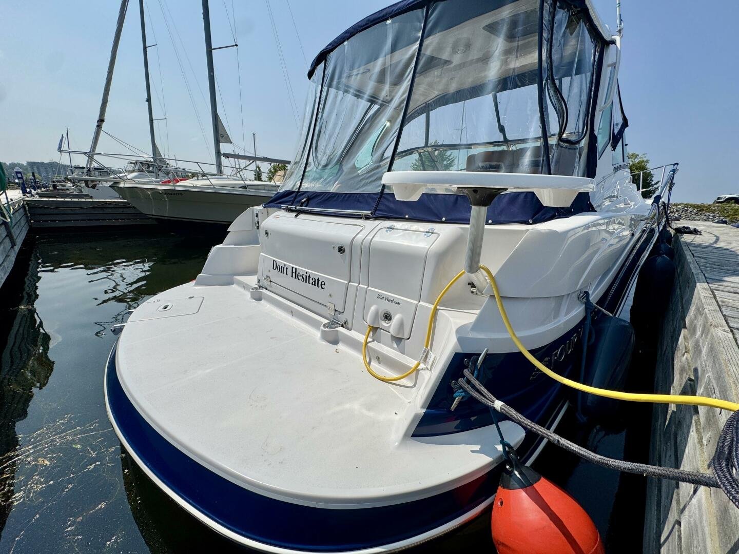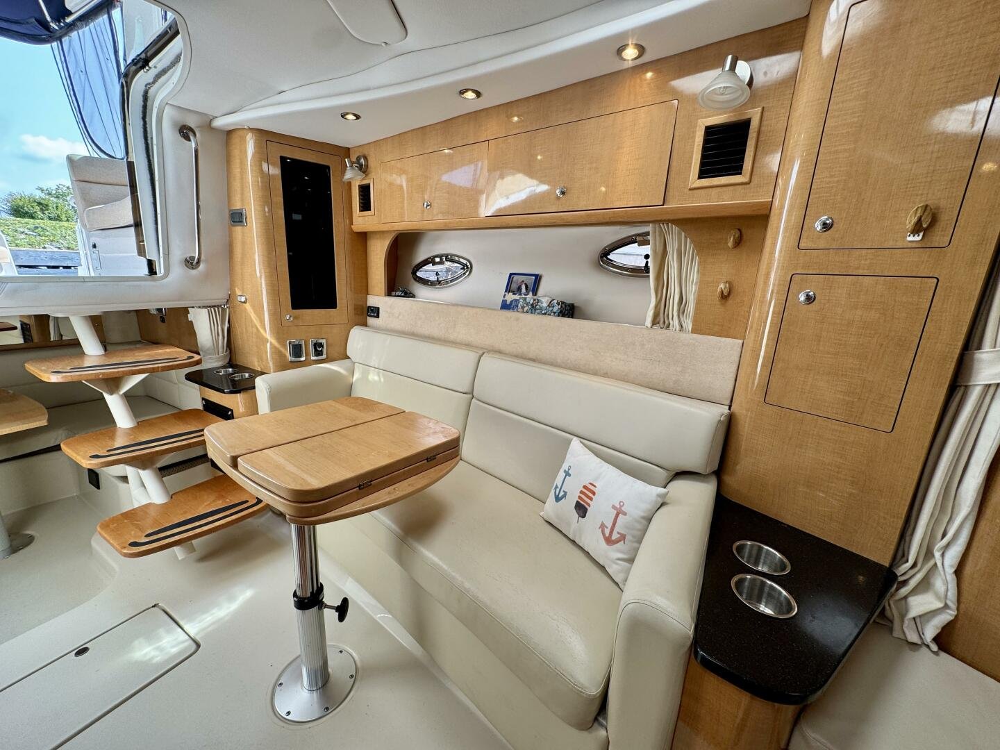 Step aboard this stylish and spacious 2011 Four Winns V355 – a luxury express cruiser that blends performance, comfort, and modern amenities. This vessel sports Twin Volvo Penta 5.7 (300hp) sterndrive engines, low hour (524hrs), and with the Electronic Vessel Control (EVC) you will have enhanced reliability and performance. Dock with ease thanks to both a Bow & Stern thruster controlled via joystick or lanyard remote. Packed with other features including an open cockpit layout, upgraded chartplotter with radar, hardtop, air conditioning, and a fully equipped galley make this the perfect boat for weekend adventures or extended cruising. Call today for a private viewing.