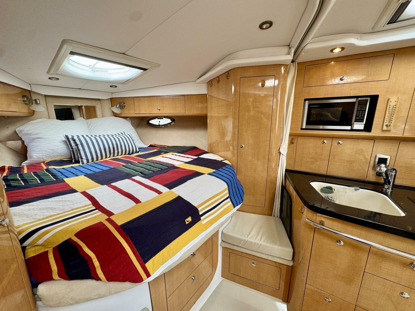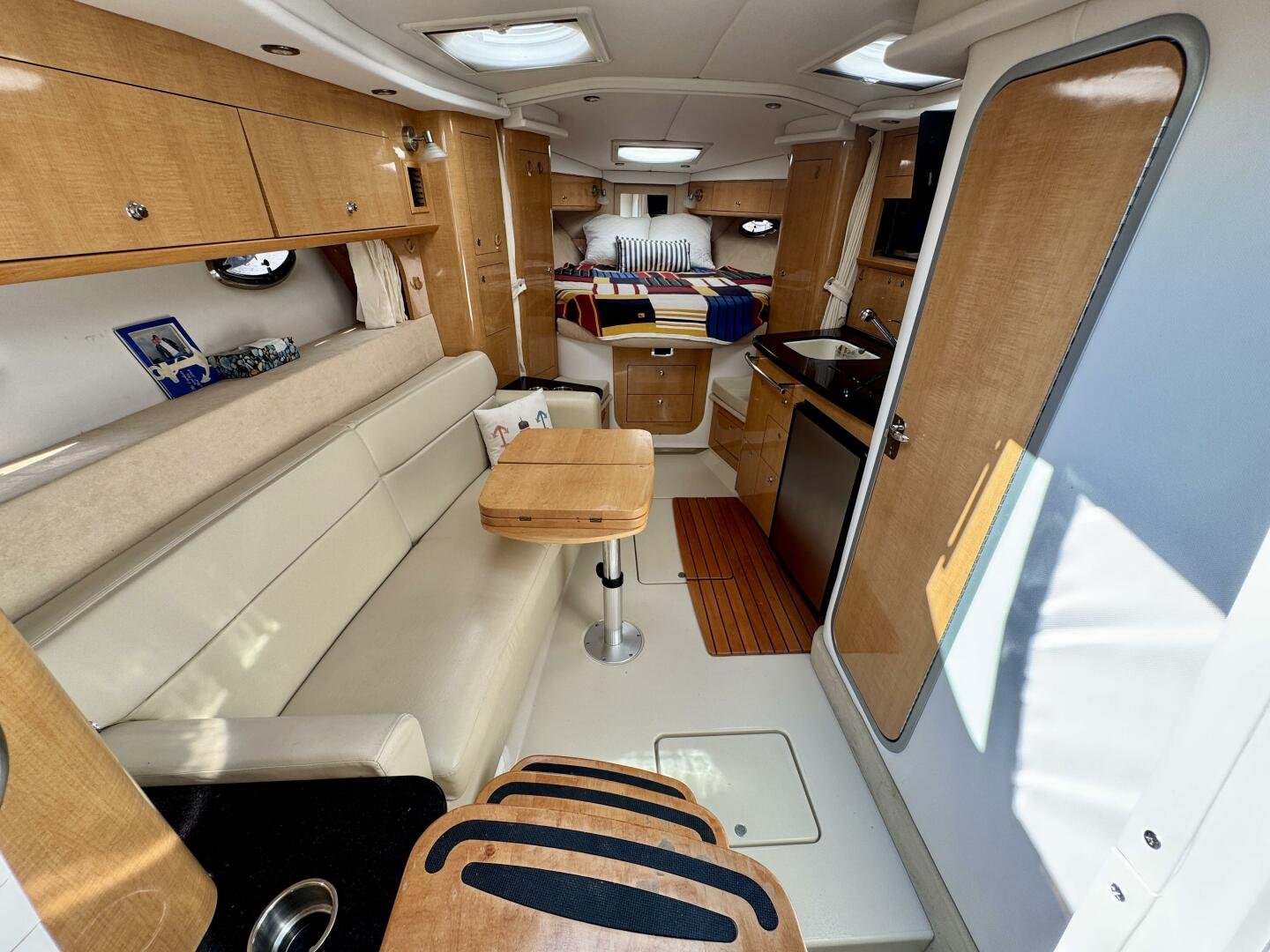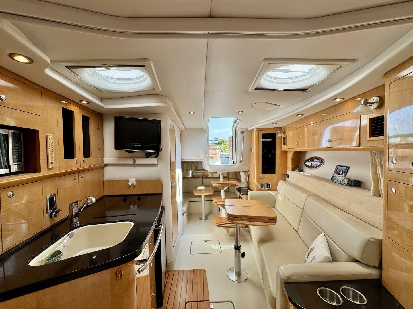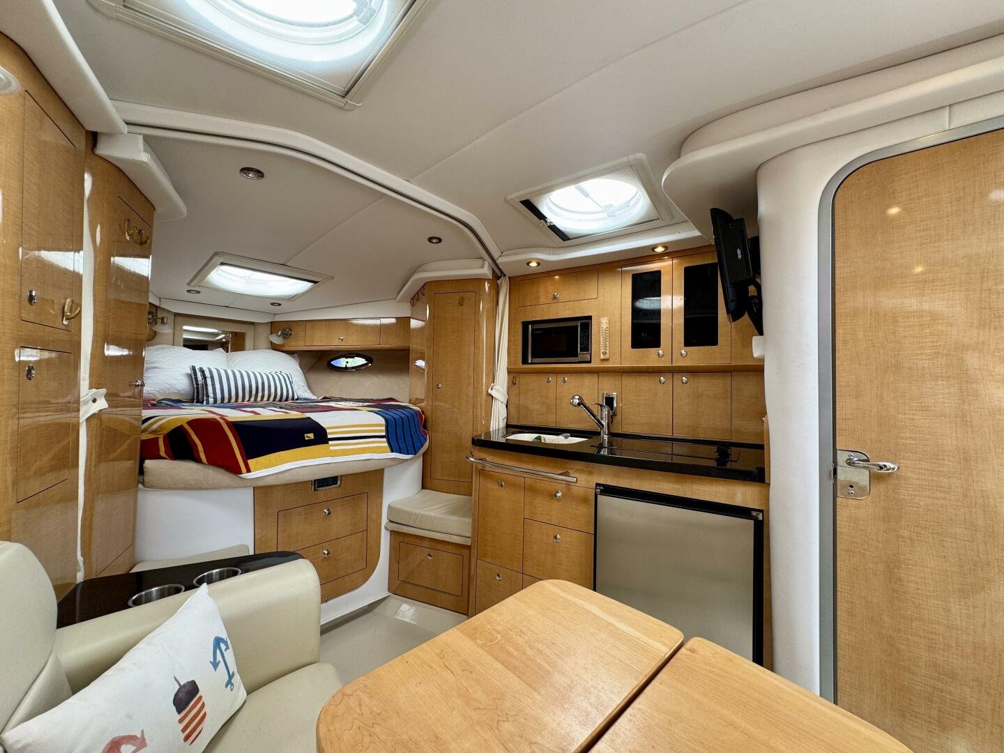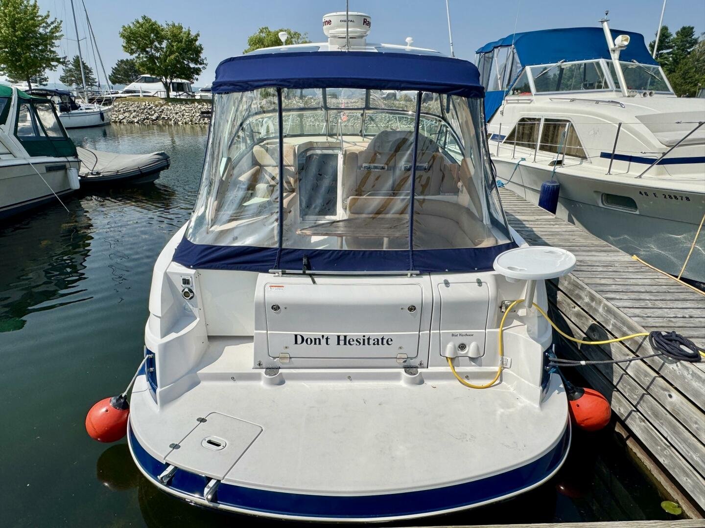 Step aboard this stylish and spacious 2011 Four Winns V355 – a luxury express cruiser that blends performance, comfort, and modern amenities. This vessel sports Twin Volvo Penta 5.7 (300hp) sterndrive engines, low hour (524hrs), and with the Electronic Vessel Control (EVC) you will have enhanced reliability and performance. Dock with ease thanks to both a Bow & Stern thruster controlled via joystick or lanyard remote. Packed with other features including an open cockpit layout, upgraded chartplotter with radar, hardtop, air conditioning, and a fully equipped galley make this the perfect boat for weekend adventures or extended cruising. Call today for a private viewing.