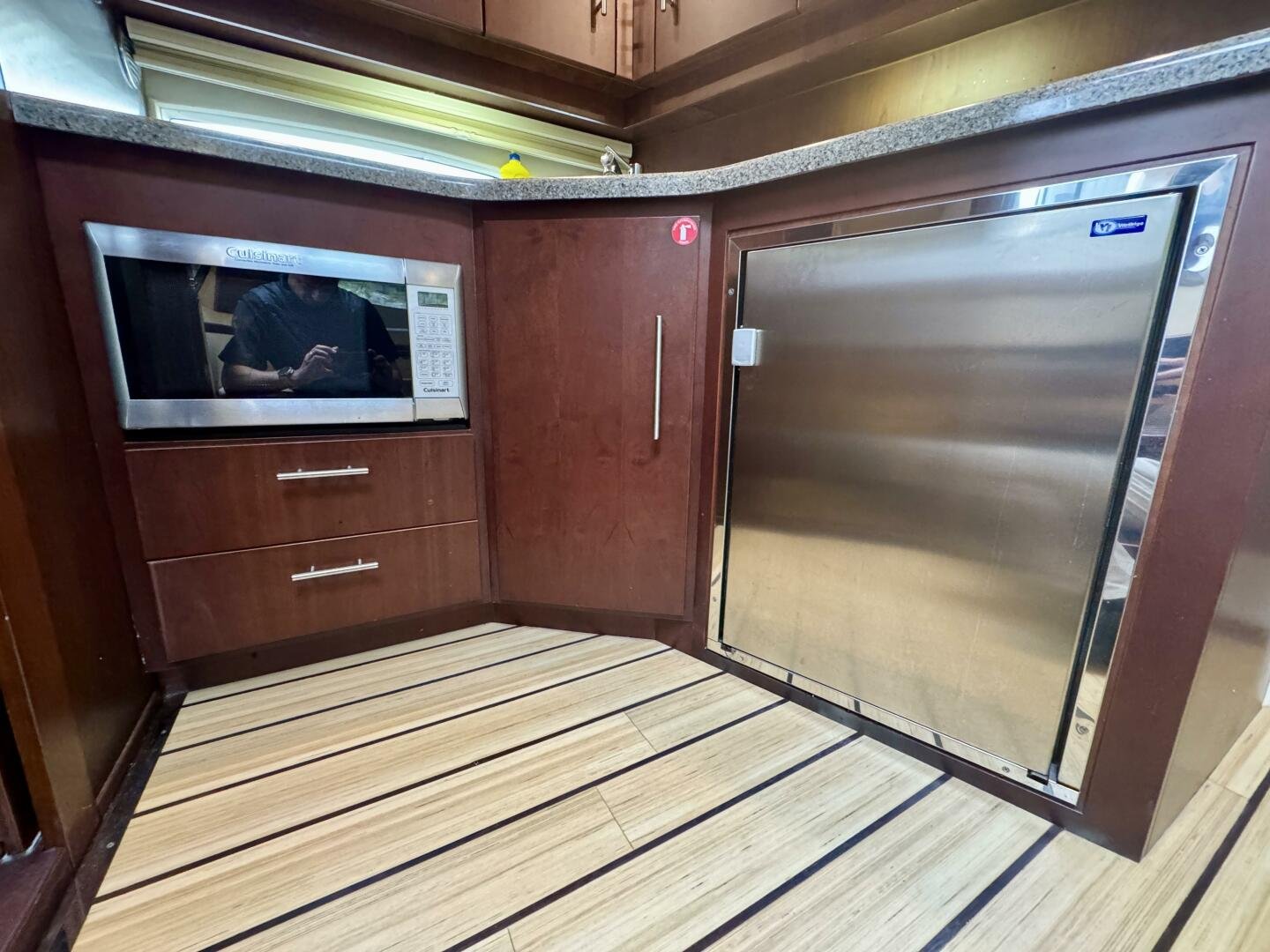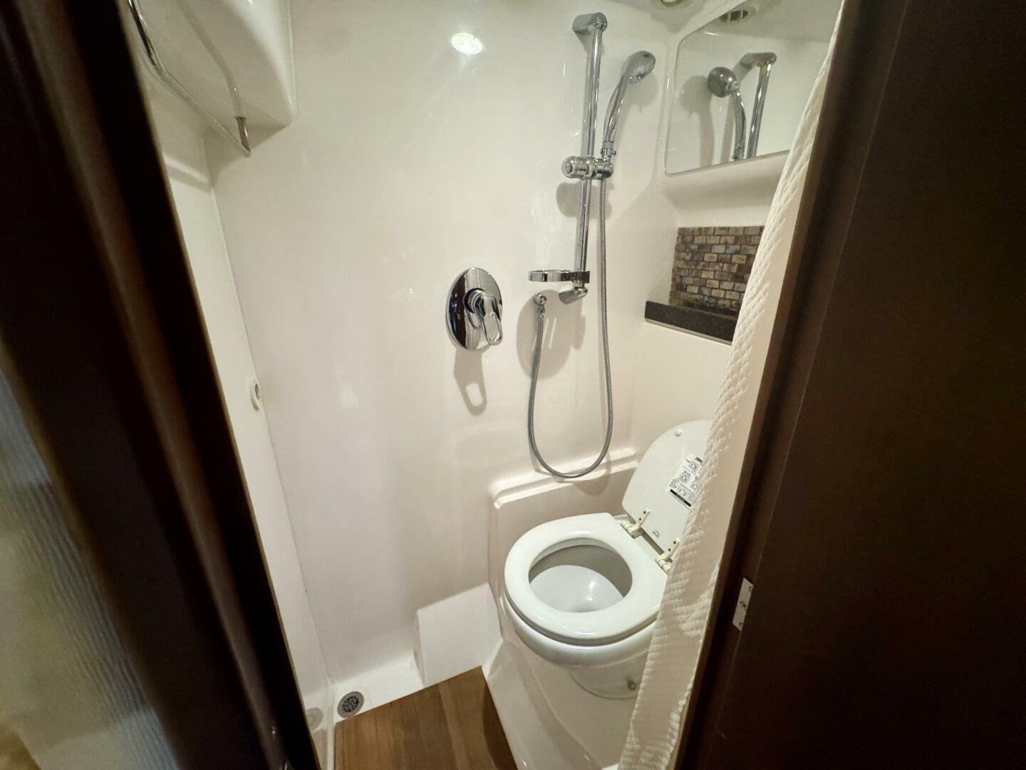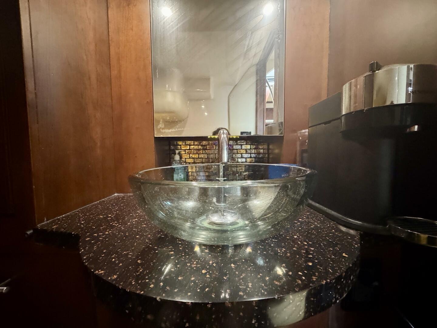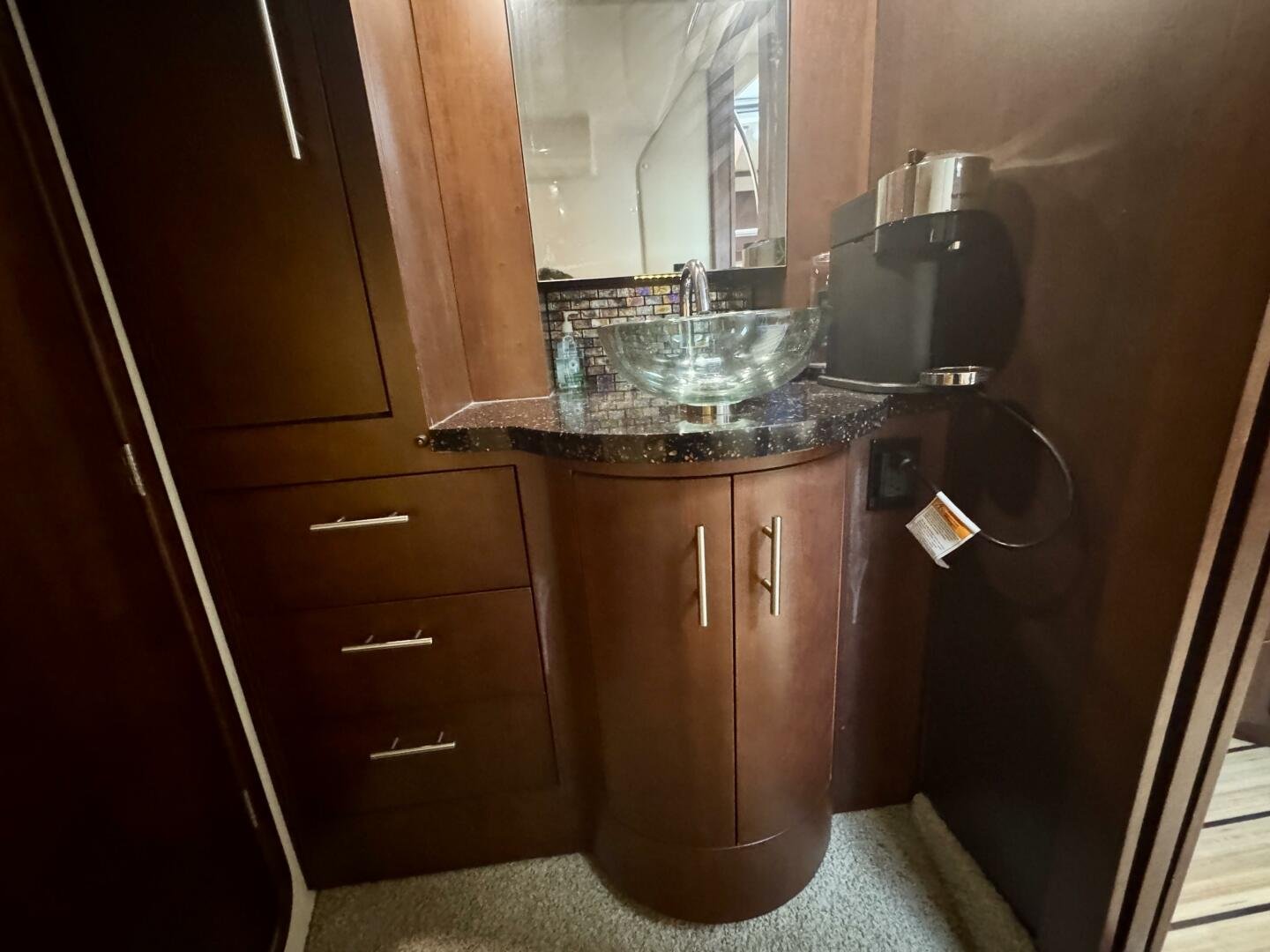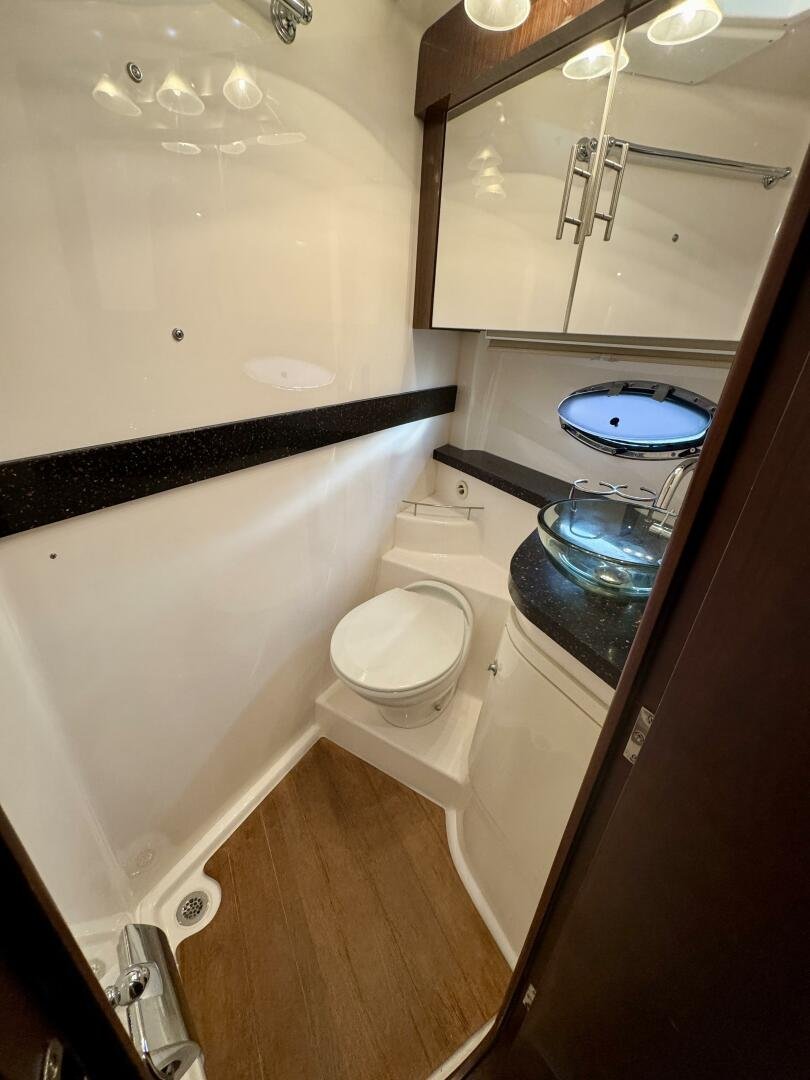A cutting-edge design when she was introduced in 2011, the Regal 42 Sport Coupe is a sleek Eurostyle express designed for cruising in comfort and style. The full-beam convertible hardtop electrically slides back from the windshield frame to reveal an enormous opening, and sliding glass door and windows convert open aft to give the boat an open feel, with the option to be enclosed with air conditioning. Below deck, the two-stateroom two-head interior of the 42 Sport Coupe includes a private master stateroom forward with an island queen berth. The mid-cabin stateroom features twin berths, an en-suite head, and a pocket door for added privacy. A U-shaped sofa and full-service galley occupy the salon, which is notable for its full standing headroom. The cockpit can be accessed from both sides of the extended swim platform, and the center section of the deck lifts for access to the engines. Unlike some manufacturers of this era who installed pod drives in hulls originally designed for inboard power, Regal engineers designed the hull of the 42 Sport Coupe specifically for Volvo IPS pod drives.