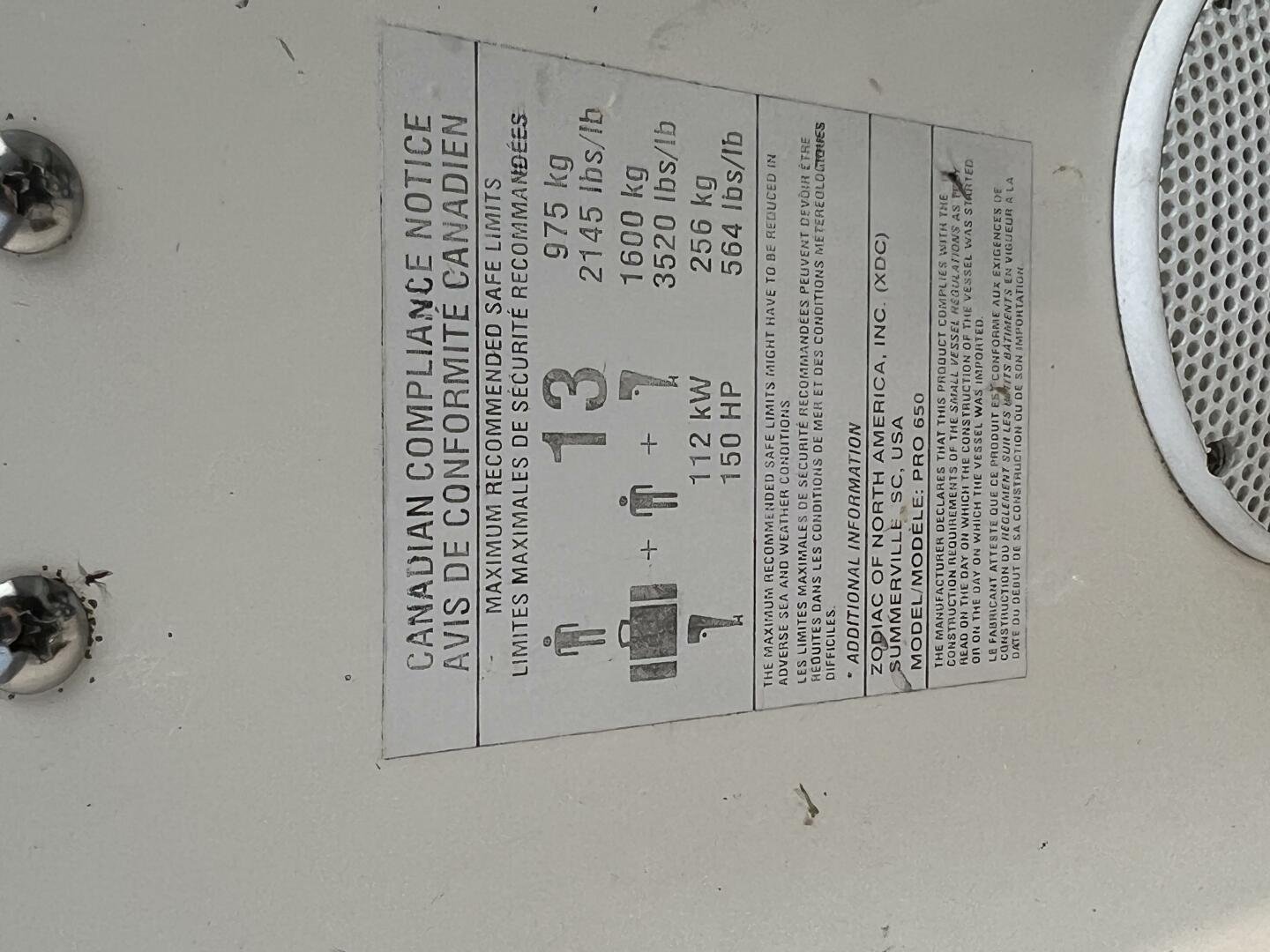 The 2013 Zodiac Rec Pro 650 is a versatile 6.5-meter rigid inflatable boat (RIB) designed for outdoor enthusiasts. It offers a stable and durable platform powered by an outboard engine for various water activities. With comfortable seating, ample storage, and optional accessories, it provides a reliable and enjoyable boating experience for leisure or water sports.