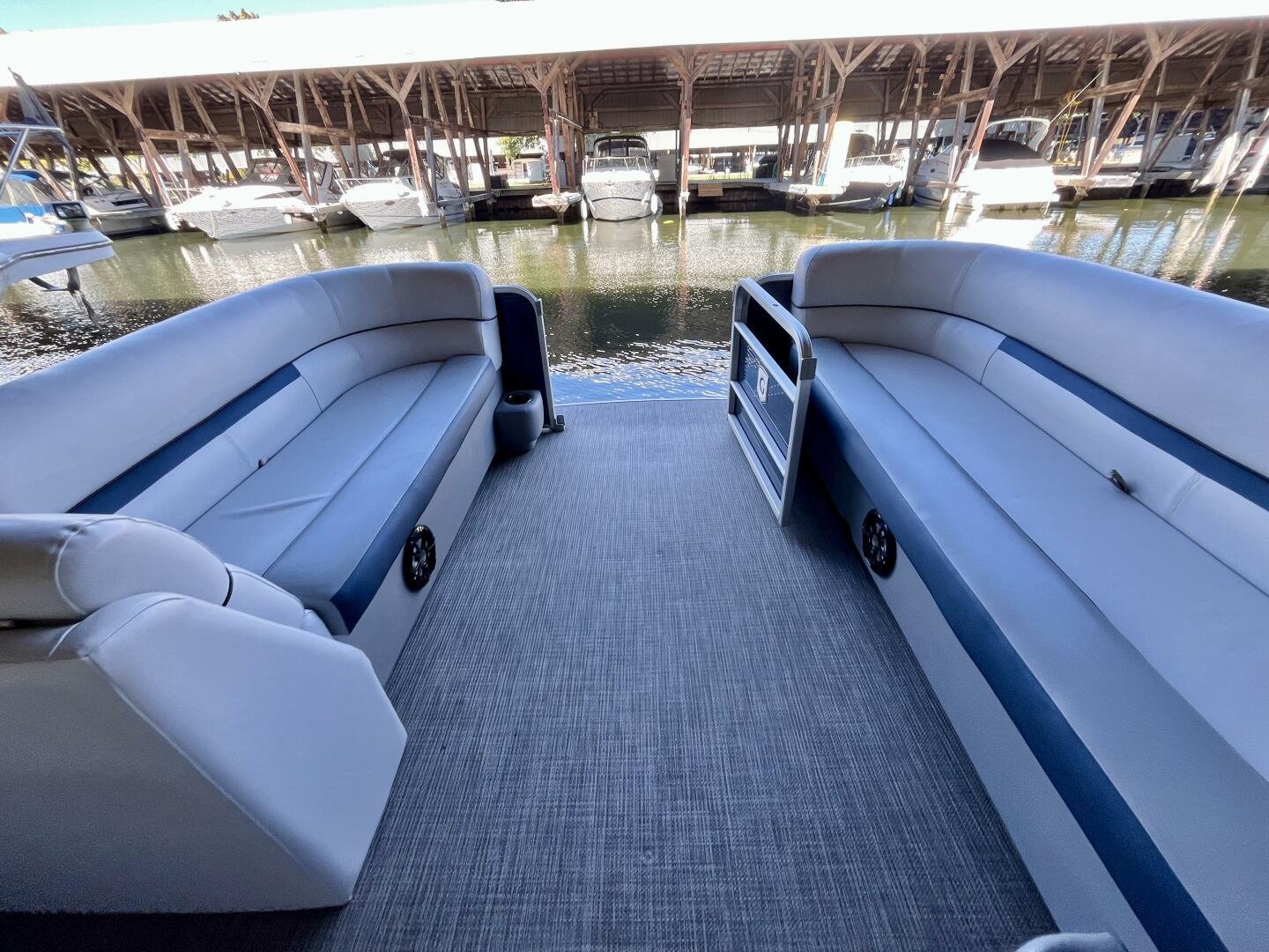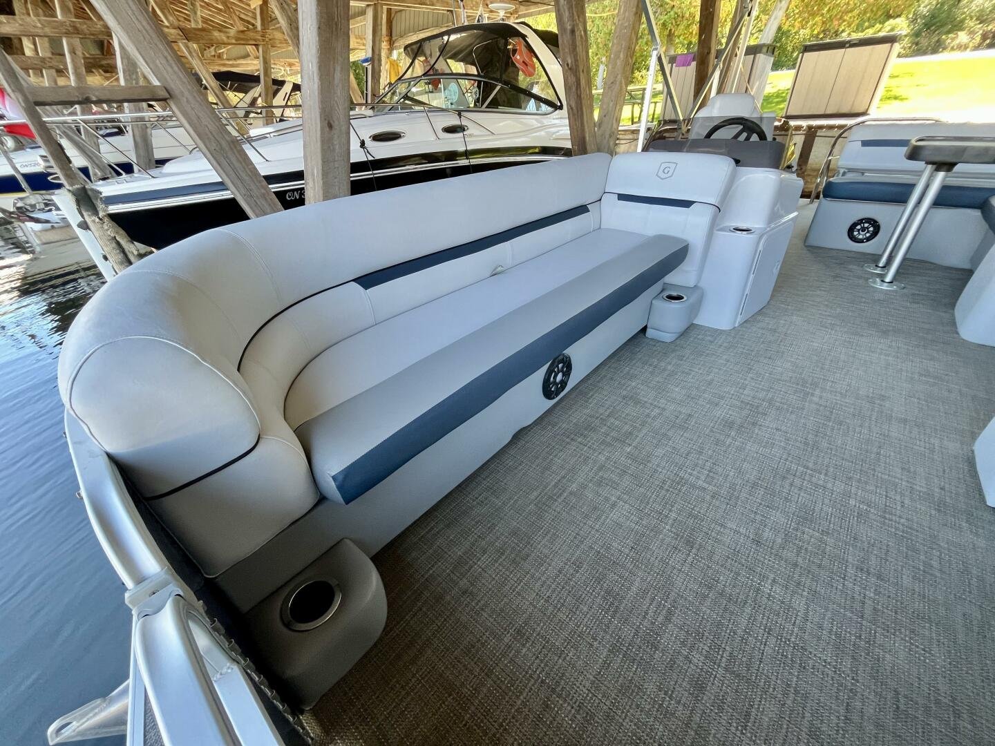 - Spacious 22' 10" Deck – Comfortable seating for up to 12 passengers, with plush upholstery and a smart layout for entertaining.