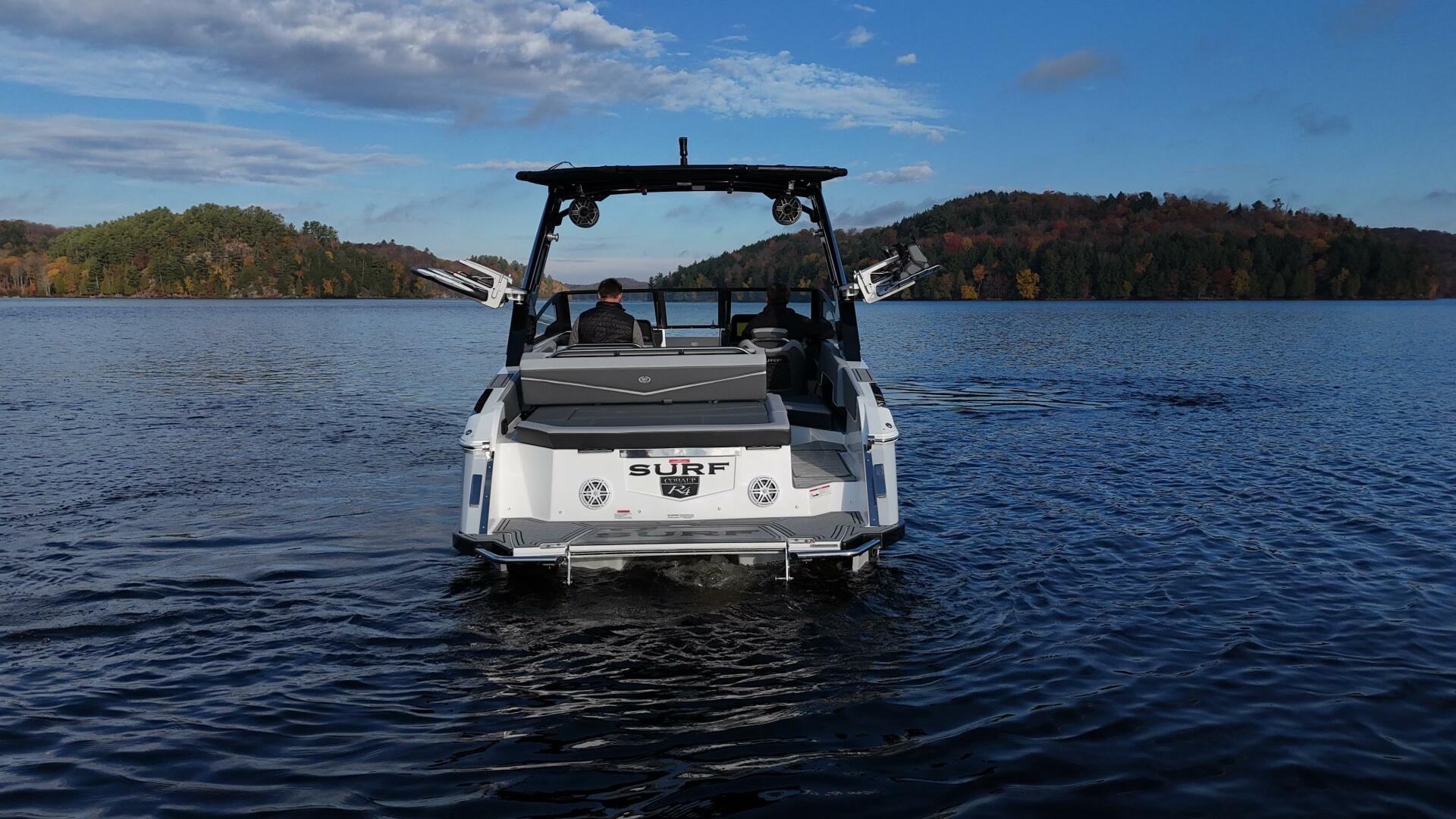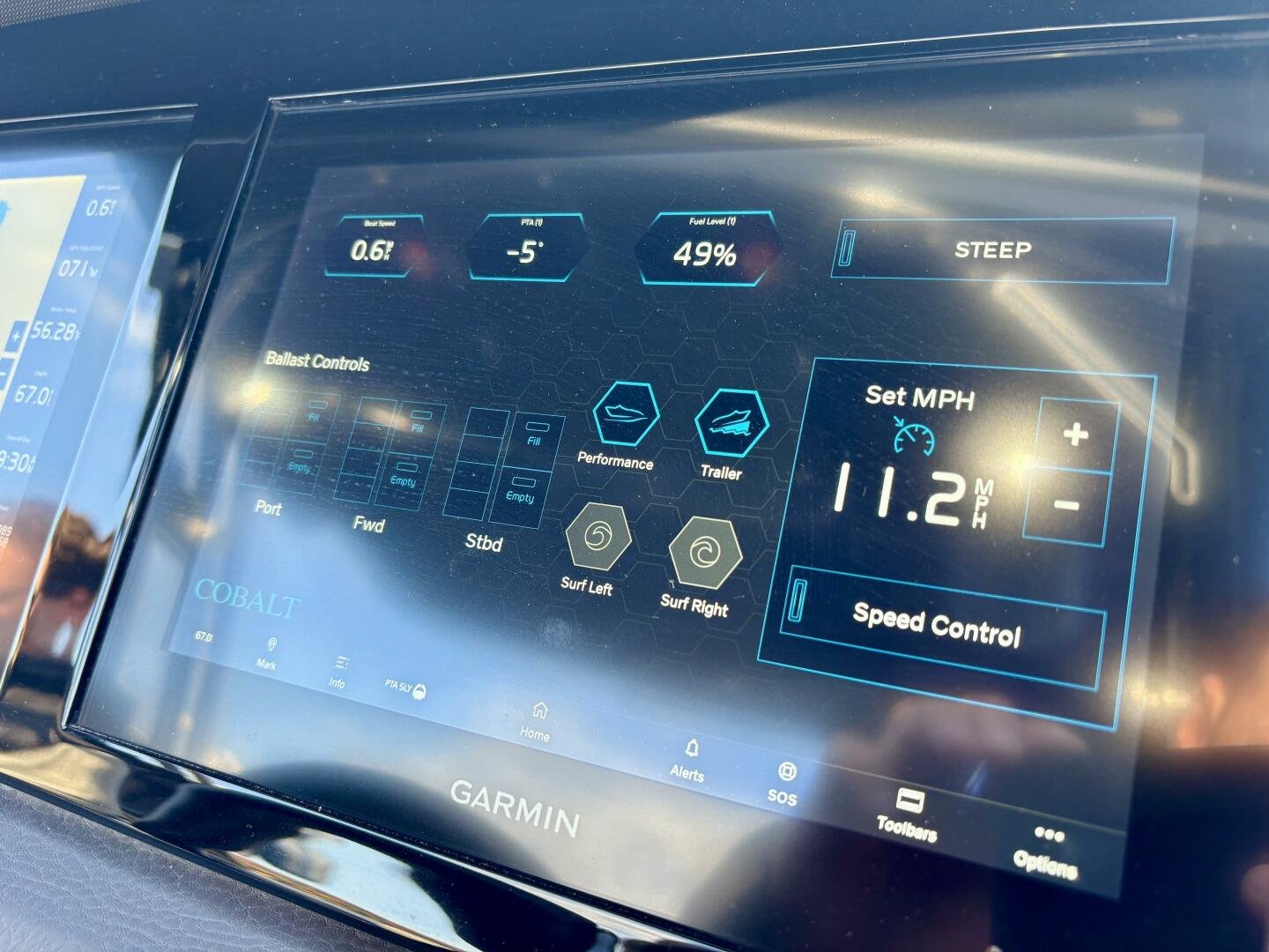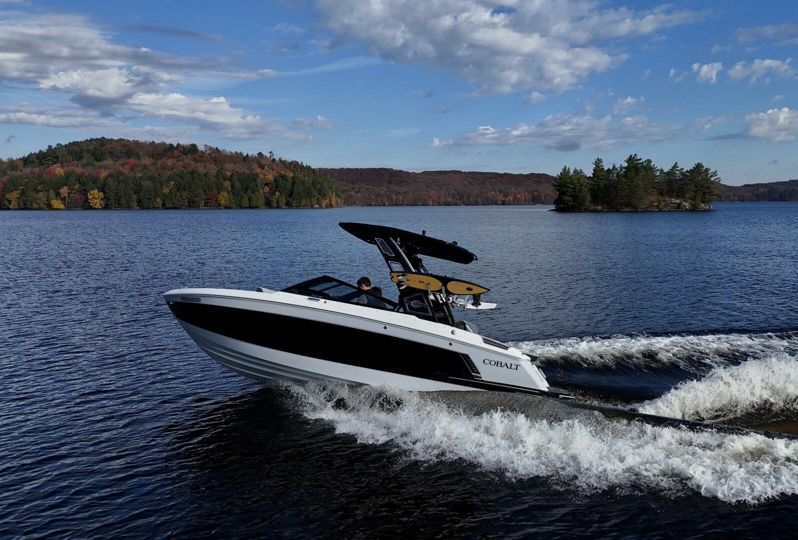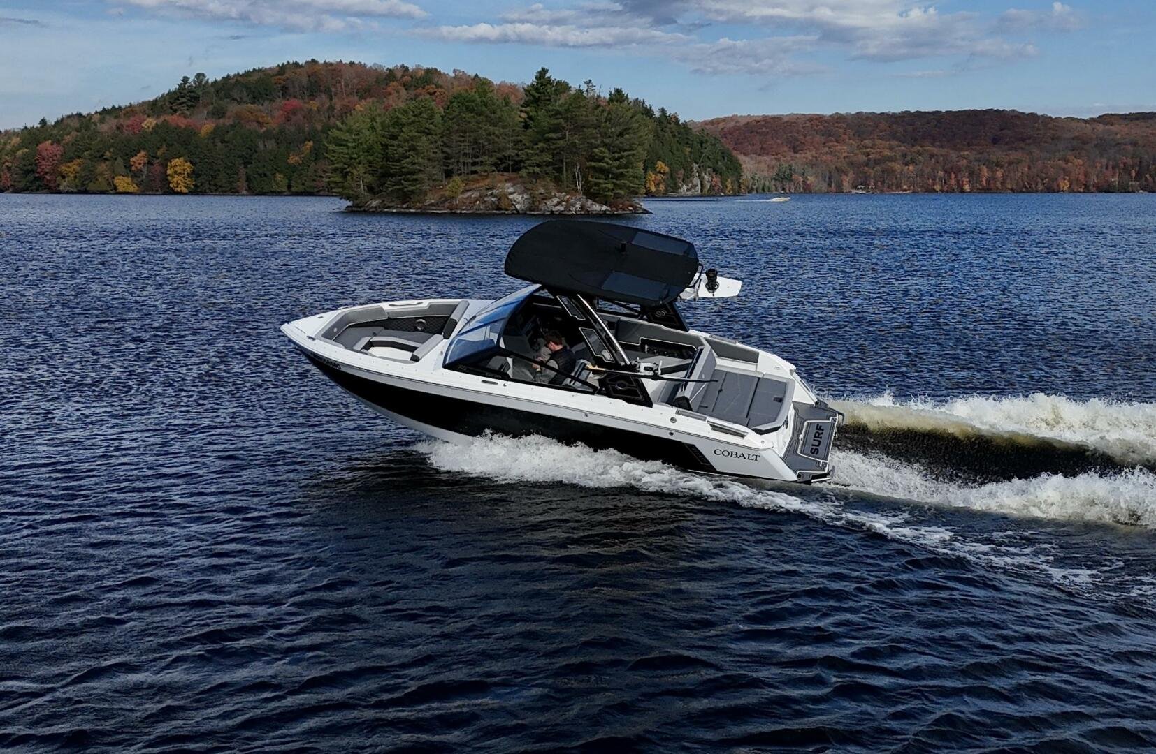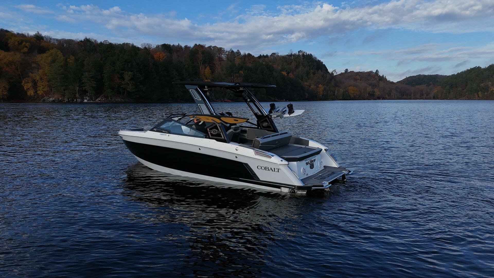 Premium features include: Upgraded 350hp Volvo Penta V8, upgraded JL audio, power tower with board racks and RGB lighting, auto fill/empty ballasts, (Malibu) surf gates, dual Garmin glass cockpit, large swim step, cruise control, and much more. The Cobalt Surf System delivers the cleanest waves of any surf boat. The system includes 6 hard ballast tanks, a specifically-designed surf hull, surf drive Volvo engine package and the best-in-class (Malibu) SurfGate™ technology that shapes the perfect wave. Spacious seating, high-end finishes, and Cobalt’s legendary ride quality make this the ultimate 24’ surf boat.