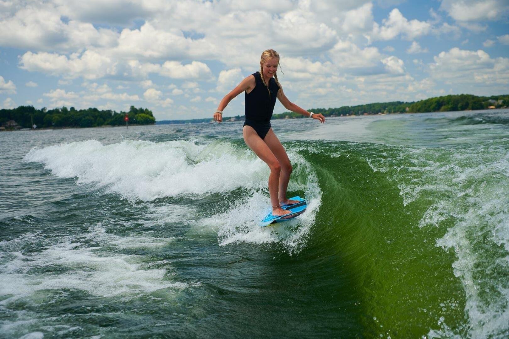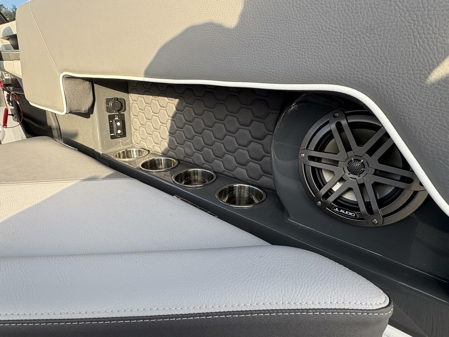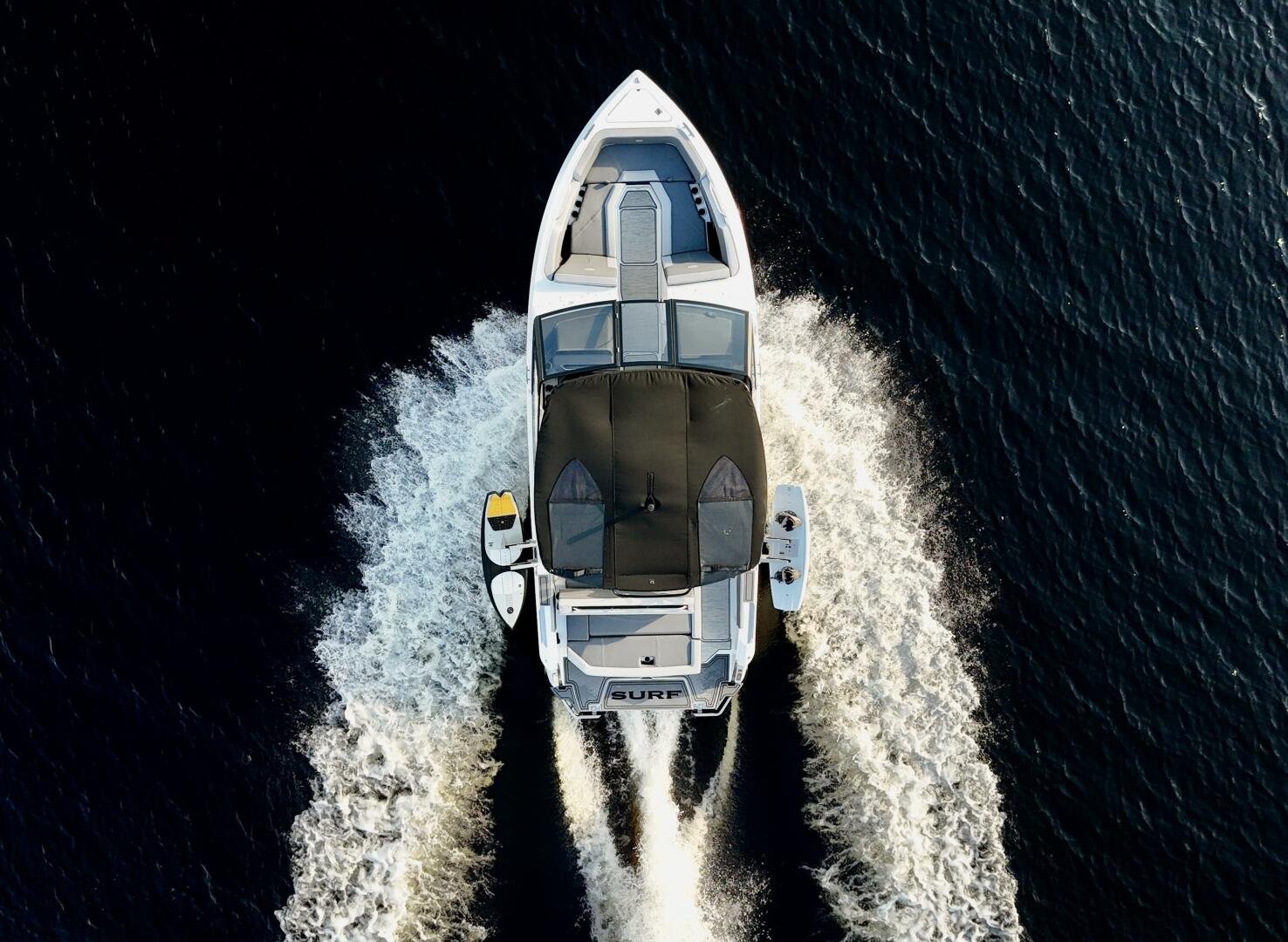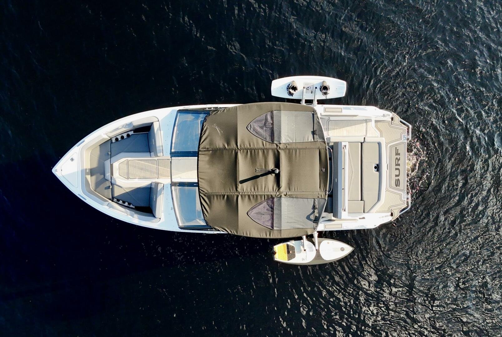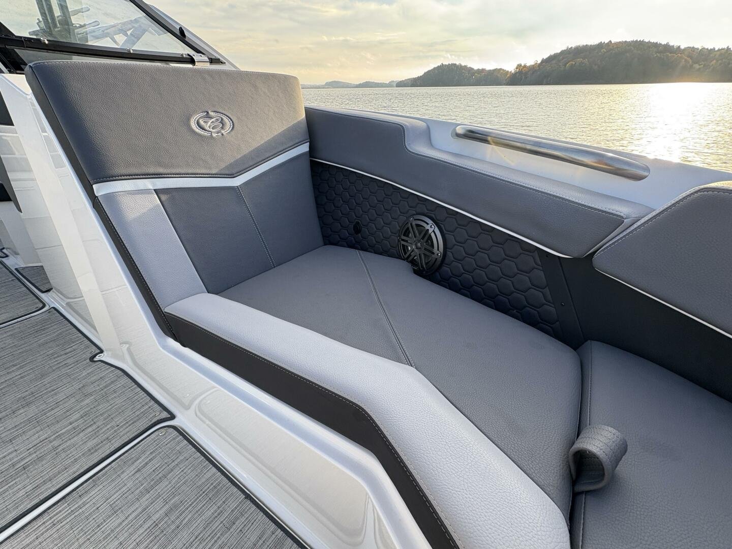 Premium features include: Upgraded 350hp Volvo Penta V8, upgraded JL audio, power tower with board racks and RGB lighting, auto fill/empty ballasts, (Malibu) surf gates, dual Garmin glass cockpit, large swim step, cruise control, and much more. The Cobalt Surf System delivers the cleanest waves of any surf boat. The system includes 6 hard ballast tanks, a specifically-designed surf hull, surf drive Volvo engine package and the best-in-class (Malibu) SurfGate™ technology that shapes the perfect wave. Spacious seating, high-end finishes, and Cobalt’s legendary ride quality make this the ultimate 24’ surf boat.
