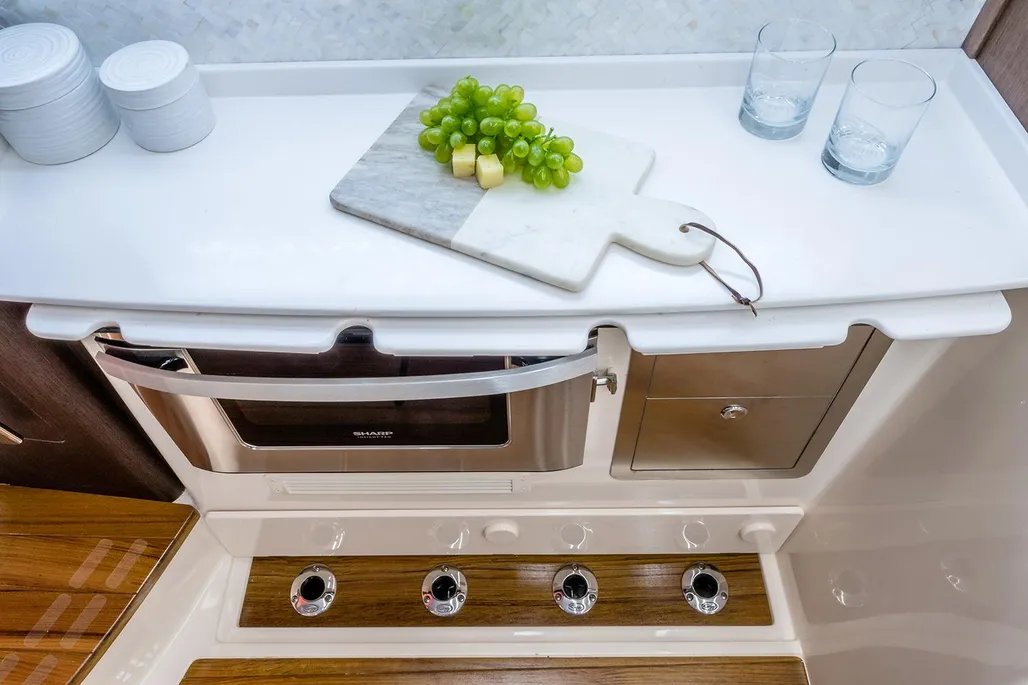 Galley - portside galley w/Corian® countertop, stainless steel drawer microwave & six-bottle wine cooler