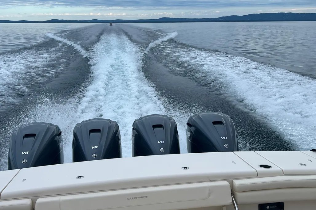 The largest unsinkable boat of its kind, Grady-White sets the standard in luxury fishing boats with this flagship 45-foot center console! The Canyon 456 is an incredibly spacious, technically sophisticated boat built on Grady’s trademark SeaV²® hull, ranked highest in performance and ride in every J.D. Power and Associates Marine Study ever done. This makes it the driest, softest riding center console on the market. One of the world’s largest center console boats, the 456 is crafted with Grady’s exceptional attention to detail, more richly appointed than other big outboard sportfishing boats and the only one to include the legendary company that stands behind it.