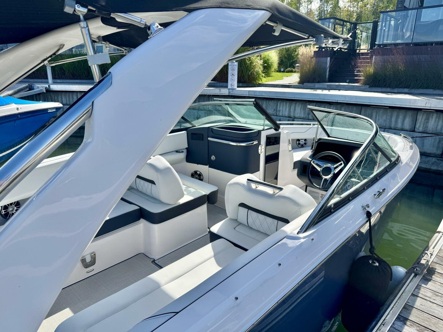Step aboard and you’ll immediately notice Regal’s award-winning FasTrac hull design, giving you quicker planing, tighter turns, and up to 26% better fuel efficiency than the competition. The expansive cockpit and deep bow seating mean everyone rides in first-class comfort, while the PowerTower S2 — Regal’s fully automated sport tower — raises and lowers at the touch of a button, making watersports effortless and storage a breeze. Add in the Tow Mode feature on the throttle, which automatically delivers a smooth, consistent pull for wakeboarding, skiing, or tubing, and the premium sound system, and this LS6 sets the stage for unforgettable days on the water.