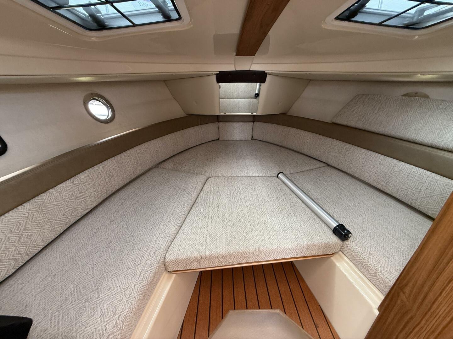 The forward cabin on the R-23 has plenty of room for sitting around the teak table, separate sleeping for two or sleeping two together with the filler-cushion. The mid berth is great for kids or storage, and the dinette converts to a sleeper as the third berth. The well-appointed galley on the R-23 is standard with refrigerator/freezer, cooktop, and microwave.