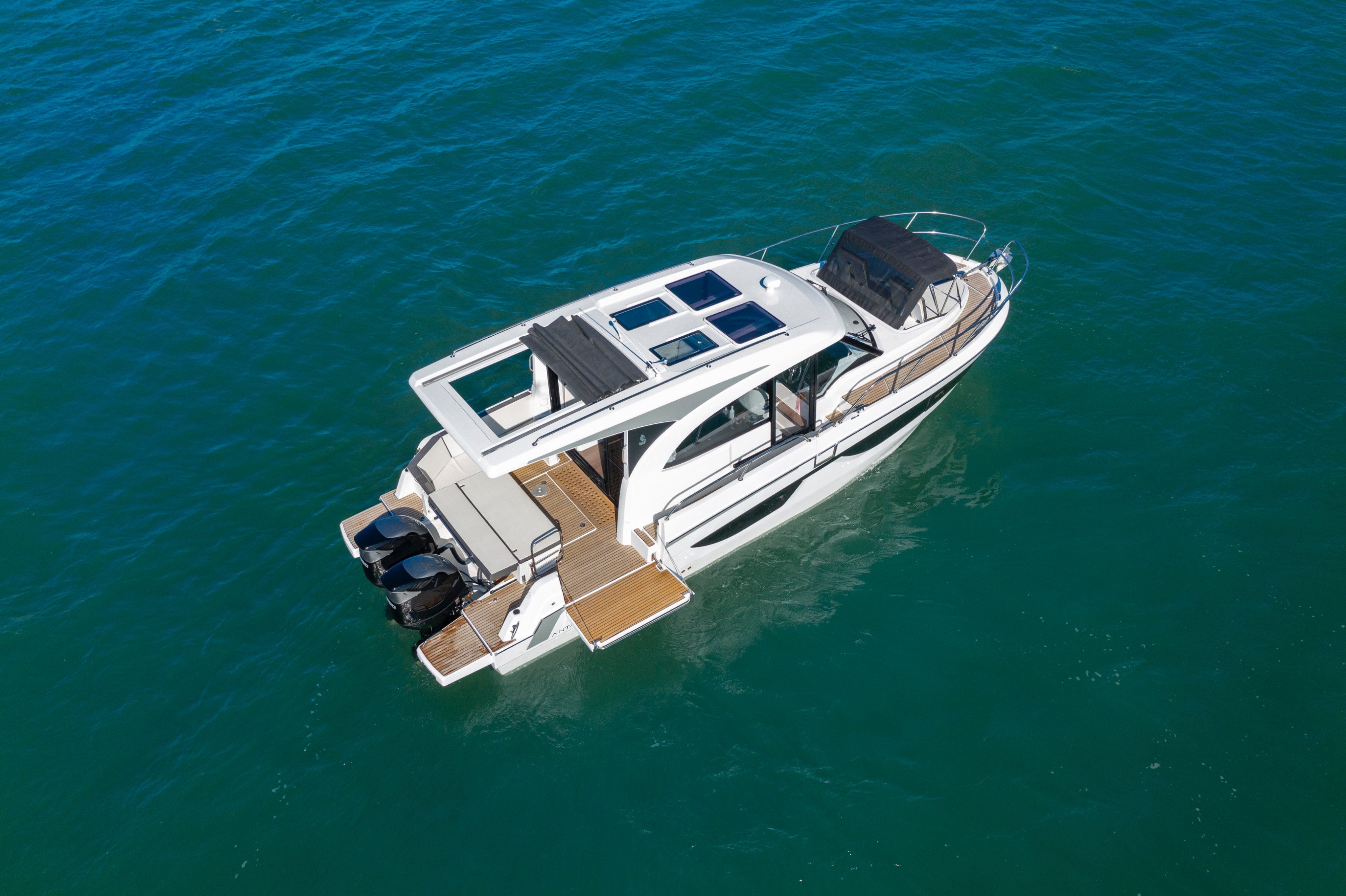 Powered by twin outboard engines (up to 2×300 hp), the Antares 11 Coupe balances lively performance with effortless handling, while offering an efficient and flexible propulsion setup that simplifies maintenance and enhances versatility on the water.